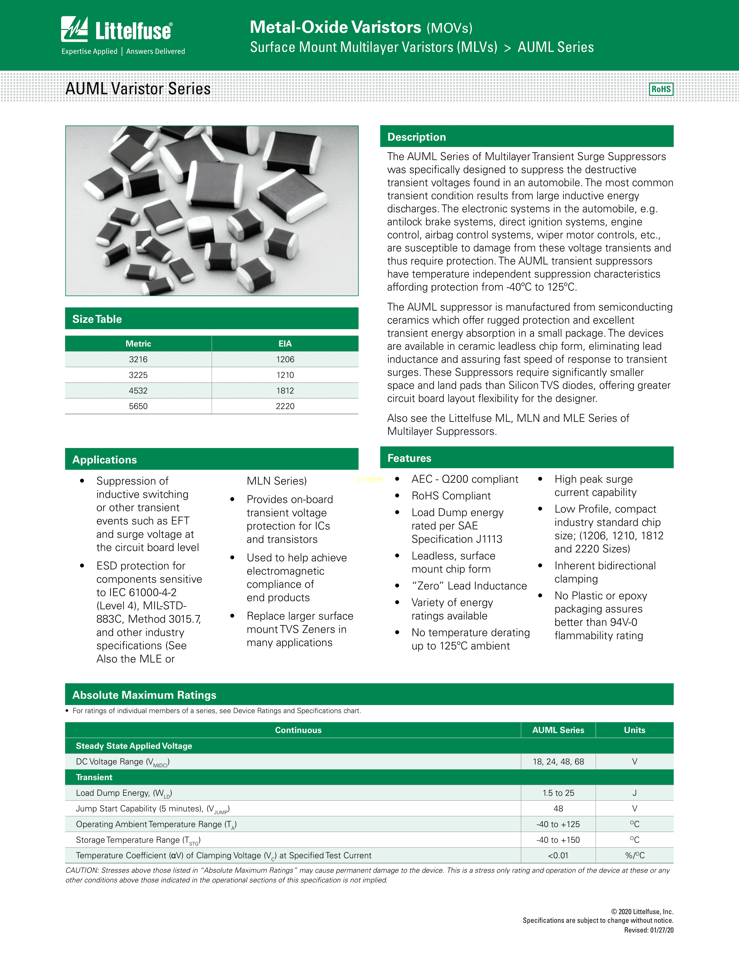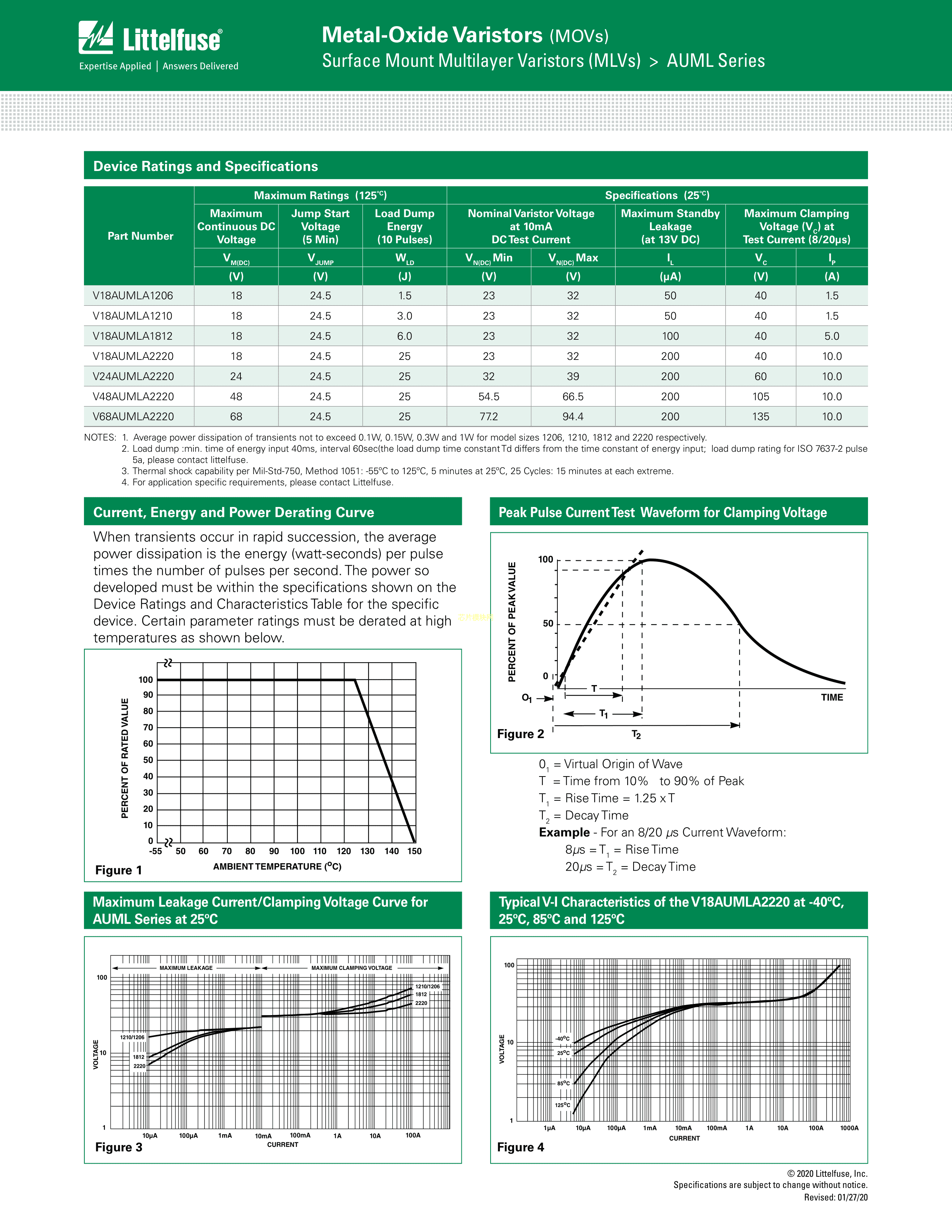 V24AUMLA2220H数据手册2220封装Littelfuse(美国力特)PDF规格书,中英文下