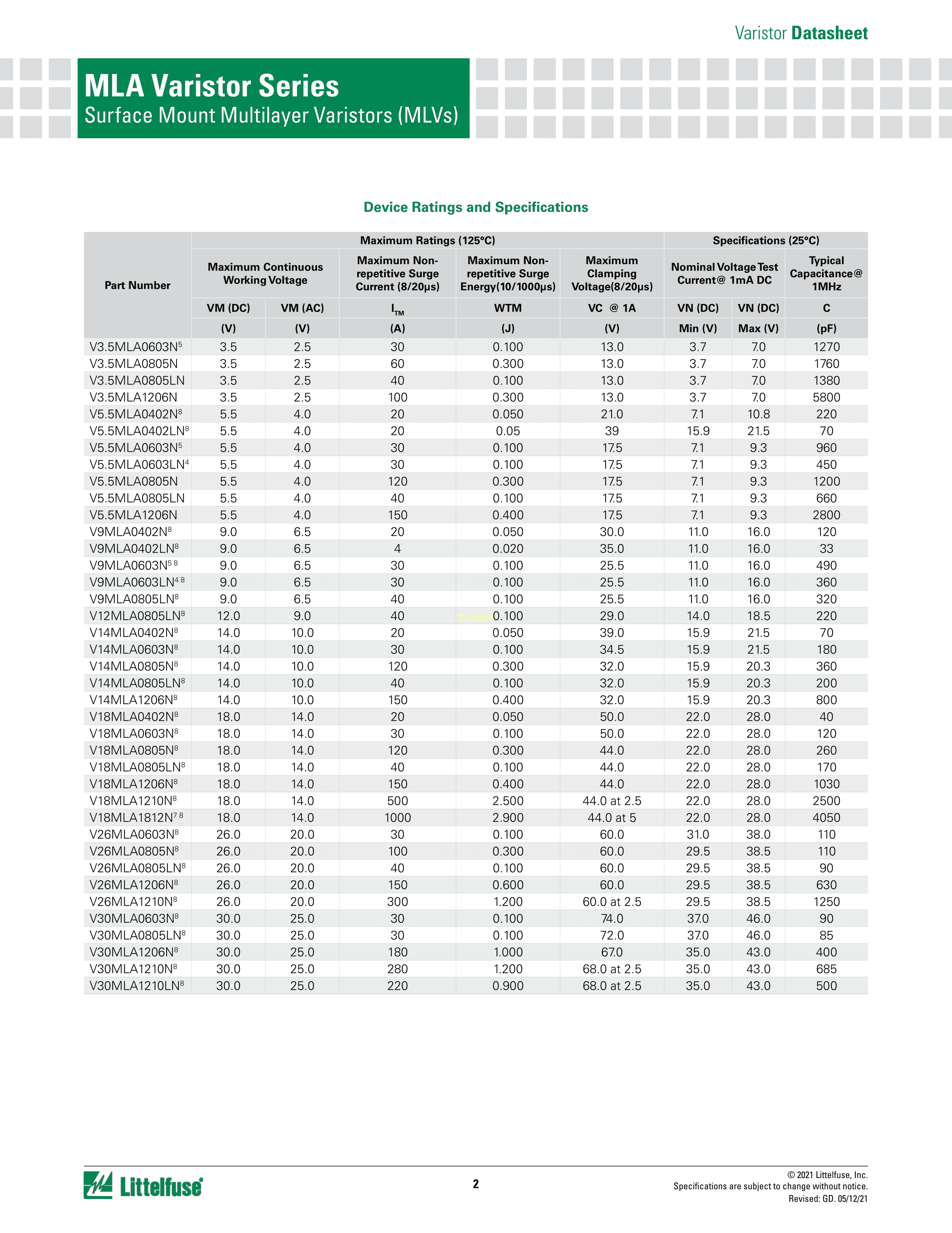 V3.5MLA0603NT数据手册0603封装Littelfuse(美国力特)PDF规格书,中英文下