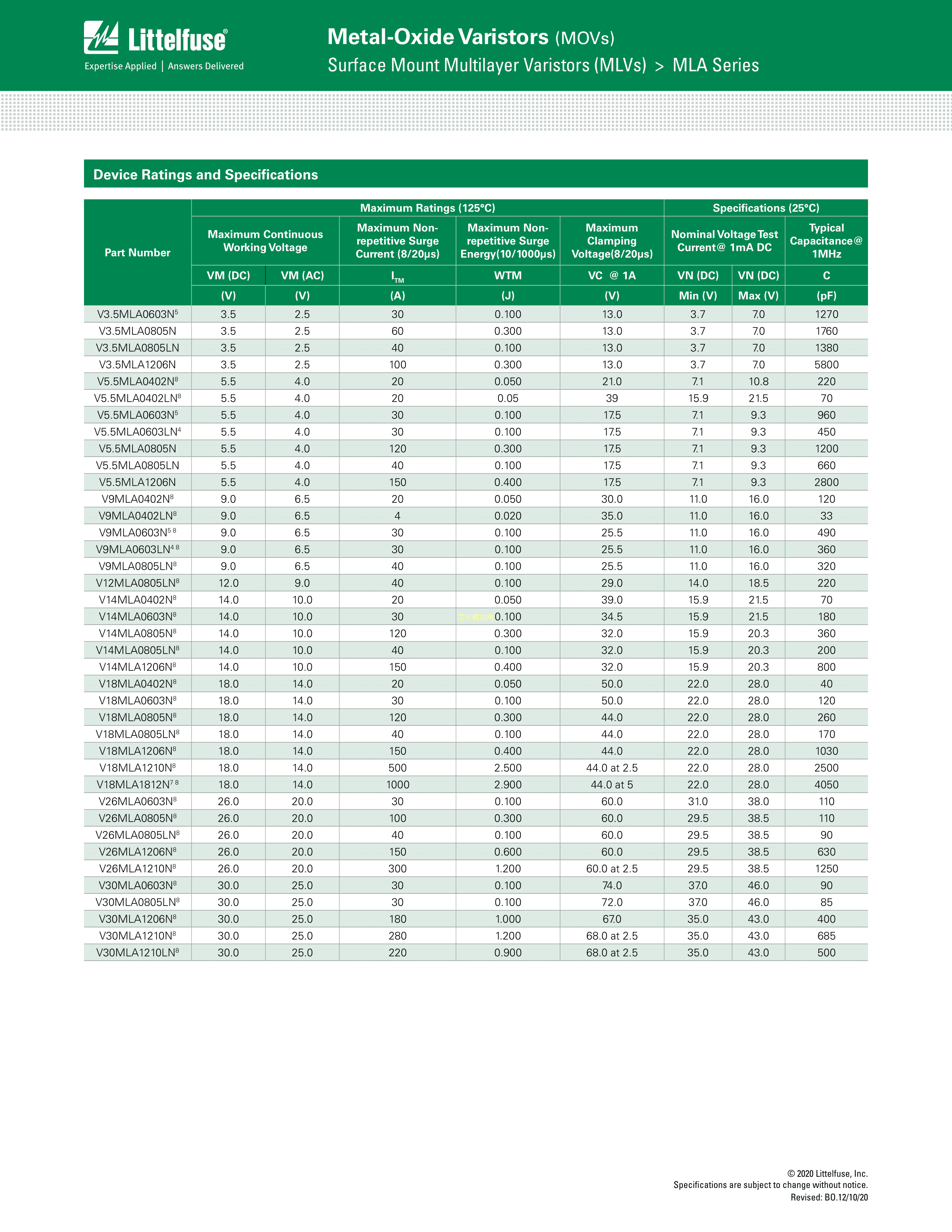 V3.5MLA0805H数据手册0805封装Littelfuse(美国力特)PDF规格书,中英文下载