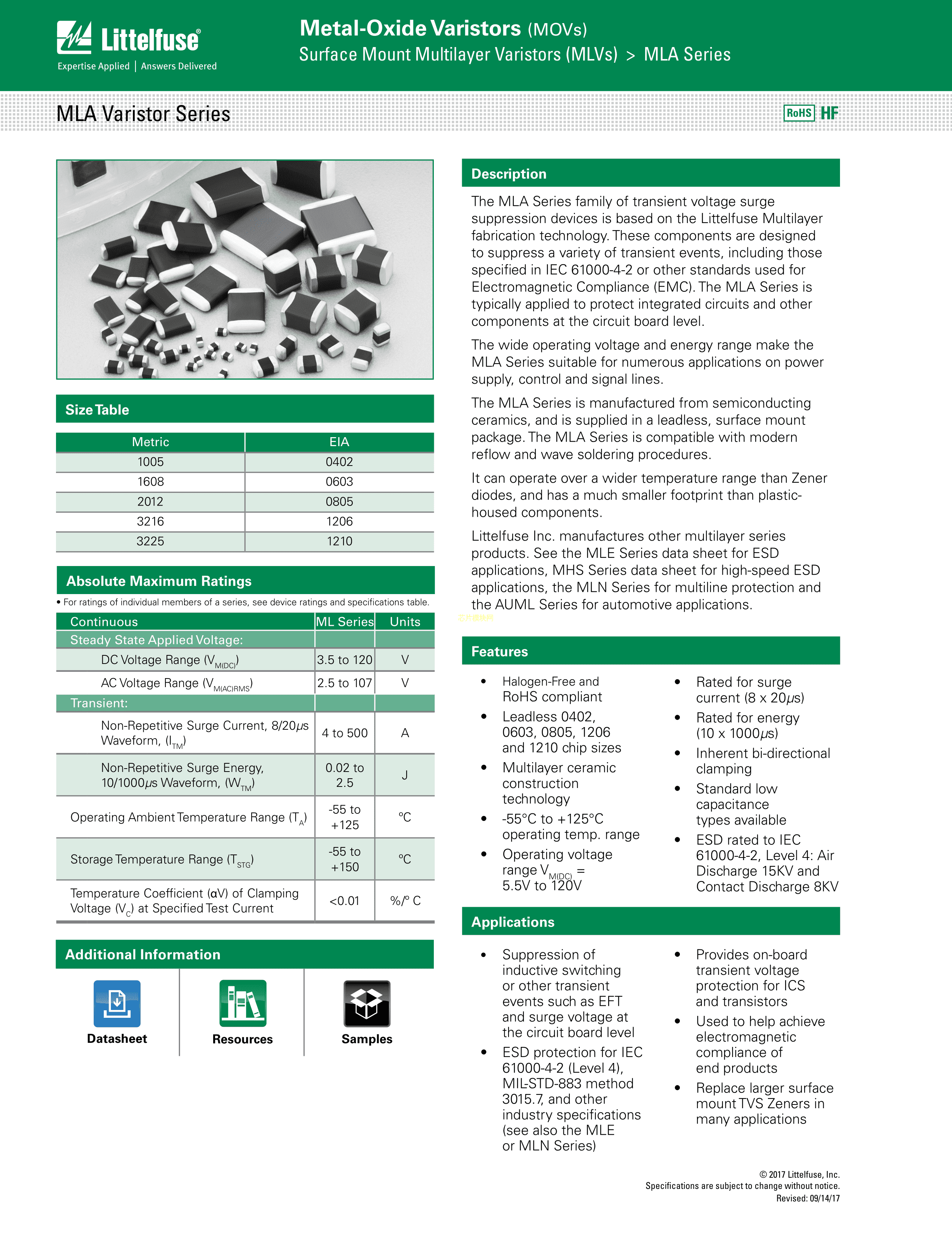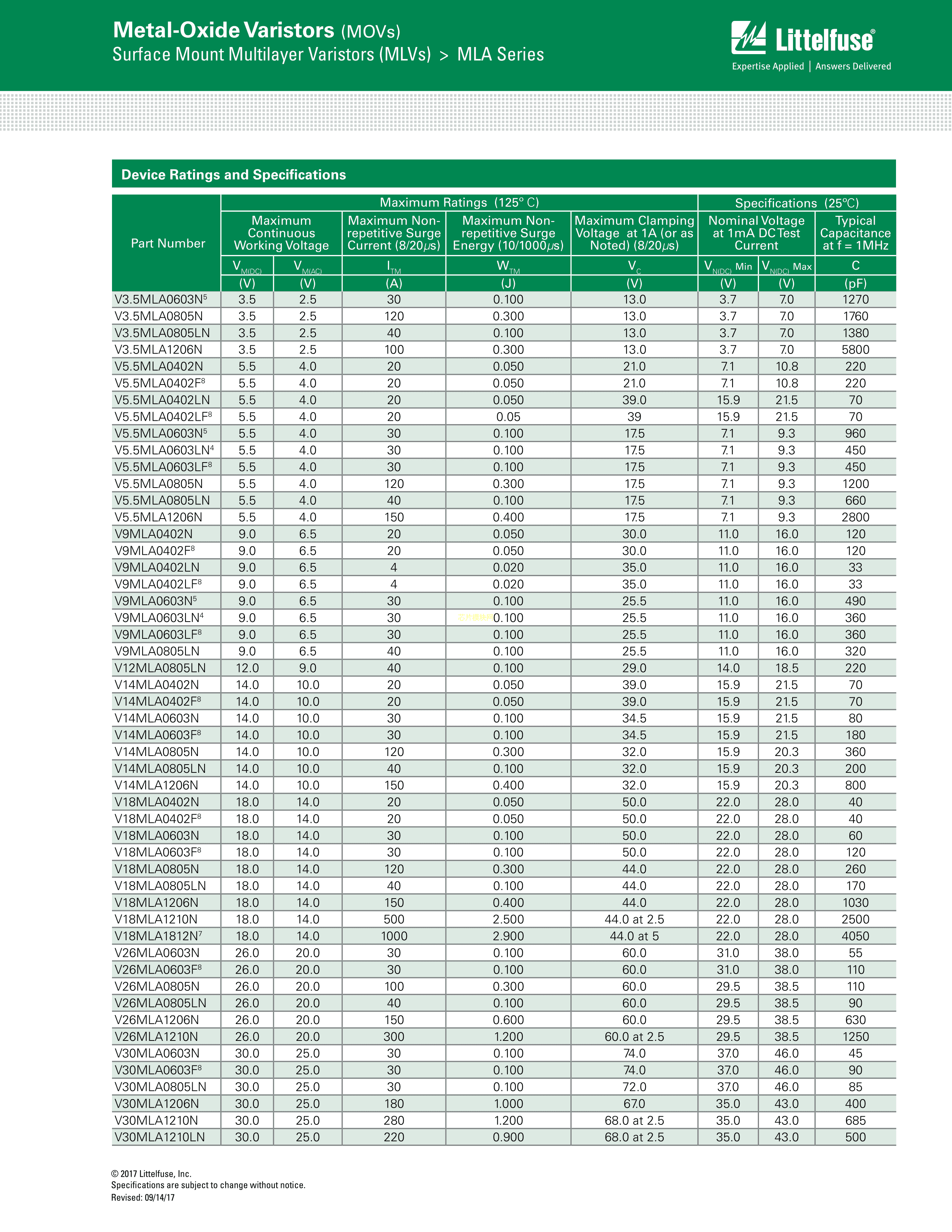 V30MLA0603H数据手册0603封装Littelfuse(美国力特)PDF规格书,中英文下载