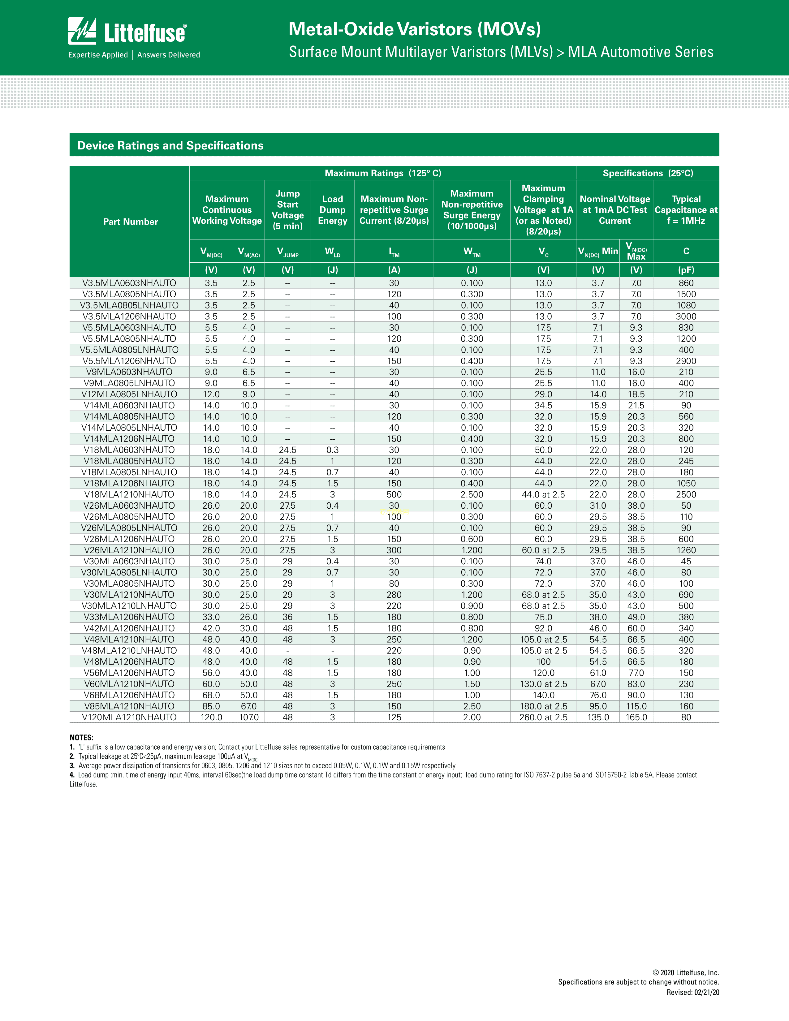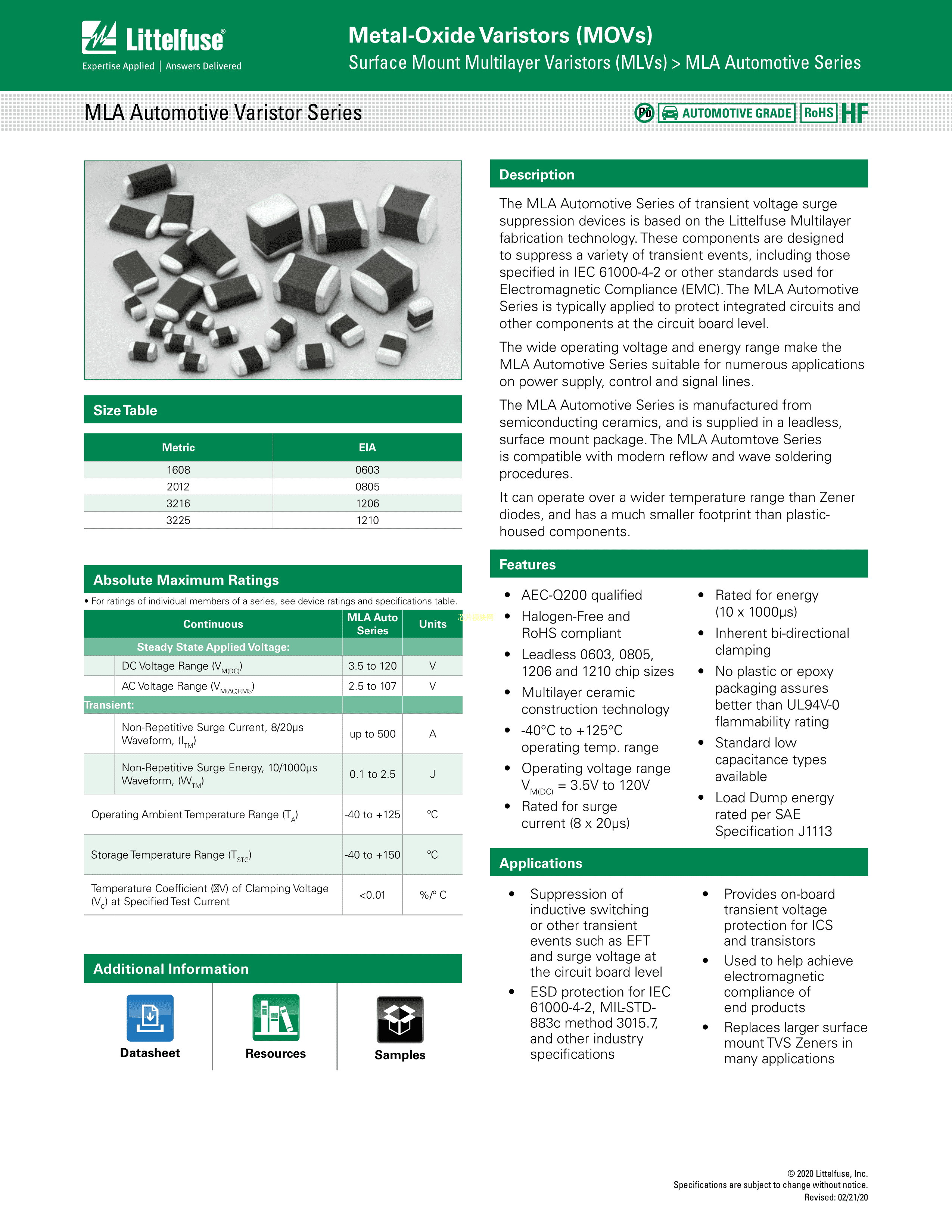 V5.5MLA0603NHAUTO数据手册0603封装Littelfuse(美国力特)PDF规格书,