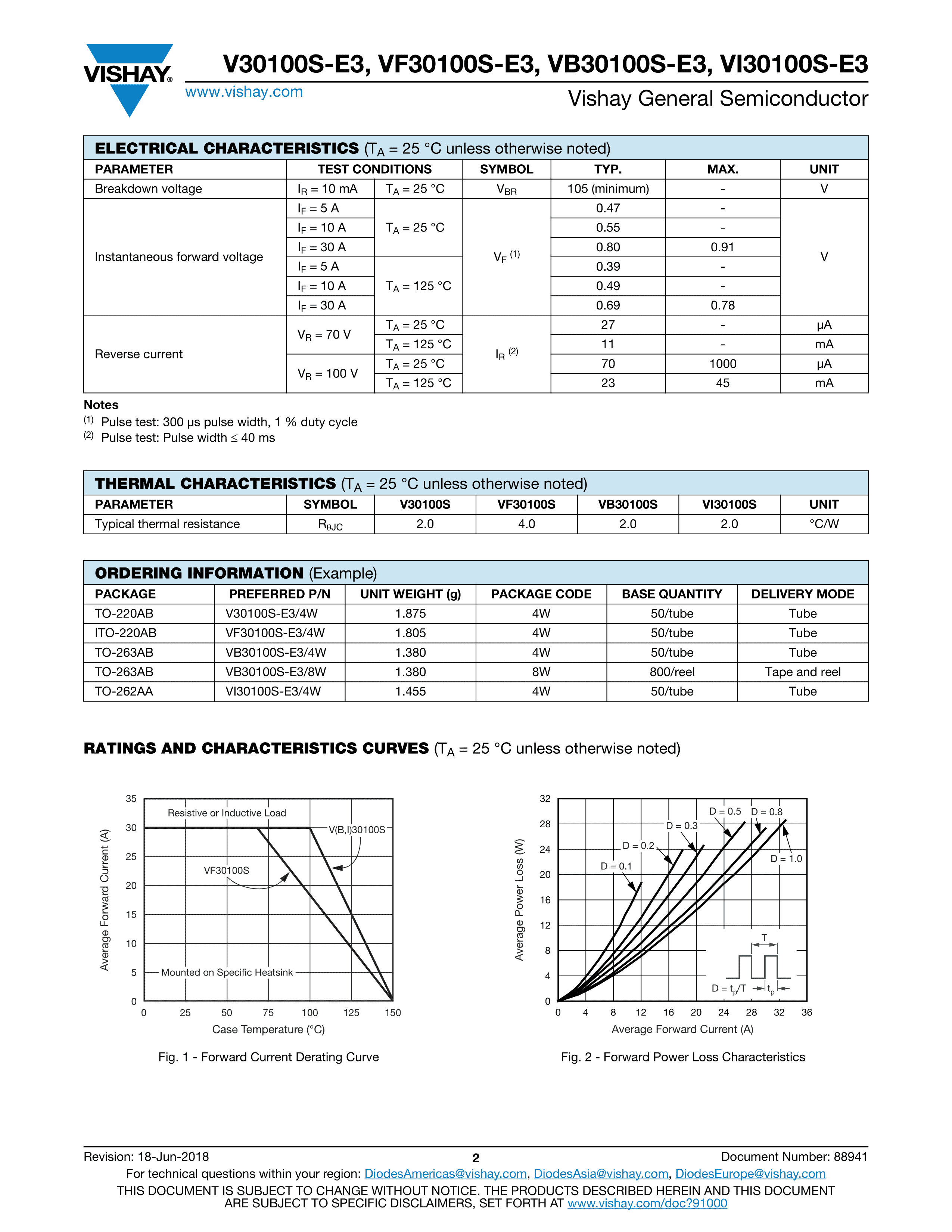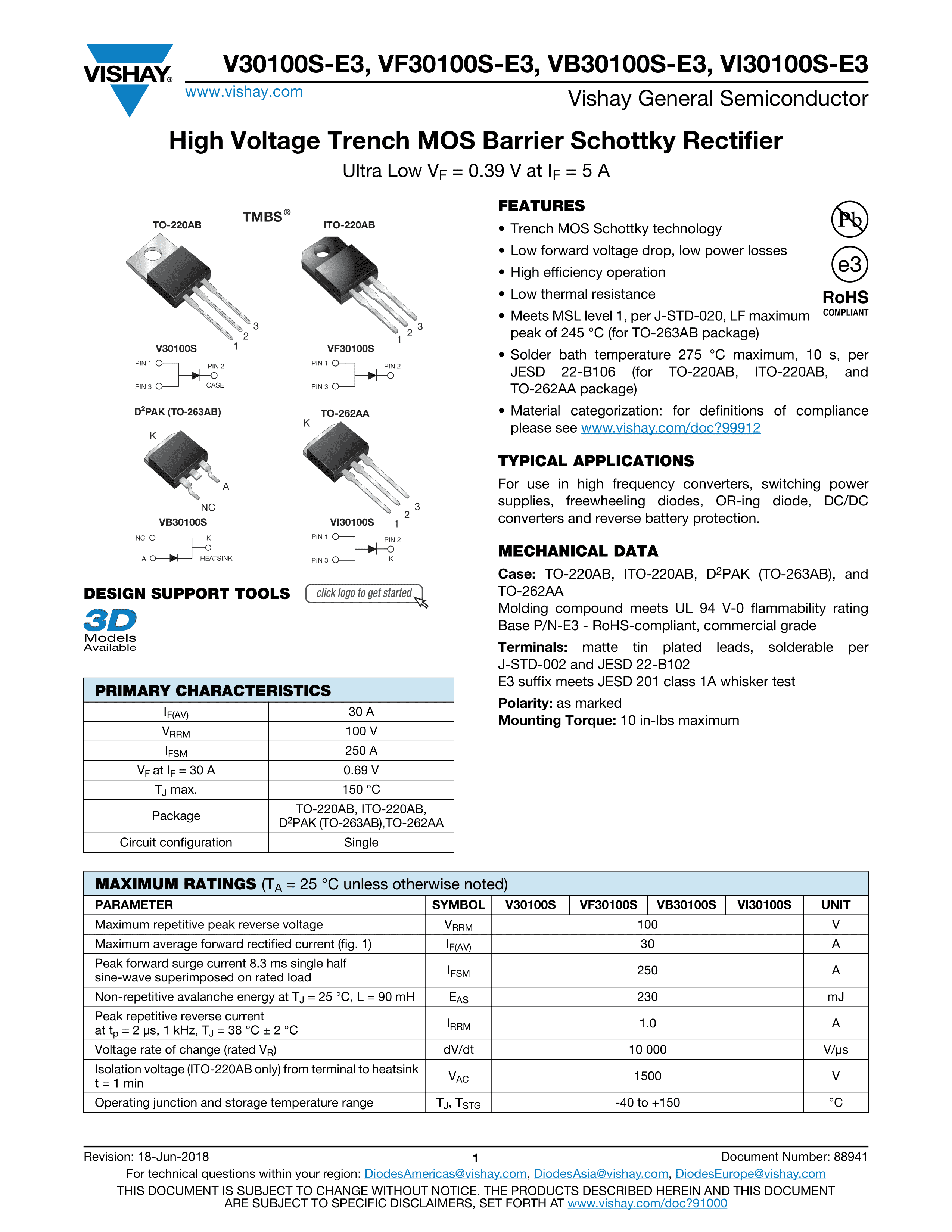 VB30100S-E3-8W数据手册TSO-263AB封装VISHAY(威世)PDF规格书,中英文下