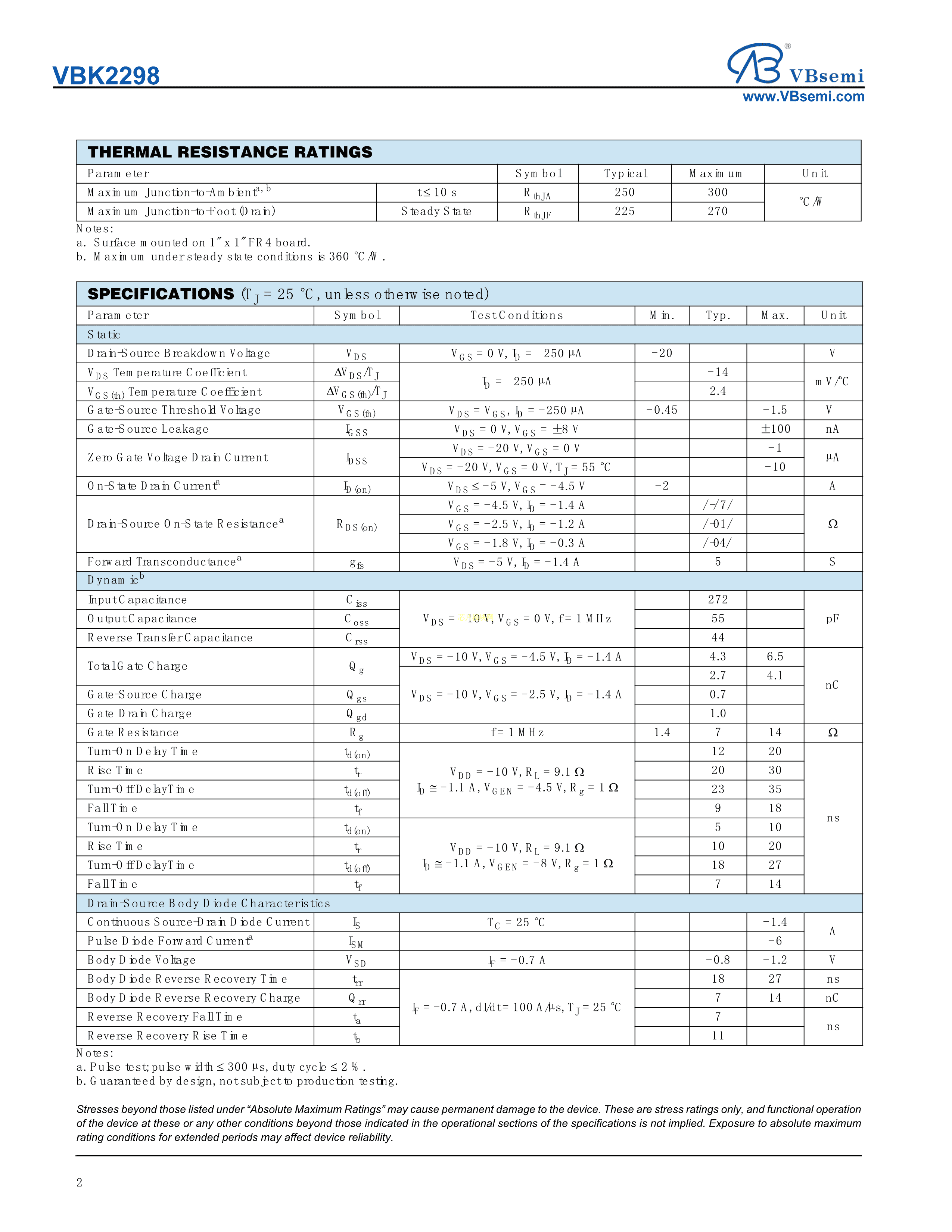 VBK2298数据手册SC-70-3封装VBsemi(台湾微碧)PDF规格书,中英文下载