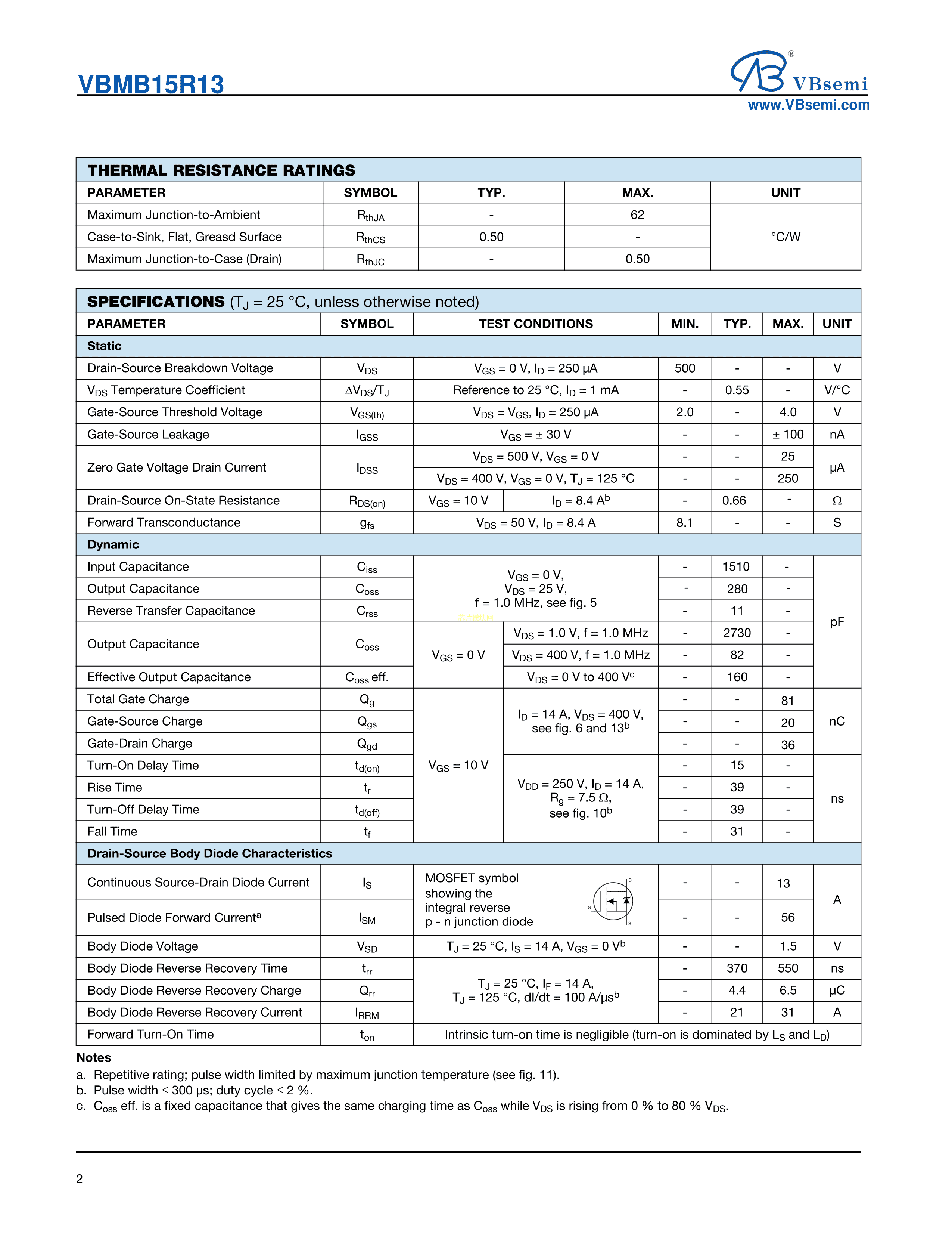 VBMB15R13数据手册TO-220F封装VBsemi(台湾微碧)PDF规格书,中英文下载