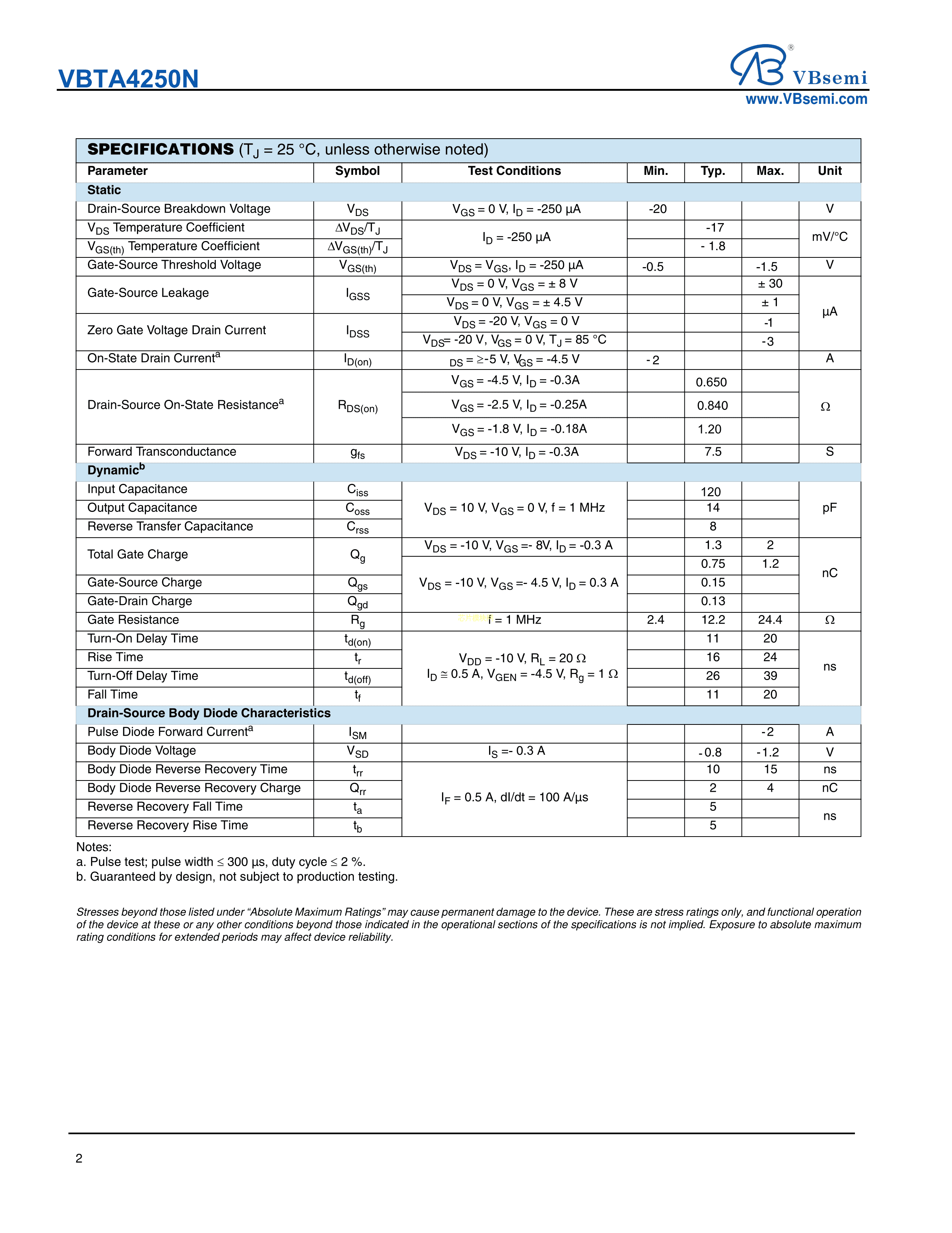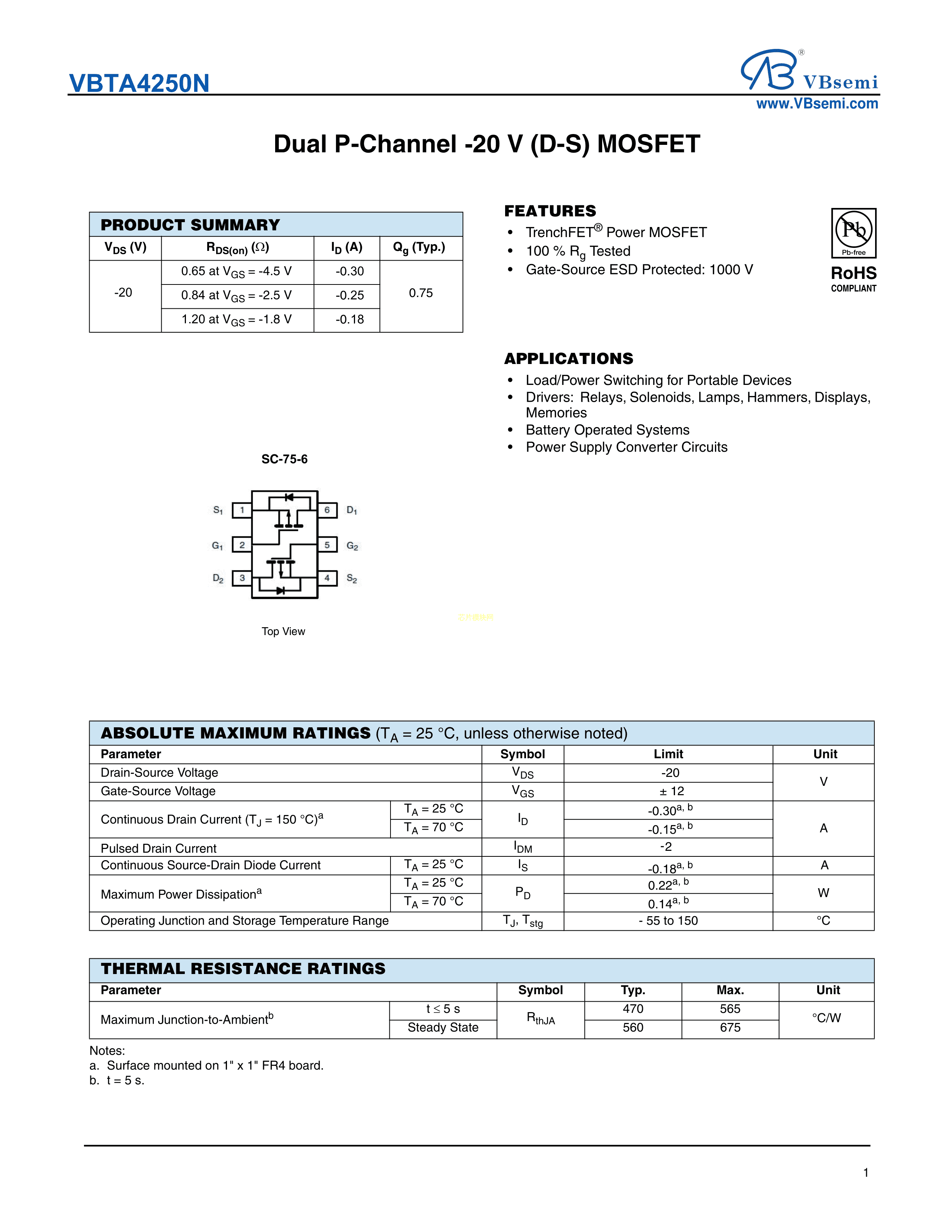 VBTA4250N数据手册SC-75-6封装VBsemi(台湾微碧)PDF规格书,中英文下载