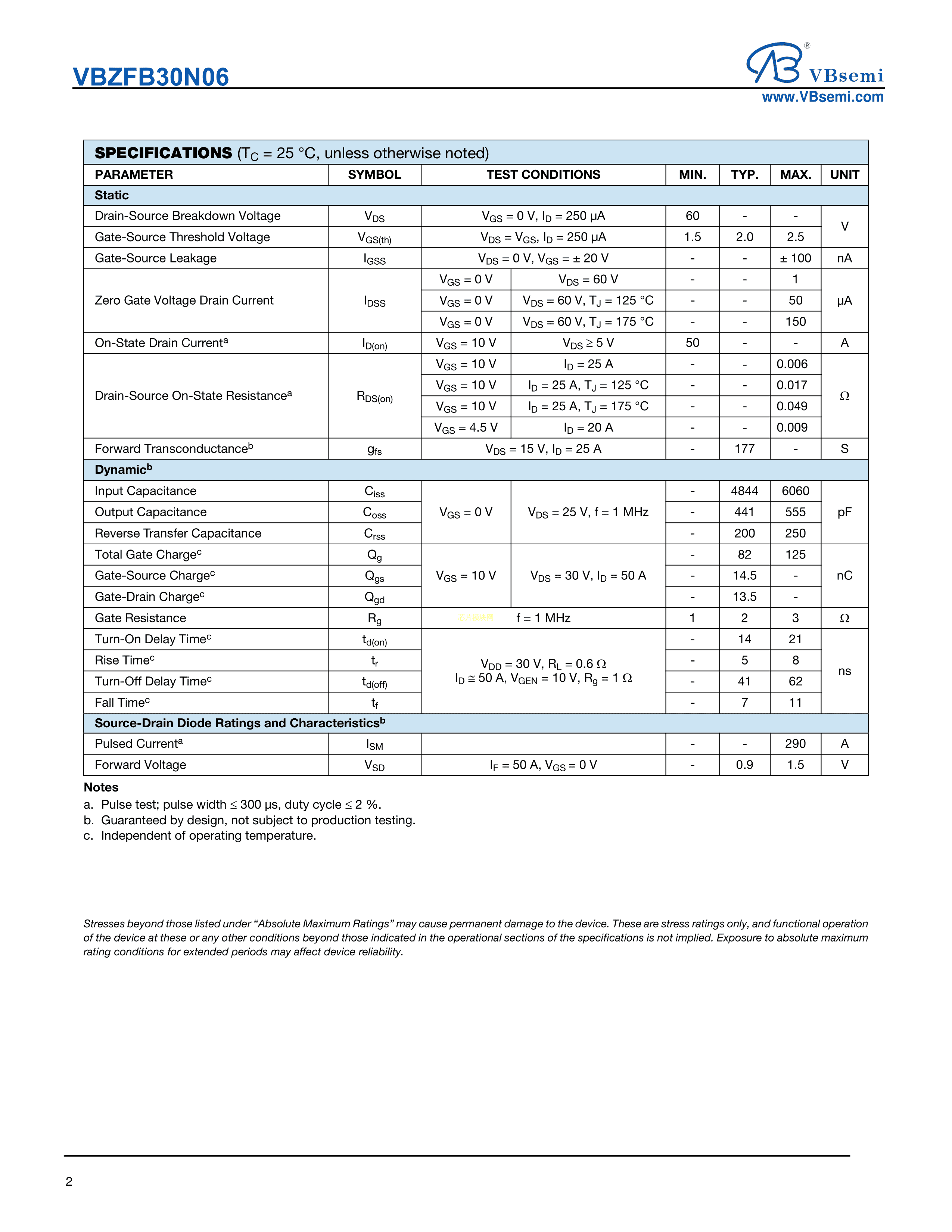 VBZFB30N06数据手册TO-251封装VBsemi(台湾微碧)PDF规格书,中英文下载