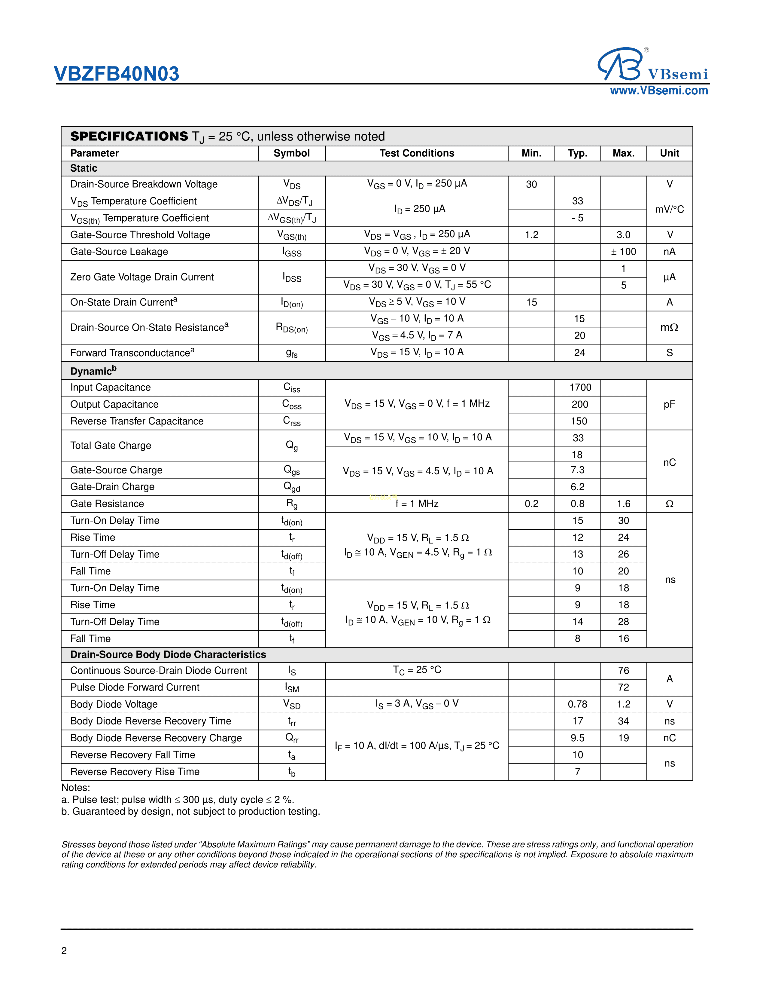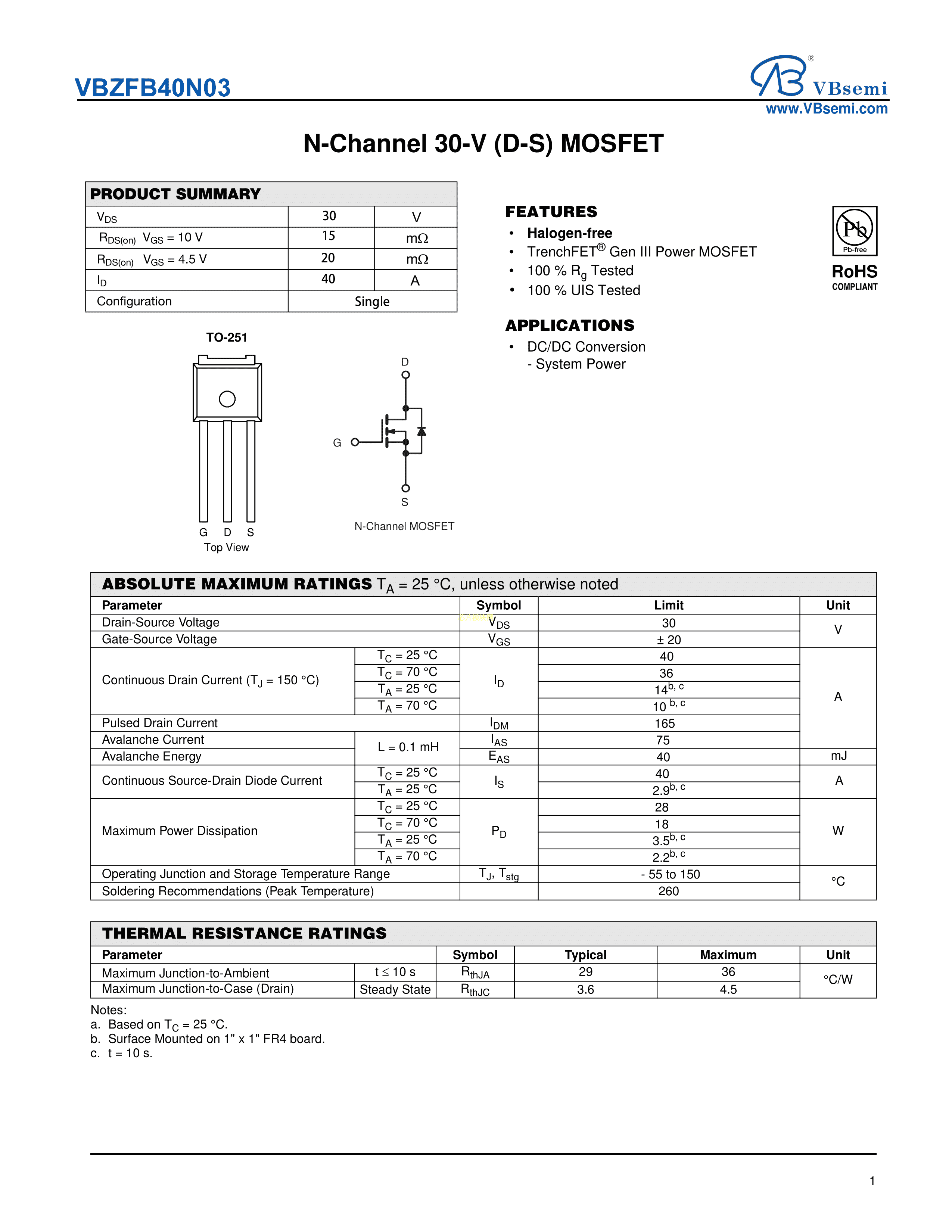 VBZFB40N03数据手册TO-251封装VBsemi(台湾微碧)PDF规格书,中英文下载