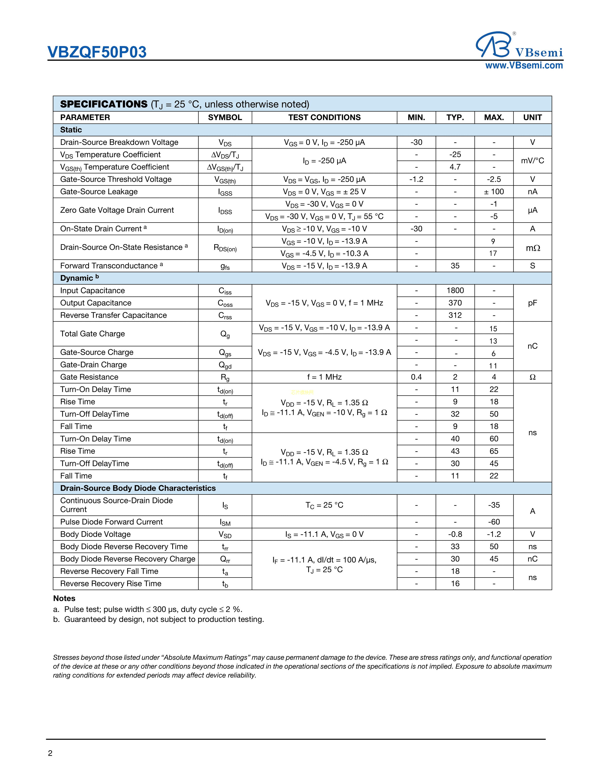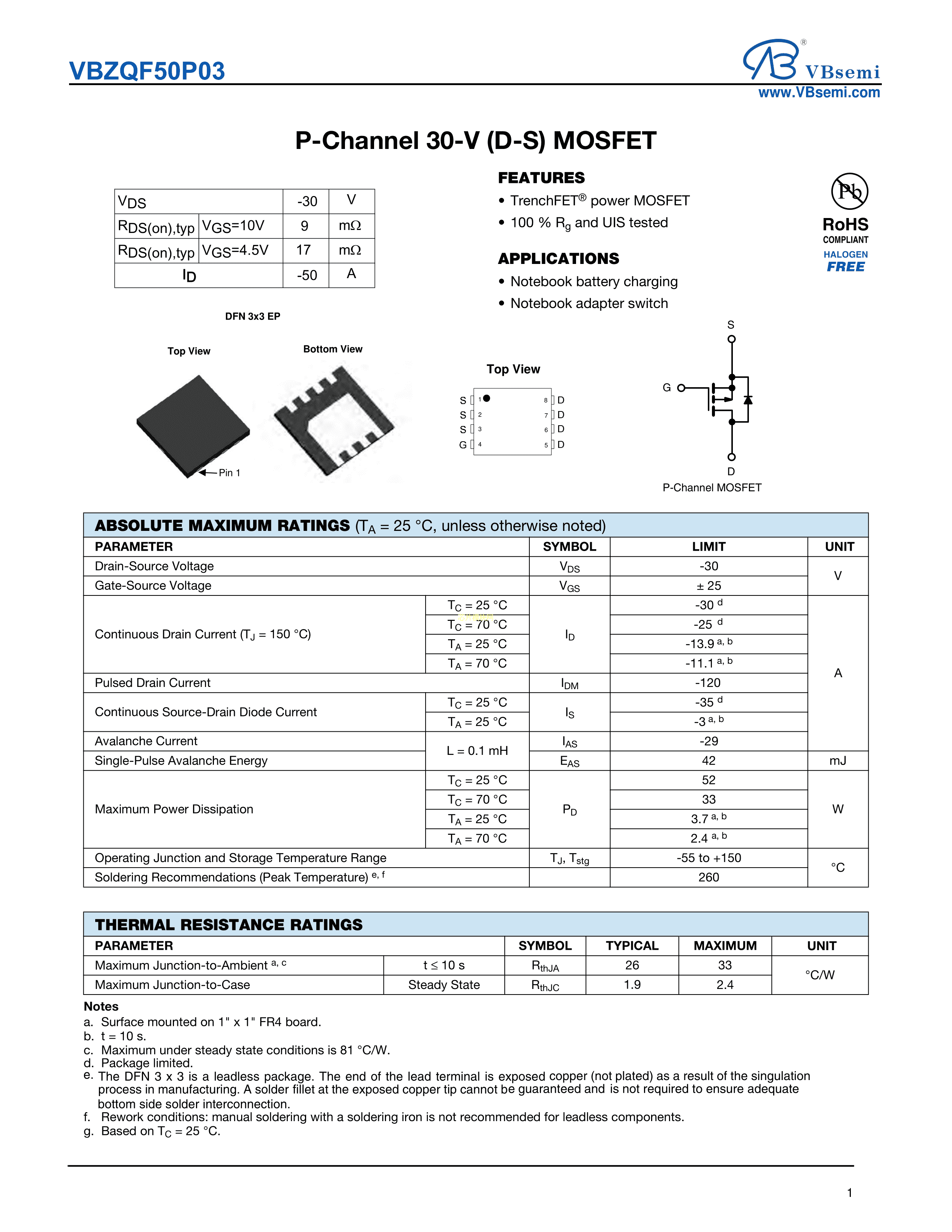 VBZQF50P03数据手册QFN-8(3x3)封装VBsemi(台湾微碧)PDF规格书,中英文下载