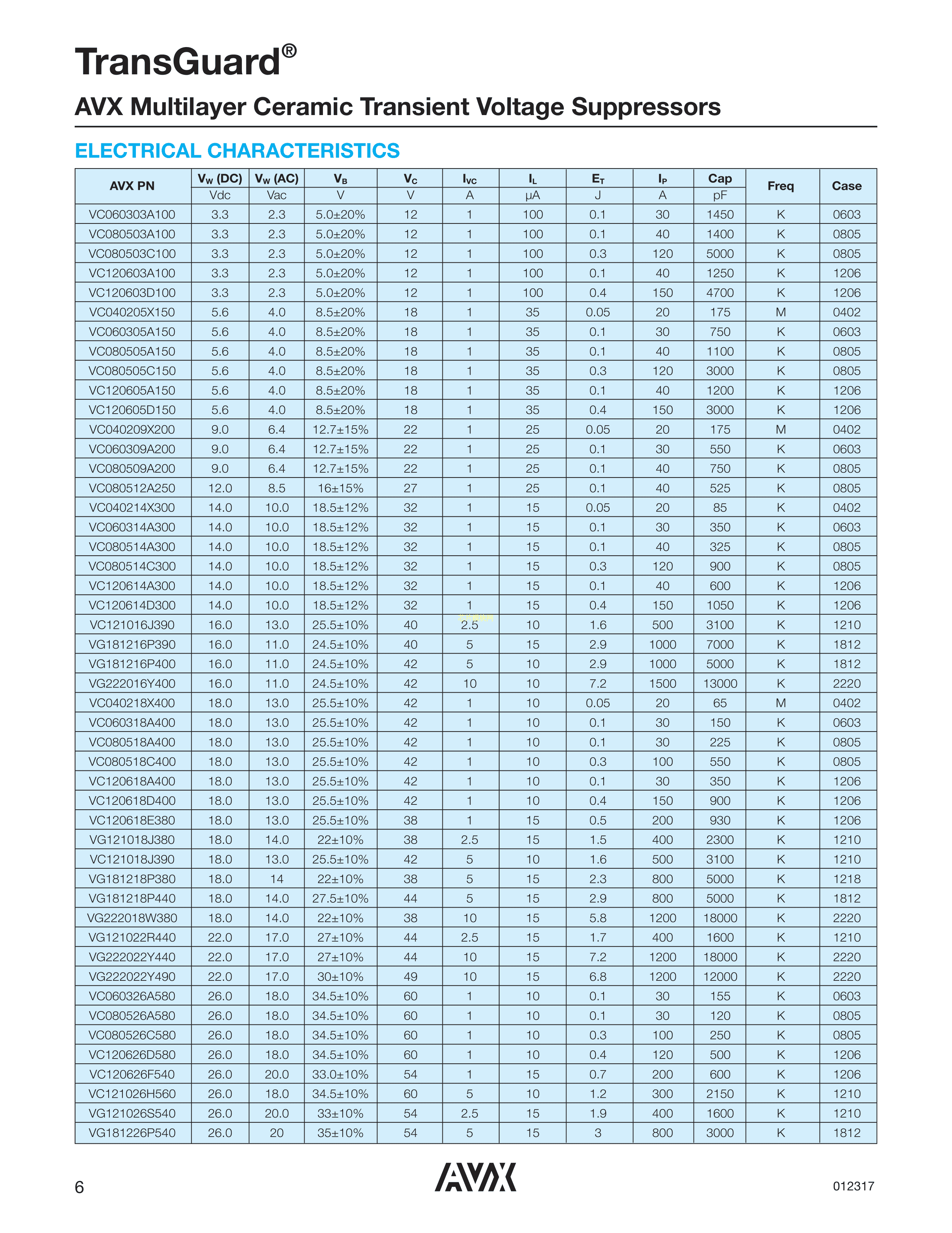 VC080514A300DP数据手册0805封装KyoceraAVXPDF规格书,中英文下载
