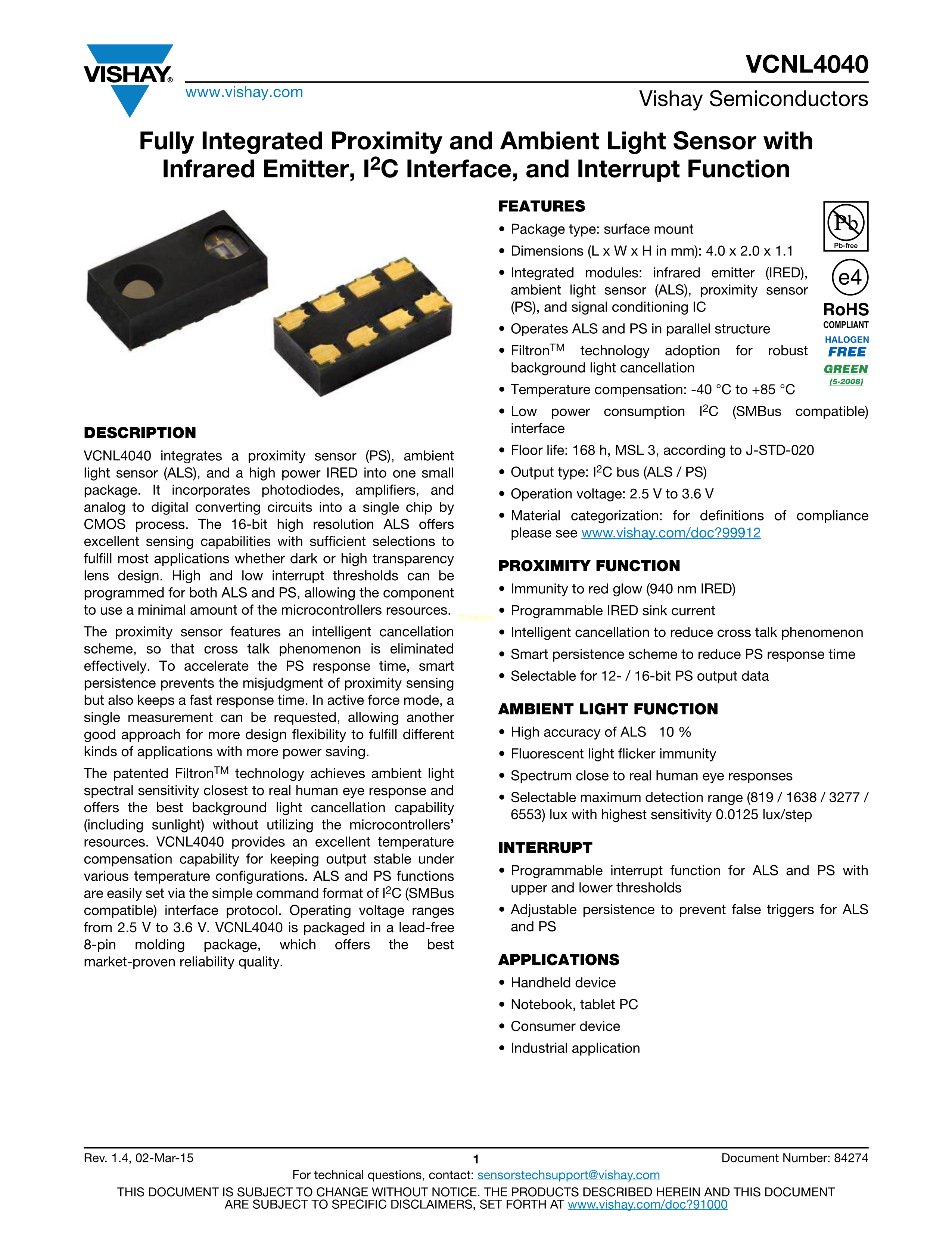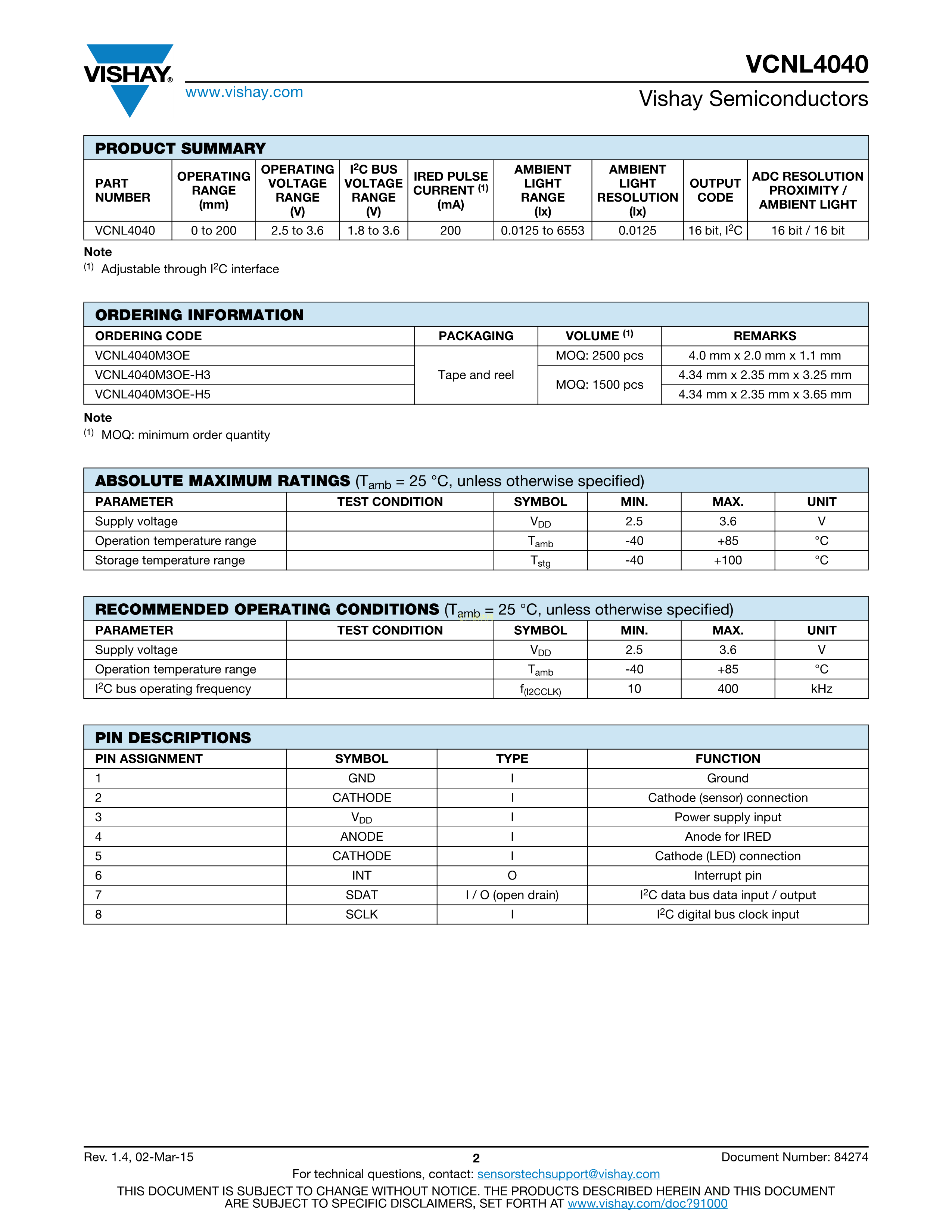 VCNL4040M3OE数据手册SMD-8封装VISHAY(威世)PDF规格书,中英文下载