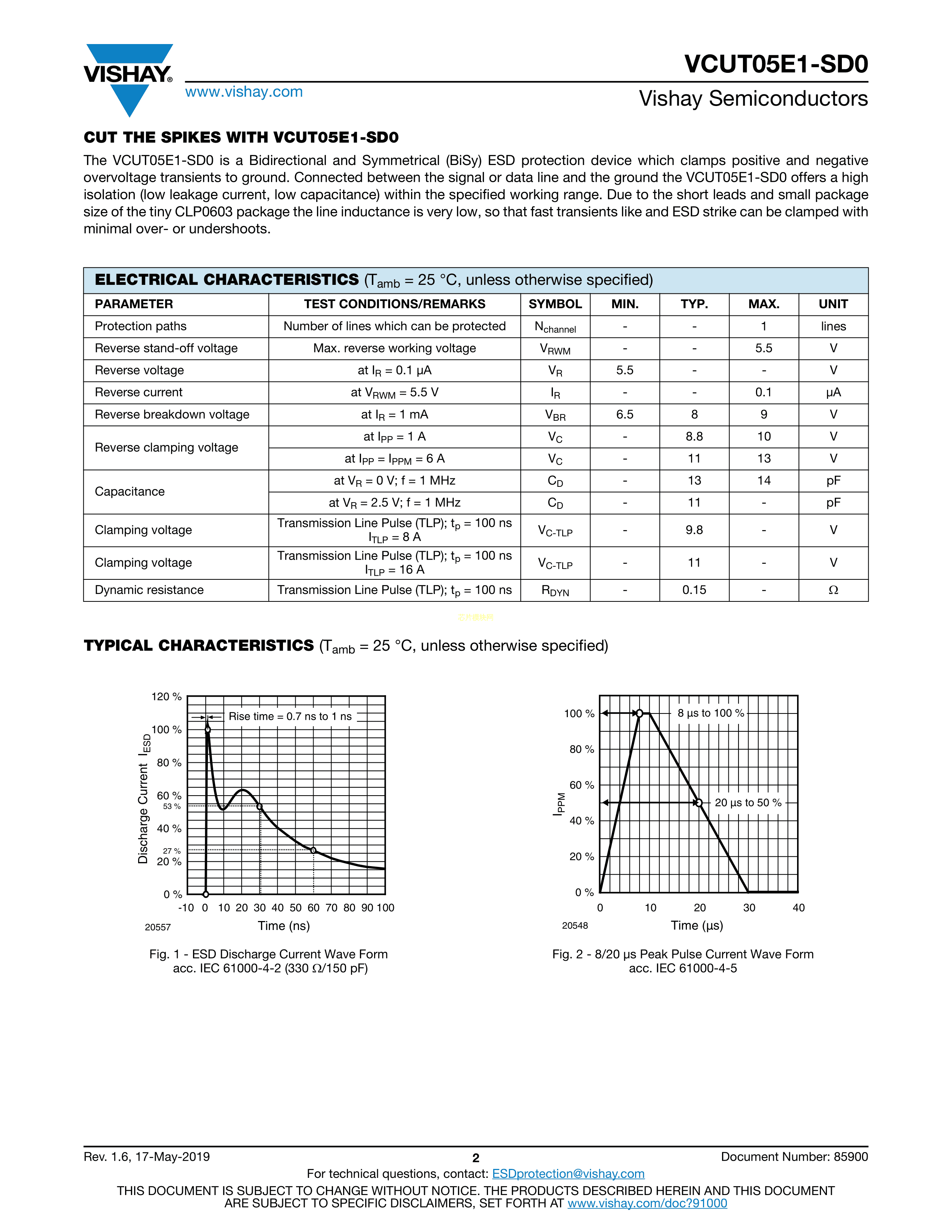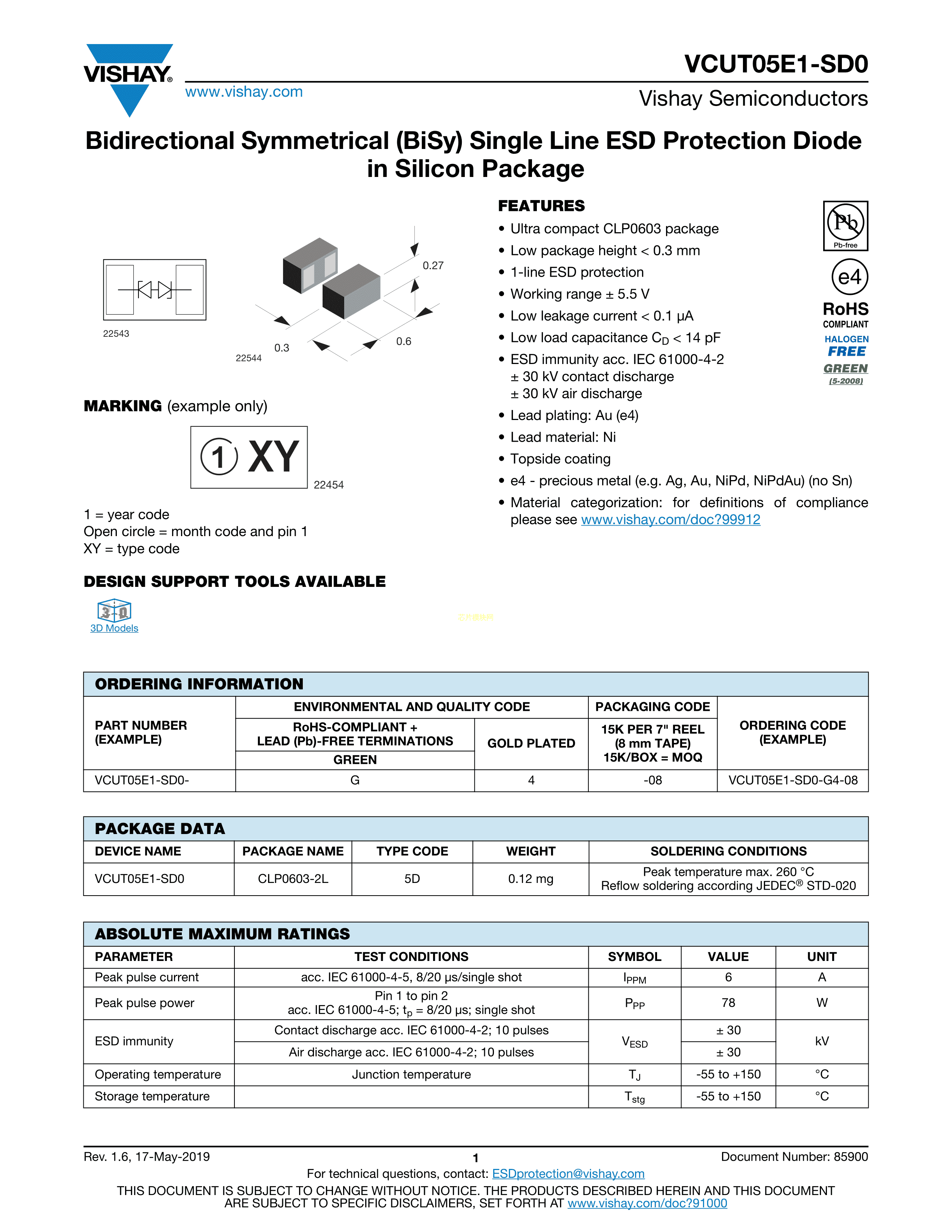VCUT05E1-SD0-G4-08数据手册CLP0603封装VISHAY(威世)PDF规格书,中英