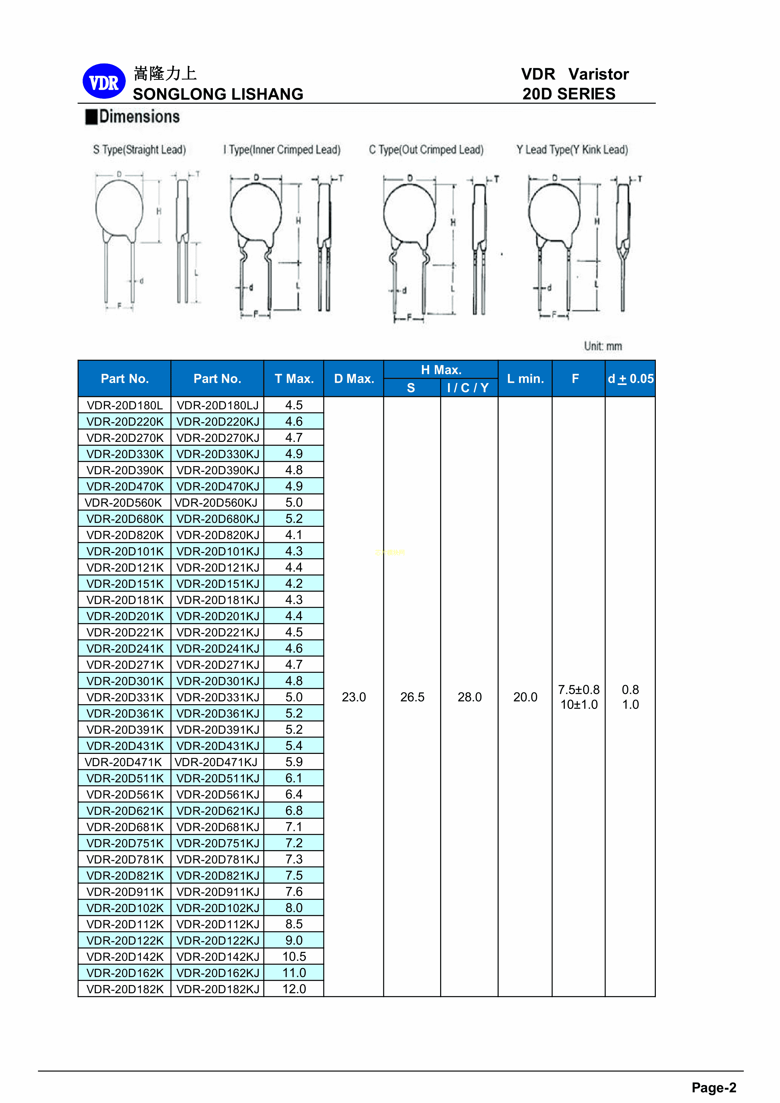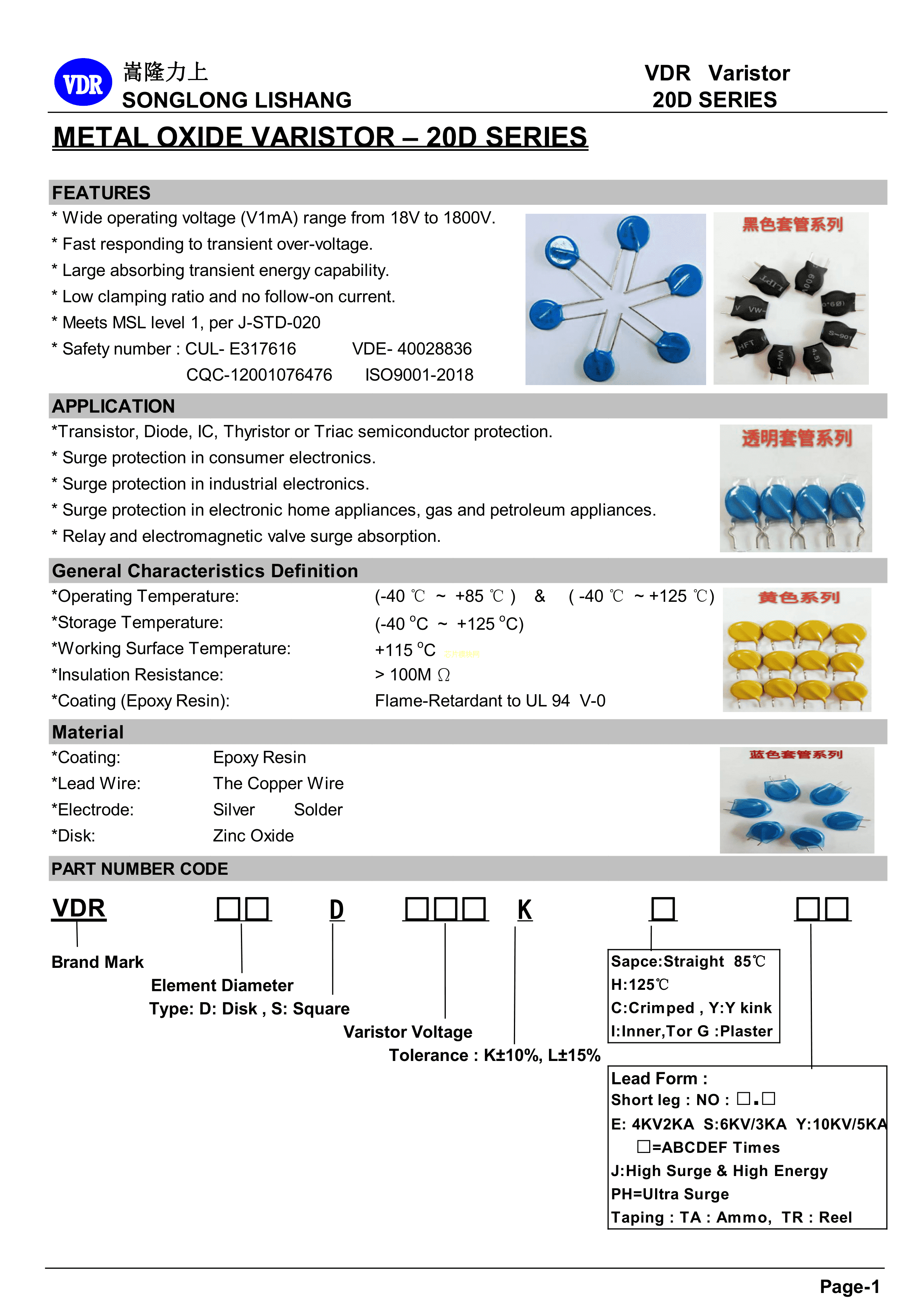 VDR-20D112K数据手册径向引线封装VDR(嵩隆)PDF规格书,中英文下载