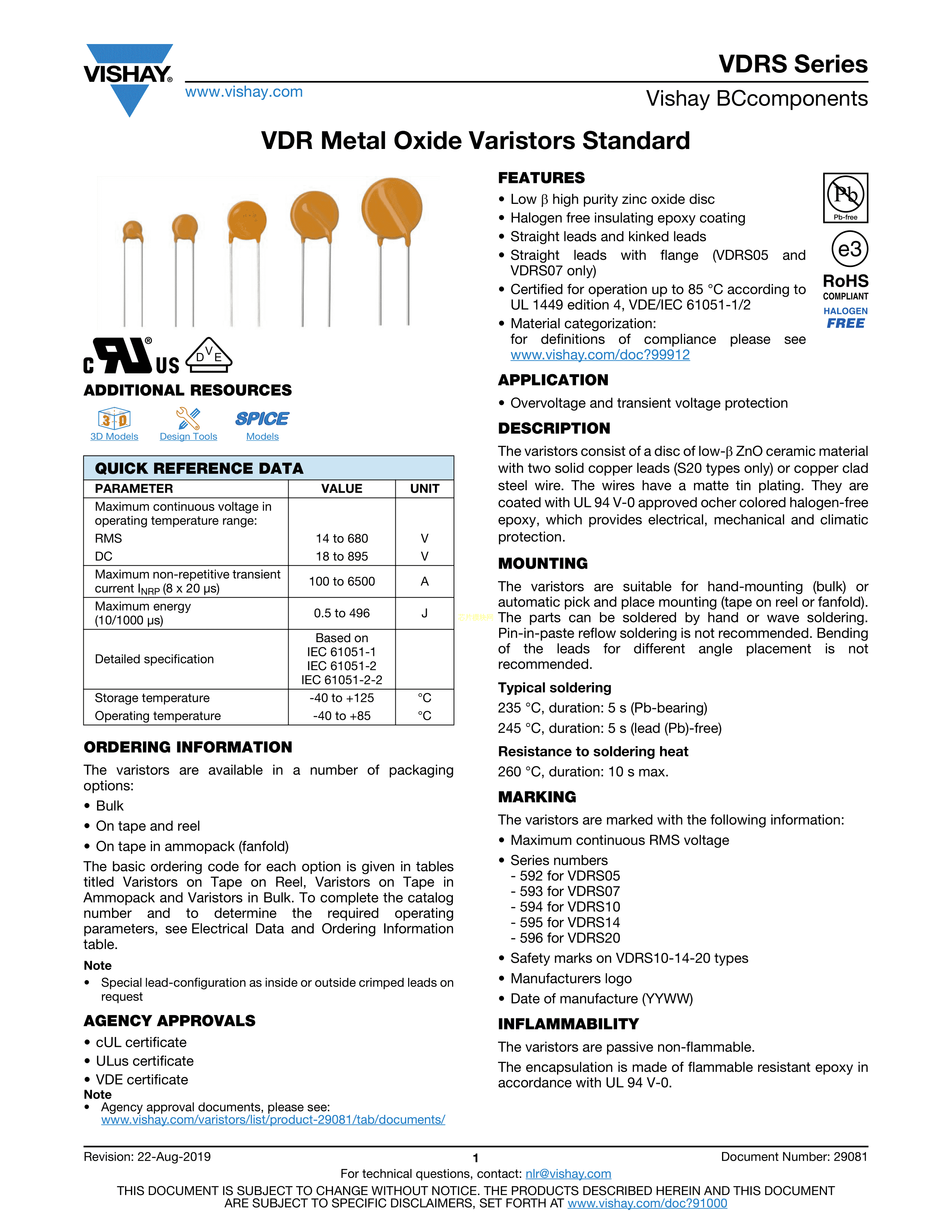 VDRS07H460TLE数据手册径向引线封装VISHAY(威世)PDF规格书,中英文下载