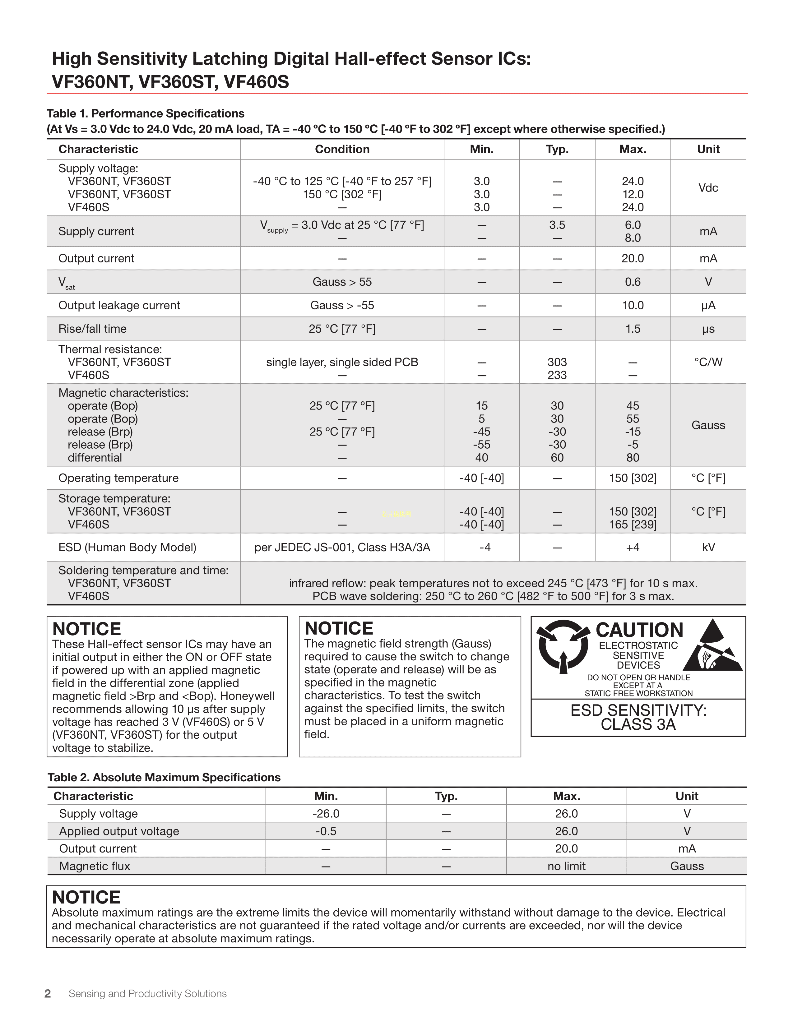 VF360ST数据手册SOT-23(SOT-23-3)封装Honeywell(霍尼韦尔)PDF规格书,中英文下载