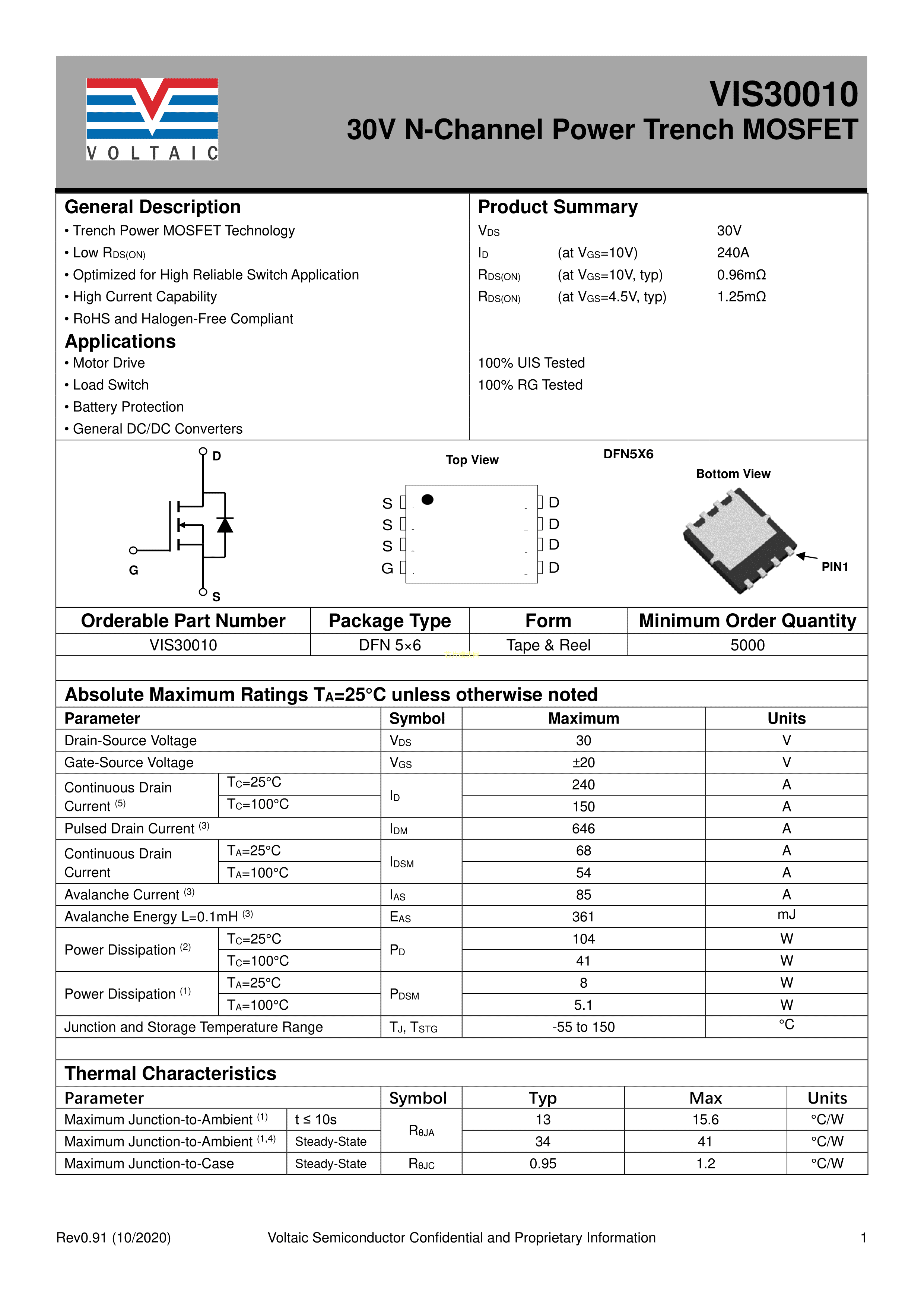 VIS30010数据手册DFN5x6-8封装VOLTAIC(无锡沃达科)PDF规格书,中英文下载