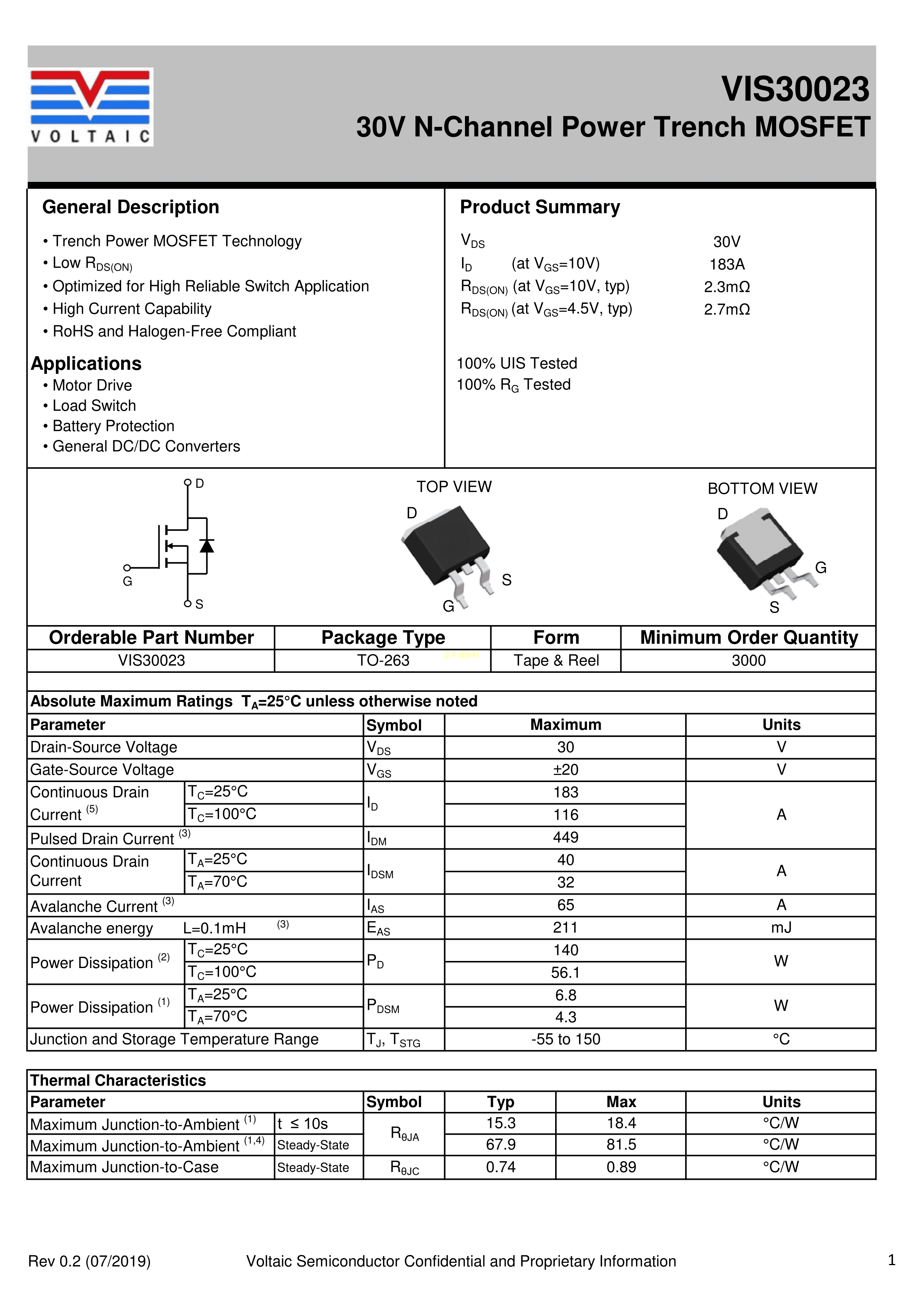 VIS30023数据手册TO-263封装VOLTAIC(无锡沃达科)PDF规格书,中英文下载