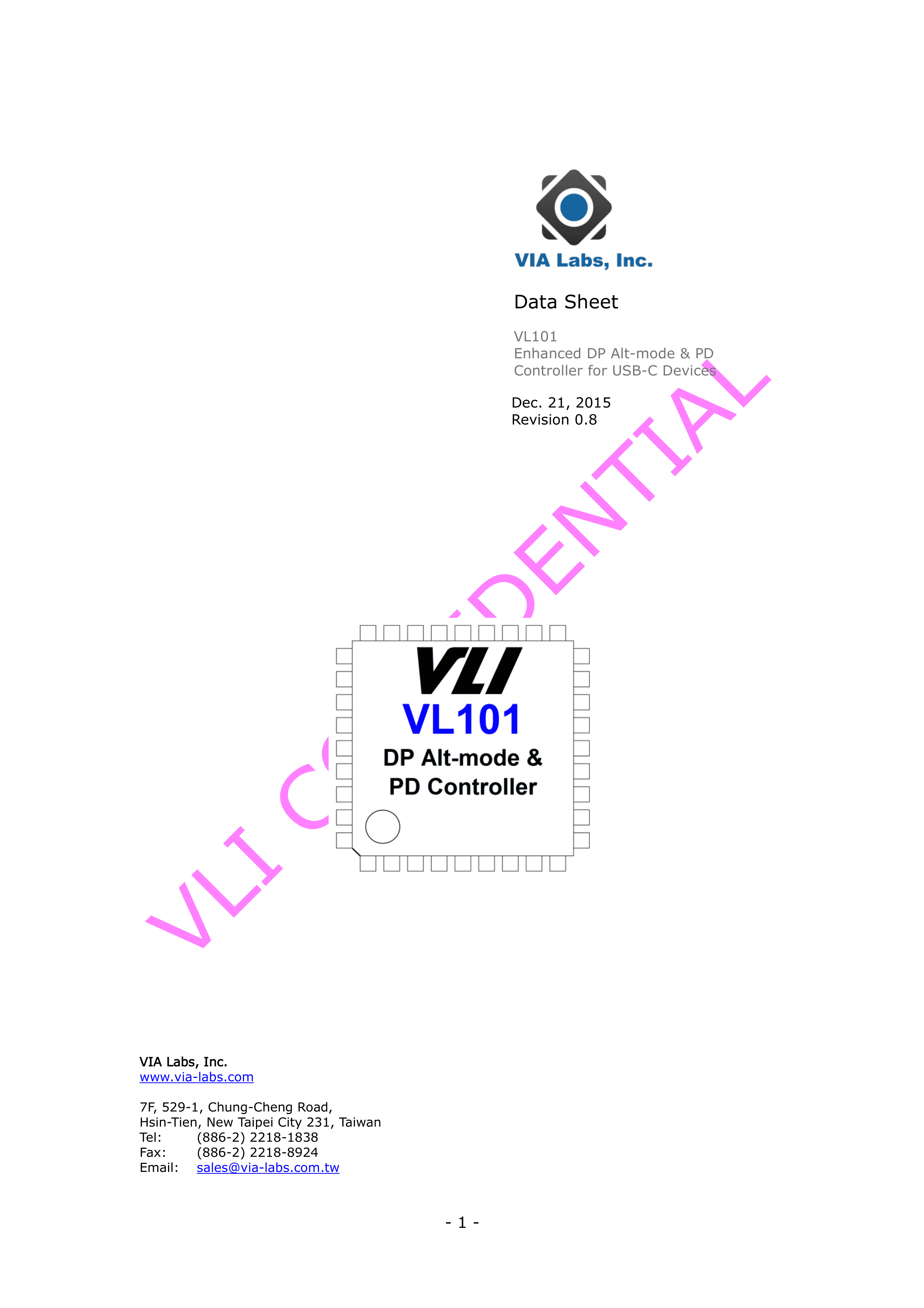 VL101-Q4数据手册QFN-48_6x6x04P封装VIA(台湾威盛电子)PDF规格书,中英文下