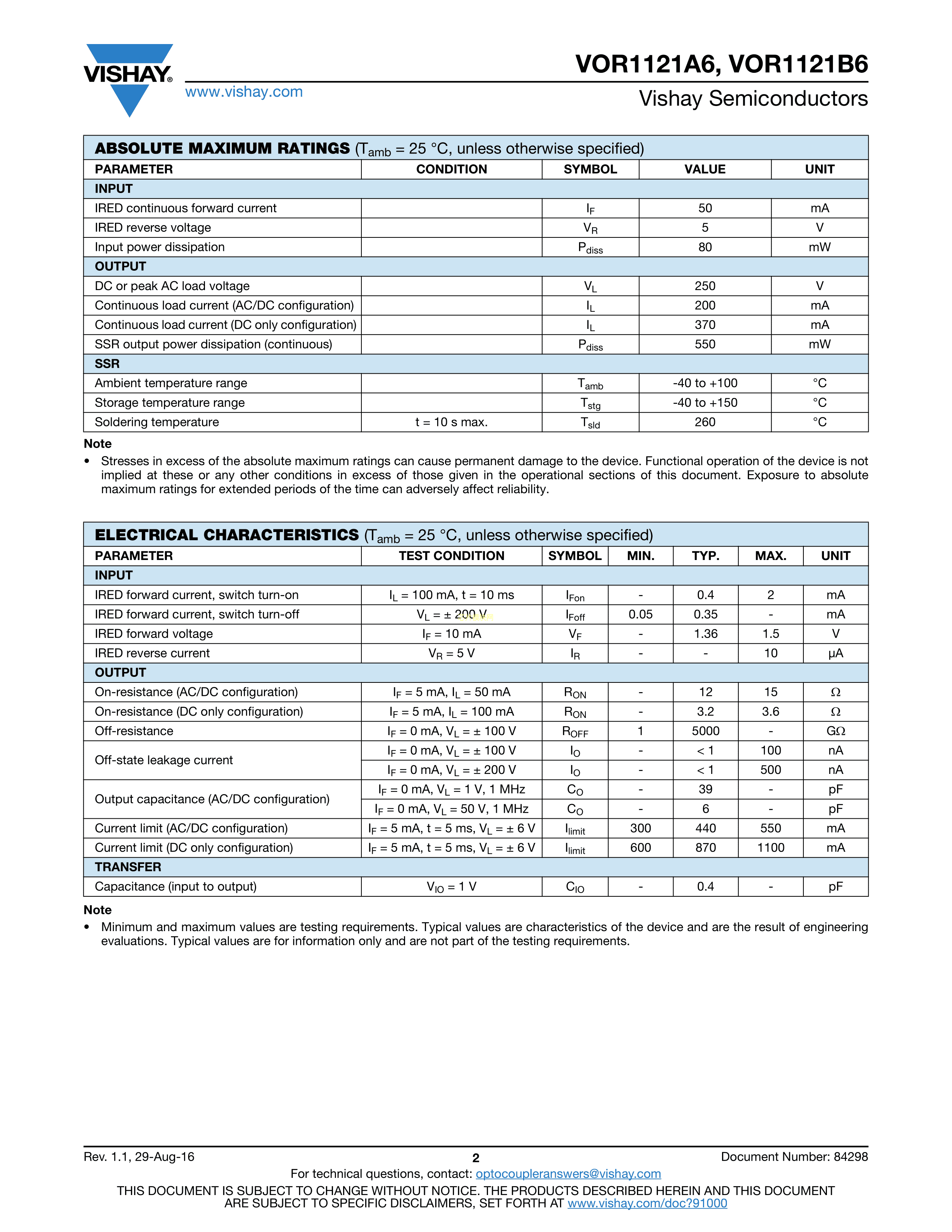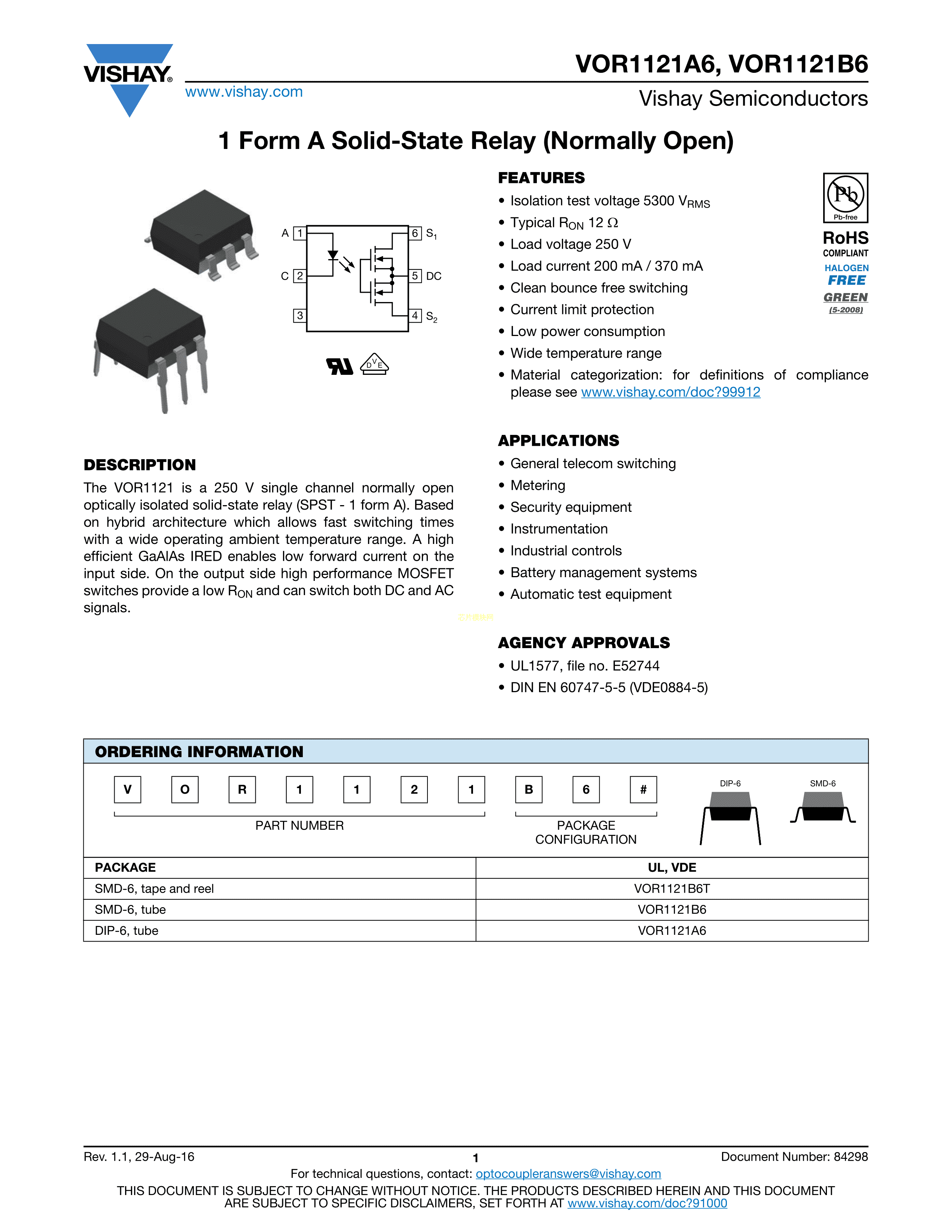 VOR1121B6T数据手册SMD-6封装VISHAY(威世)PDF规格书,中英文下载