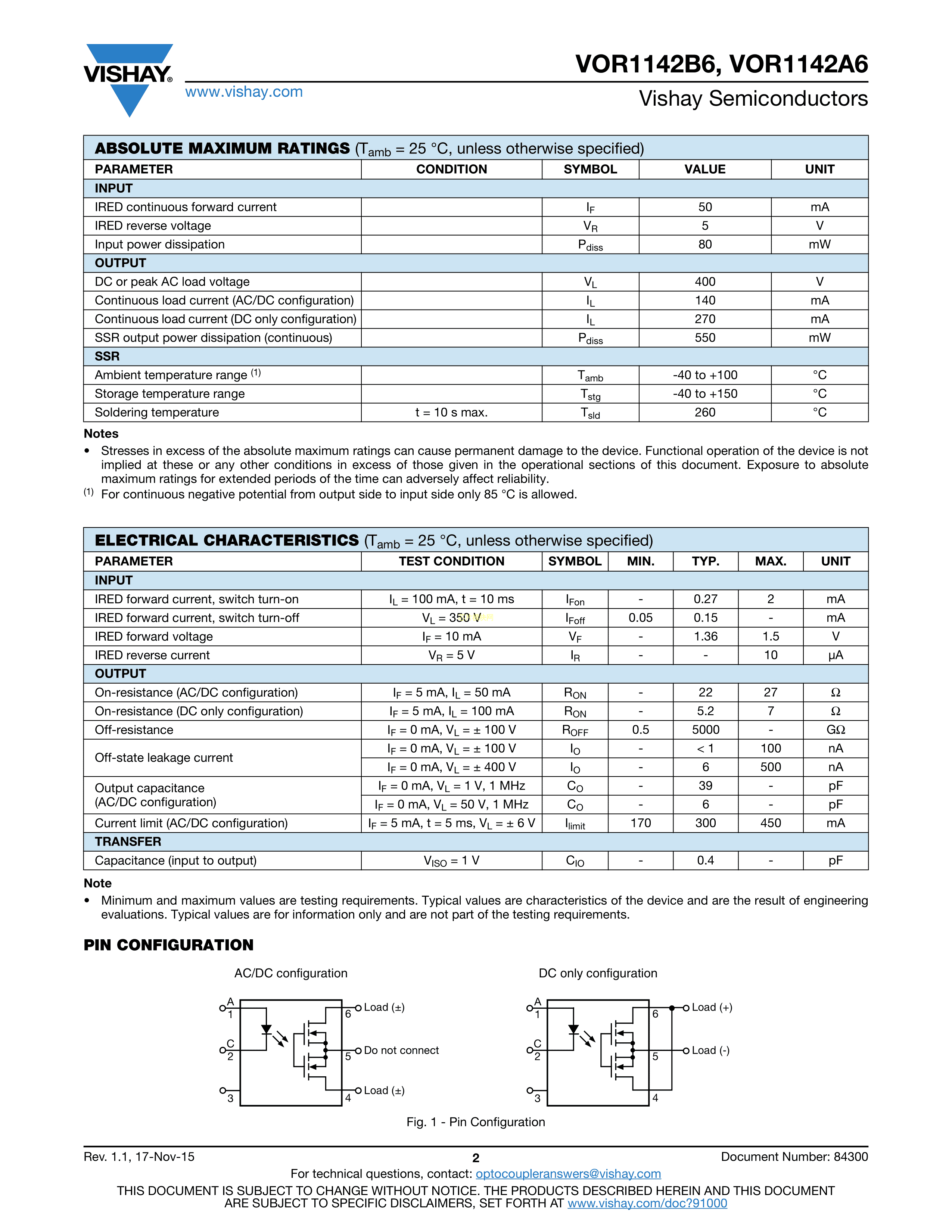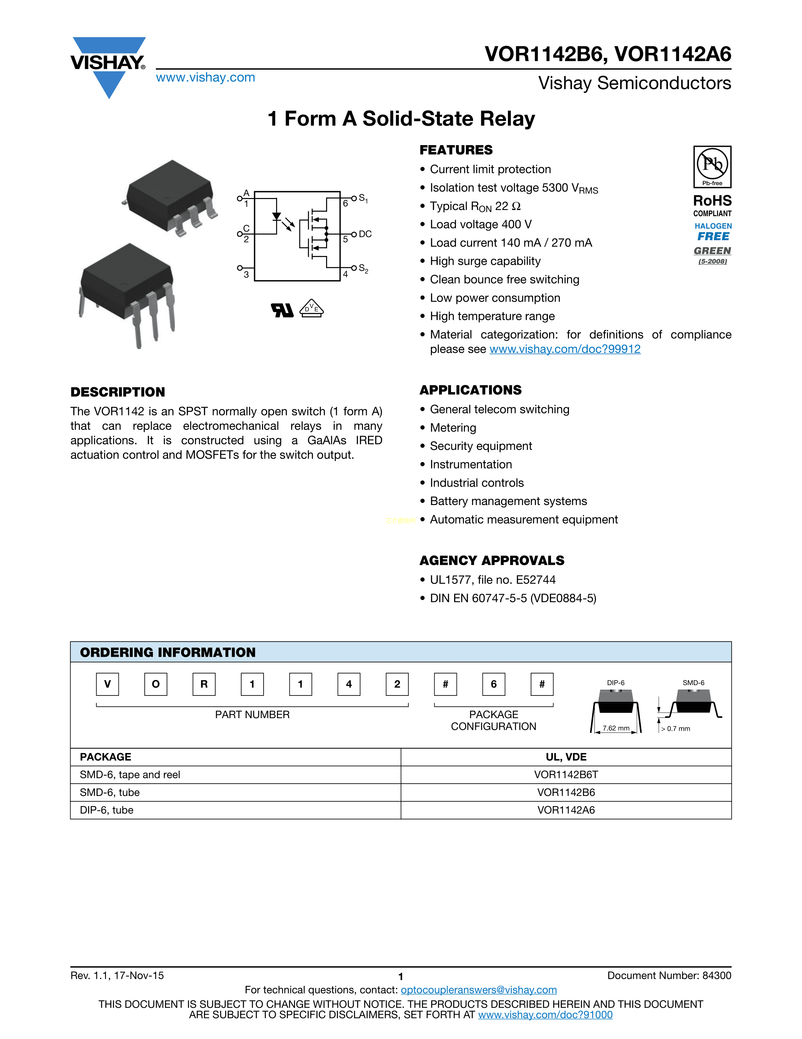VOR1142B6数据手册SMD-6封装VISHAY(威世)PDF规格书,中英文下载