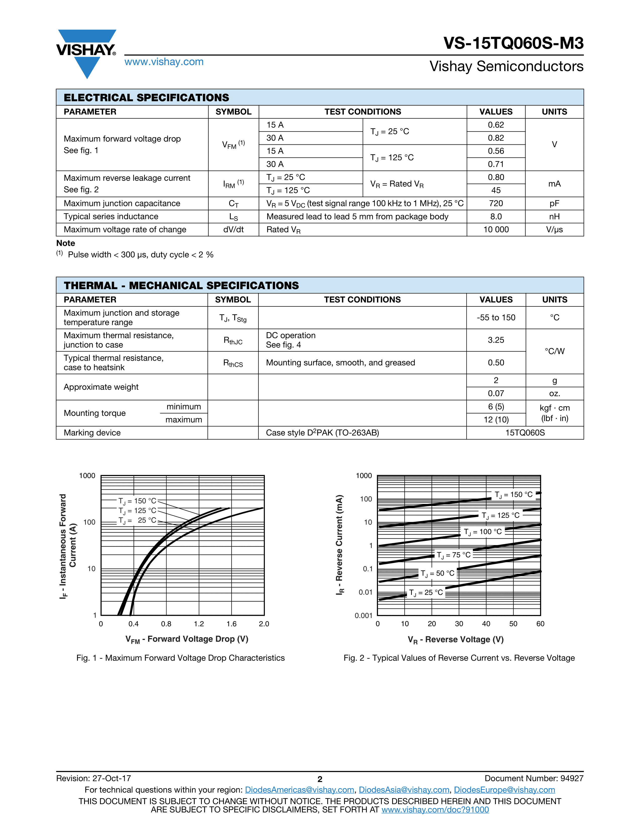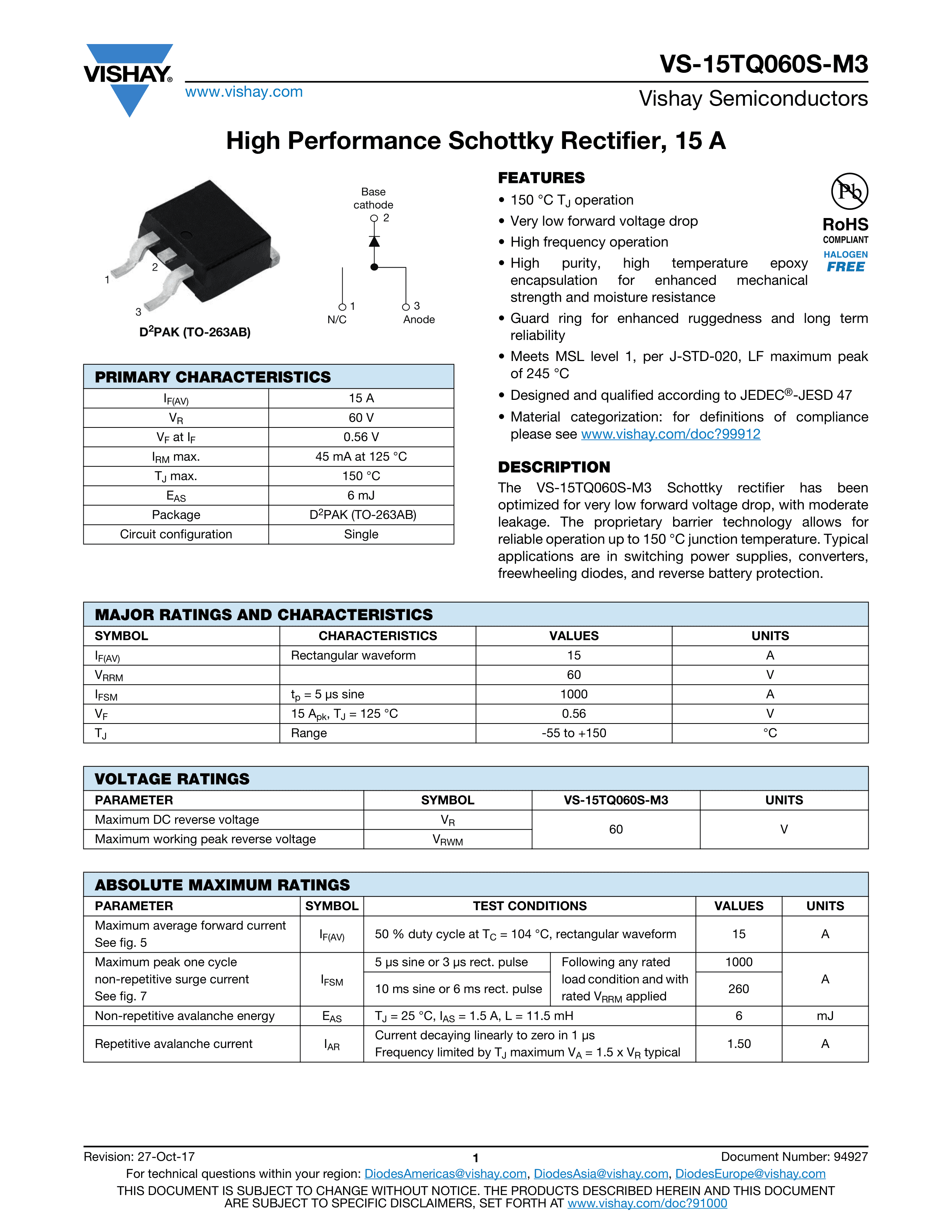 VS-15TQ060STRL-M3数据手册D2PAK封装VISHAY(威世)PDF规格书,中英文下载