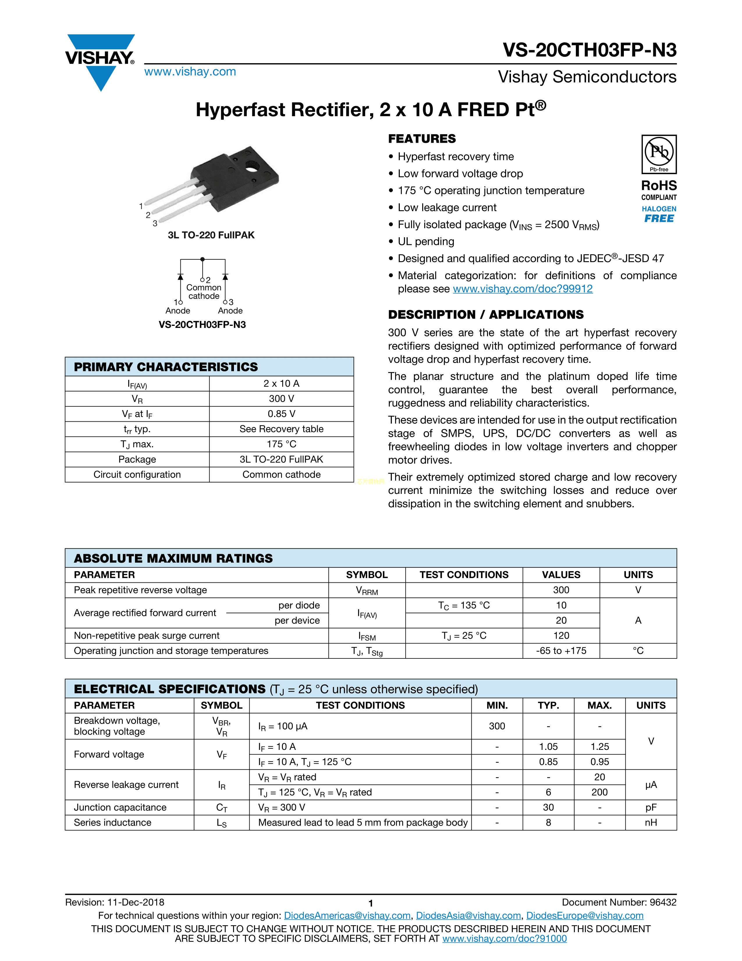 VS-20CTH03FP-N3数据手册TO-220F封装VISHAY(威世)PDF规格书,中英文下载