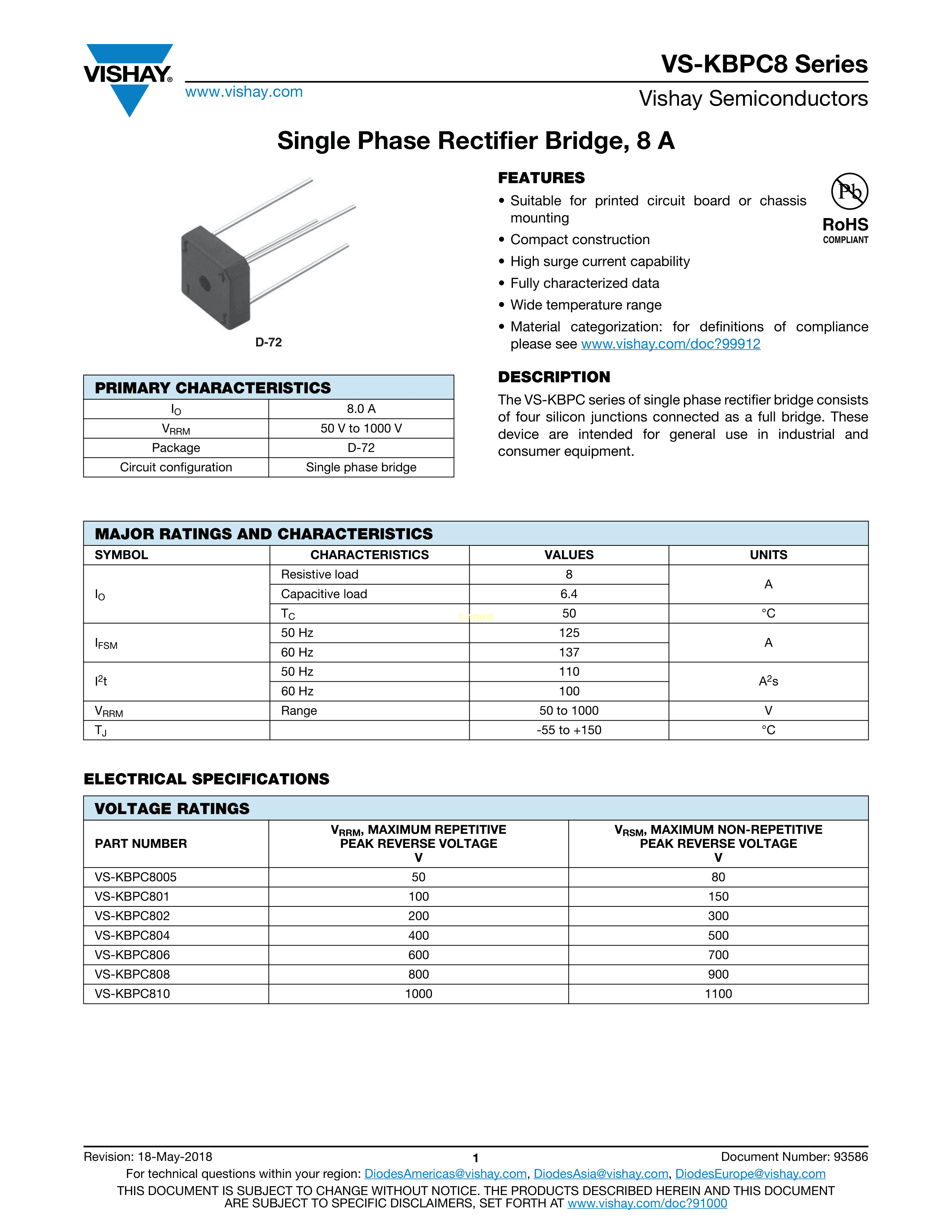 VS-KBPC810PBF数据手册D-72封装VISHAY(威世)PDF规格书,中英文下载