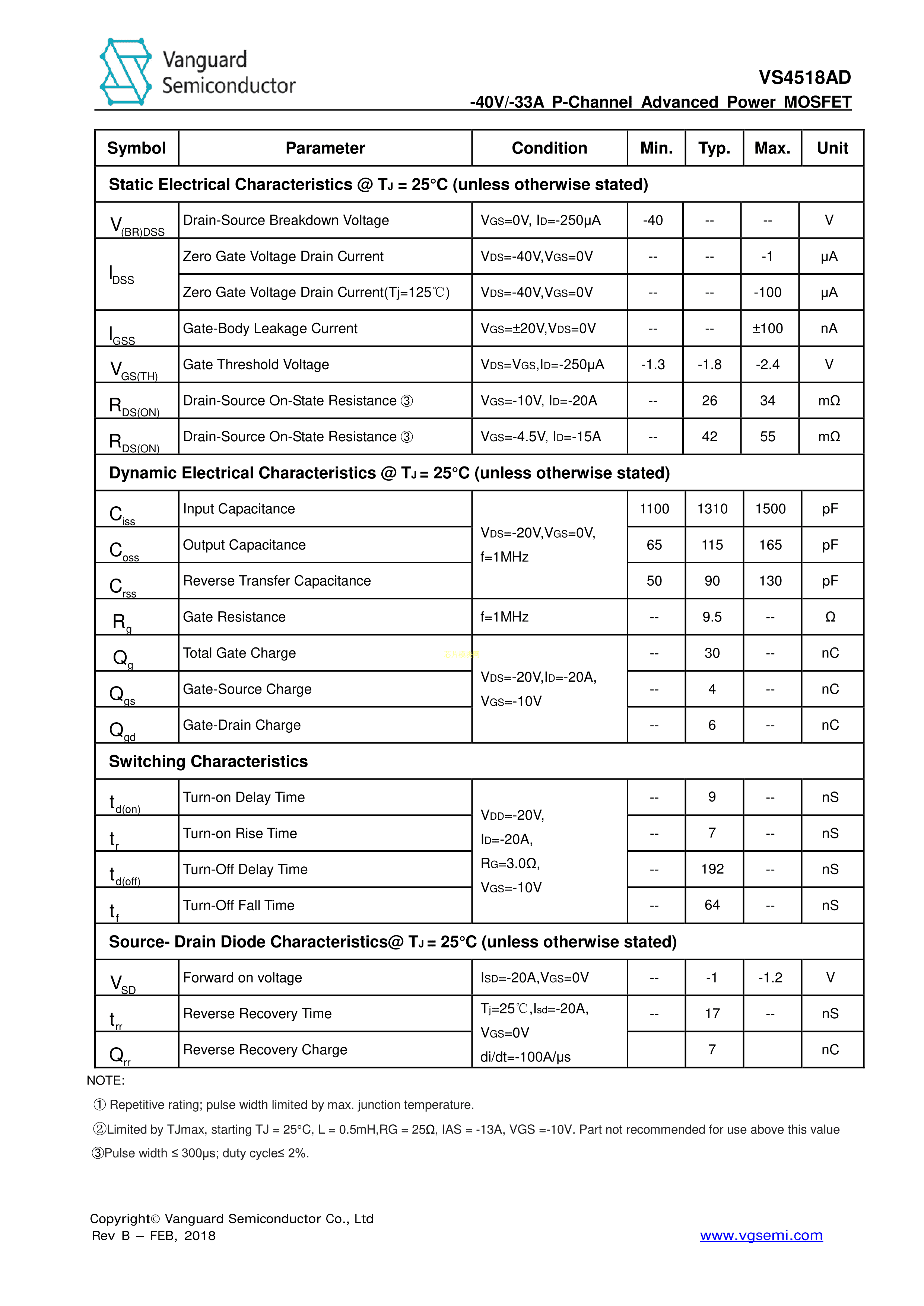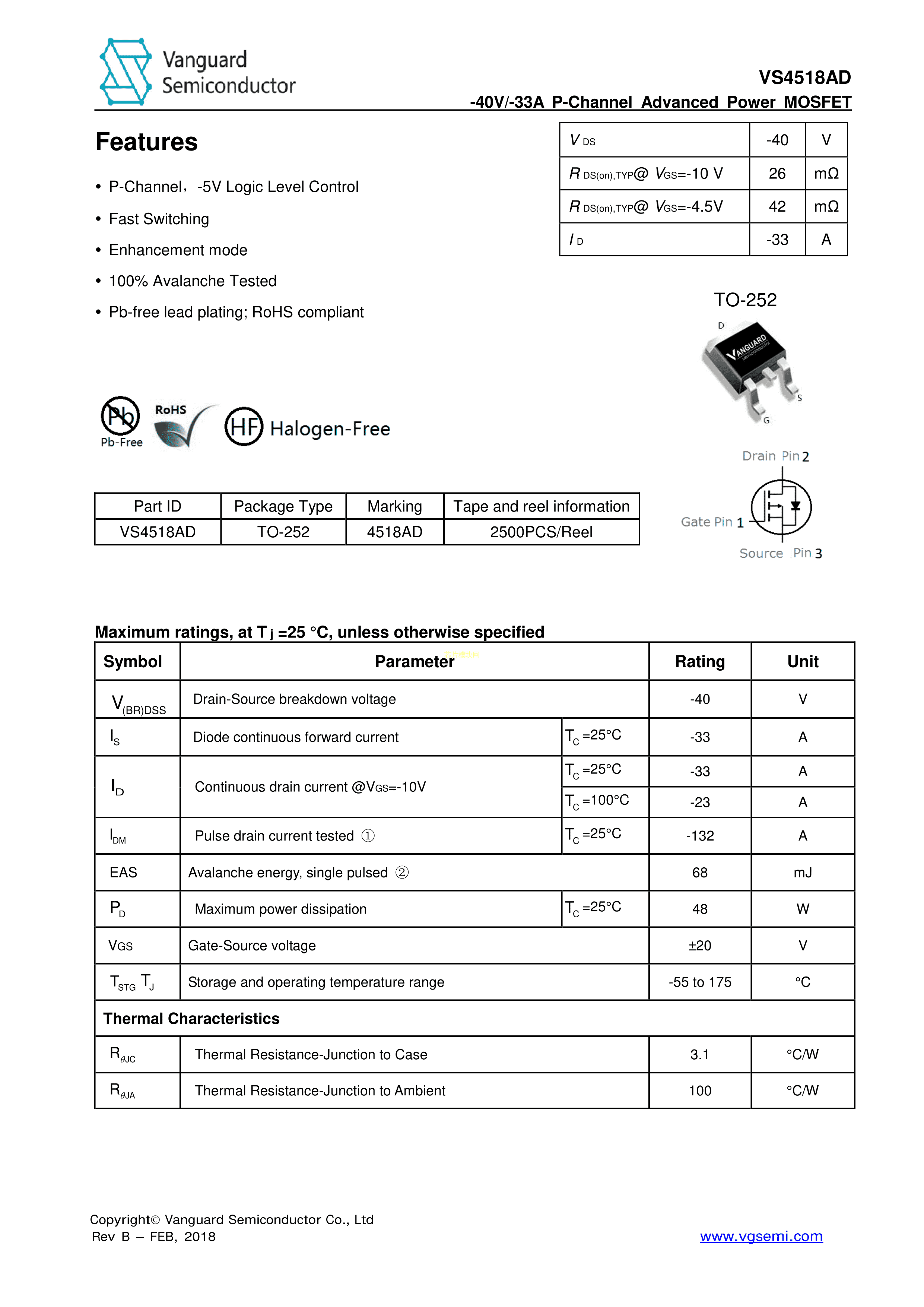 VS4518AD数据手册TO-252封装Vanguard(威兆)PDF规格书,中英文下载