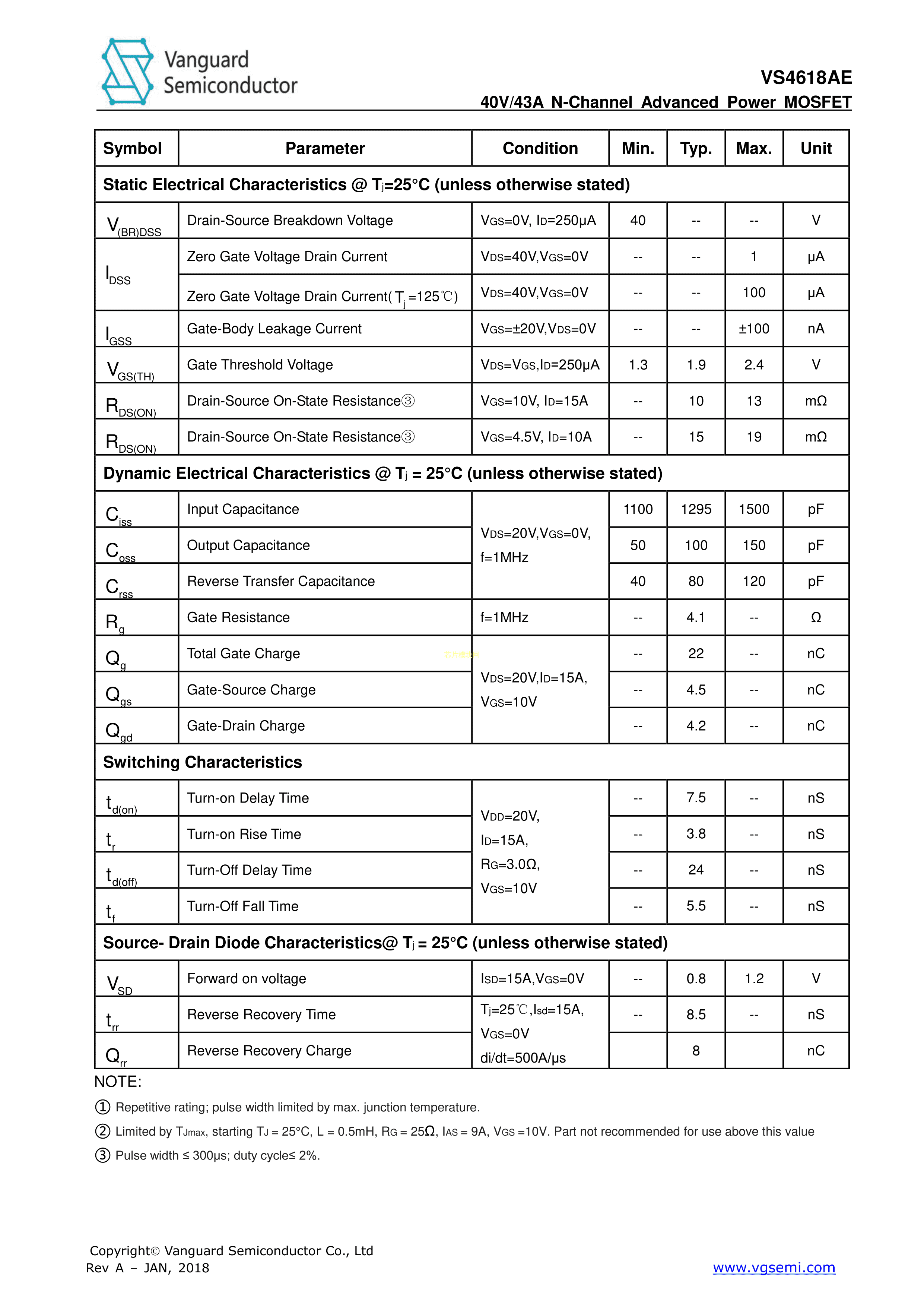 VS4618AE数据手册PDFN3333封装Vanguard(威兆)PDF规格书,中英文下载