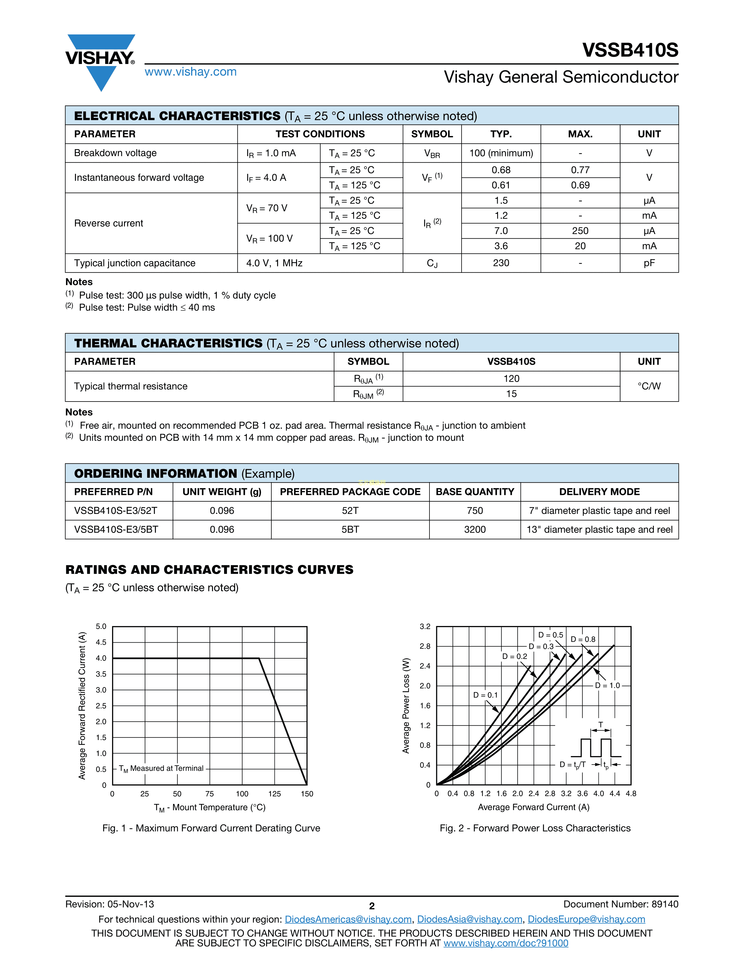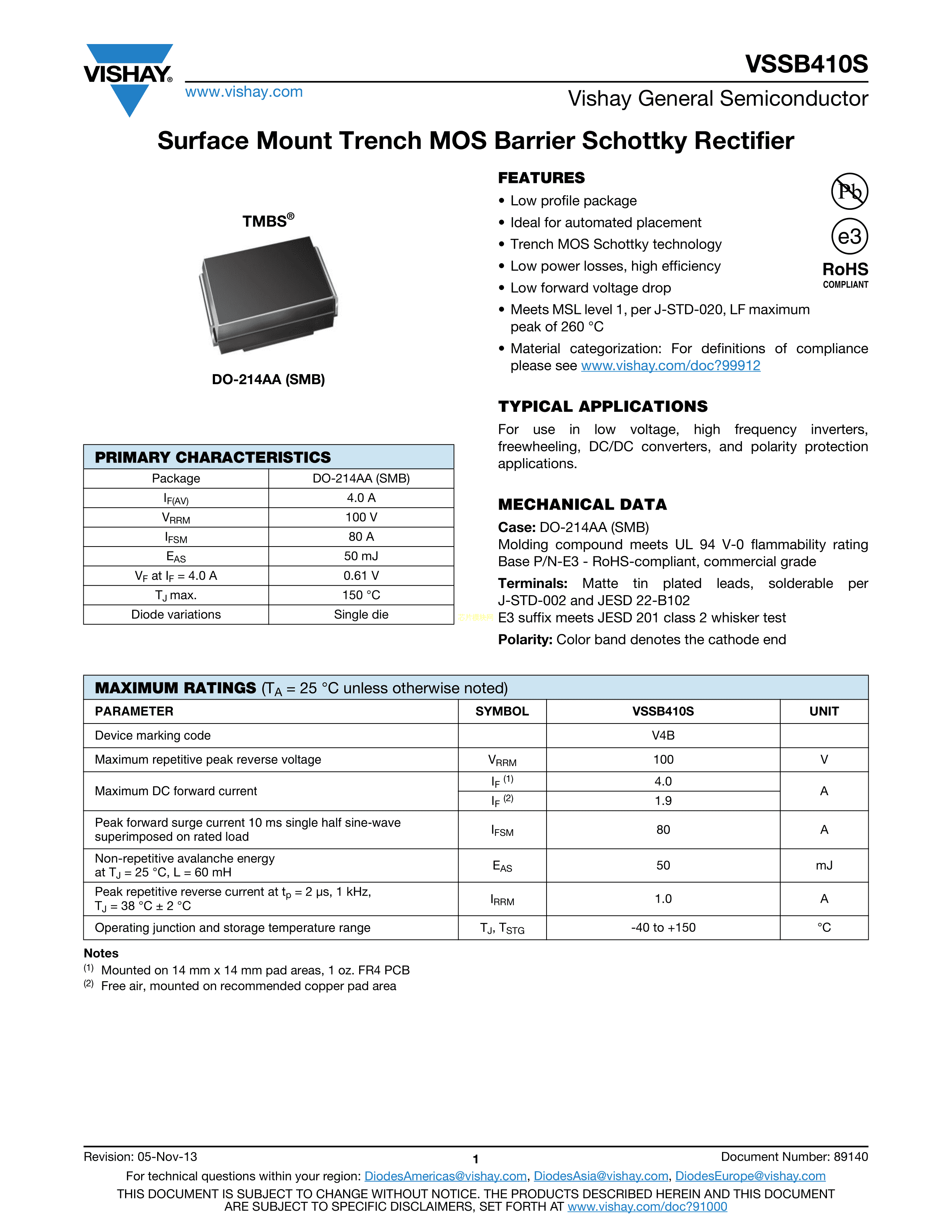 VSSB410S-E3-52T数据手册SMB(DO-214AA)封装VISHAY(威世)PDF规格书,中英文下载