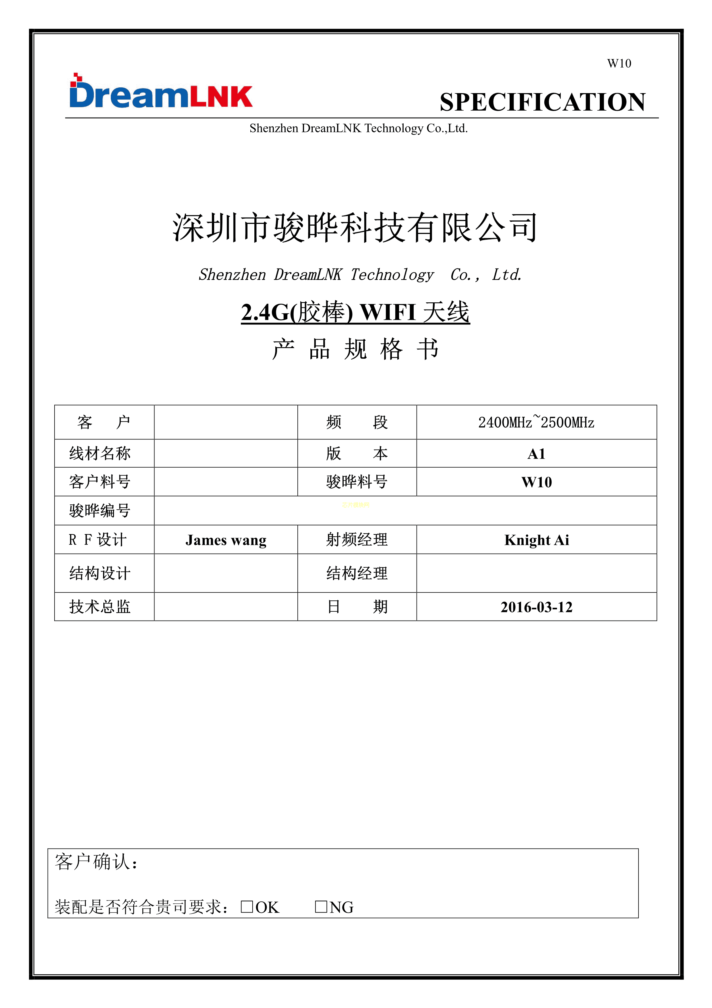 W10-2.4G数据手册-封装DreamLNK(骏晔科技)PDF规格书,中英文下载