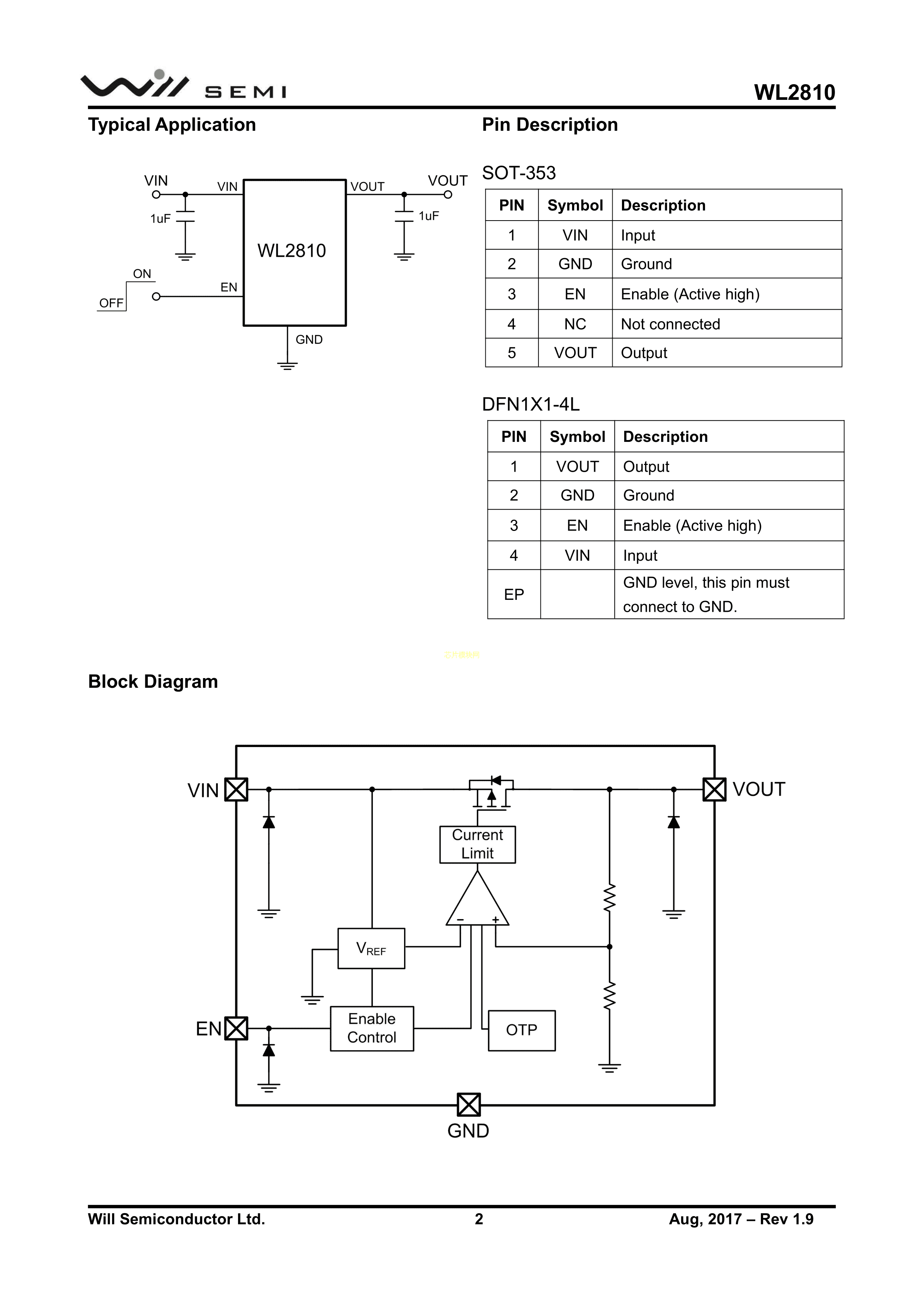 WL2810D25-4-TR数据手册DFN1010封装WILLSEMI(韦尔)PDF规格书,中英文下