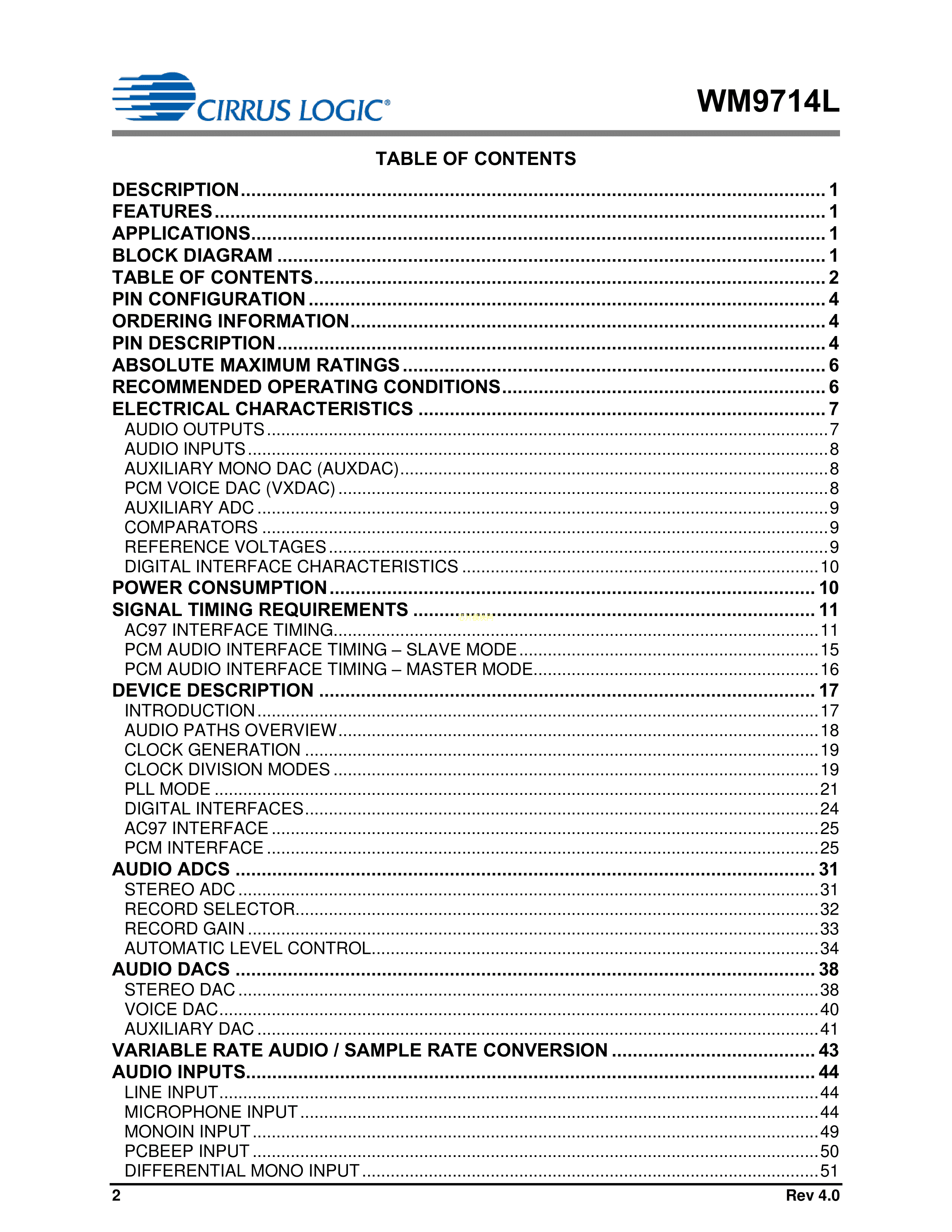 WM9714CLGEFL-RV数据手册QFN-48封装CirrusLogic(凌云)PDF规格书,中英文下载