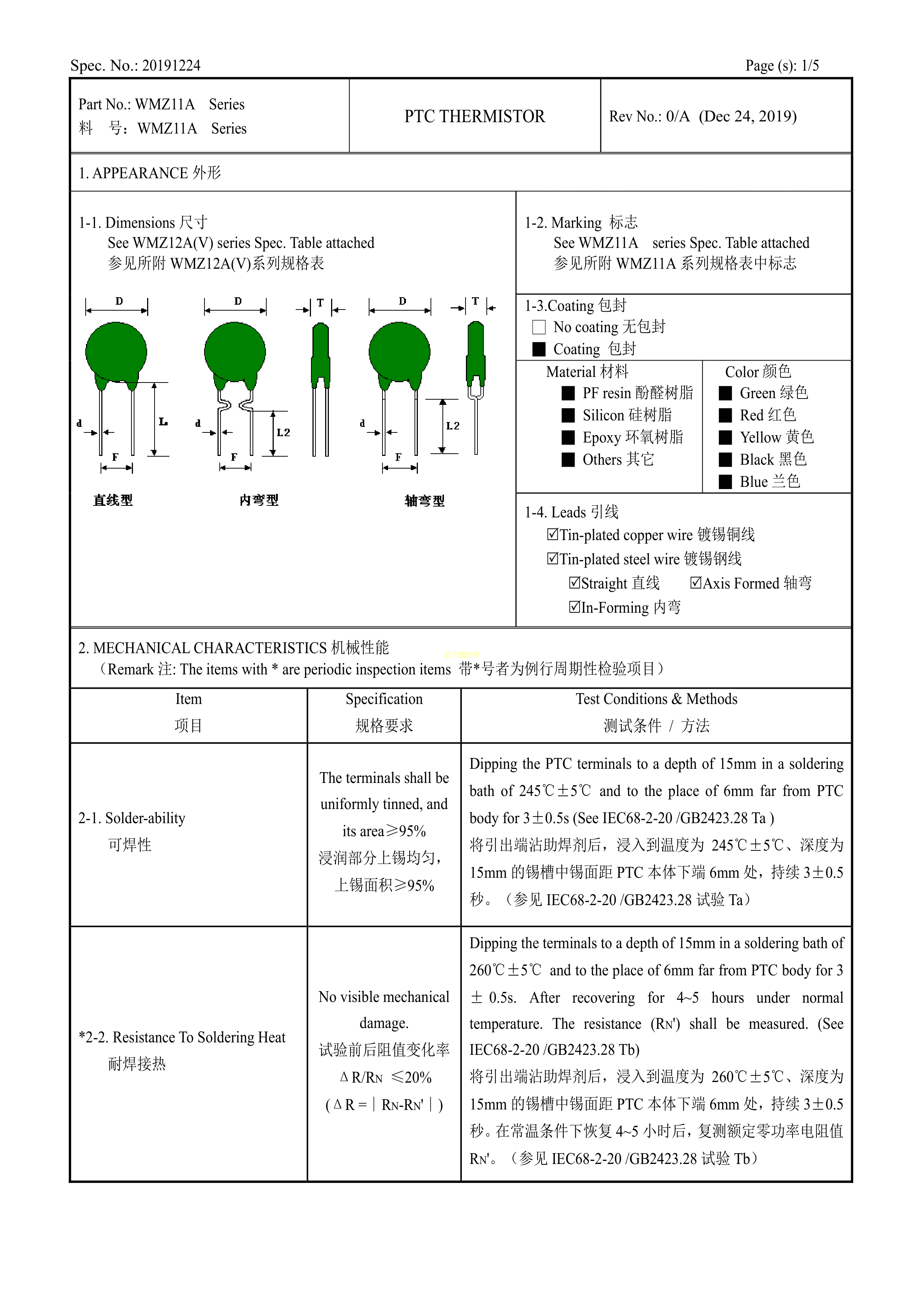 WMZ11A-105S151XUU400B20-G5B数据手册径向引线P5mm封装Tyohm(幸亚电阻)PDF规格书,中英文下载