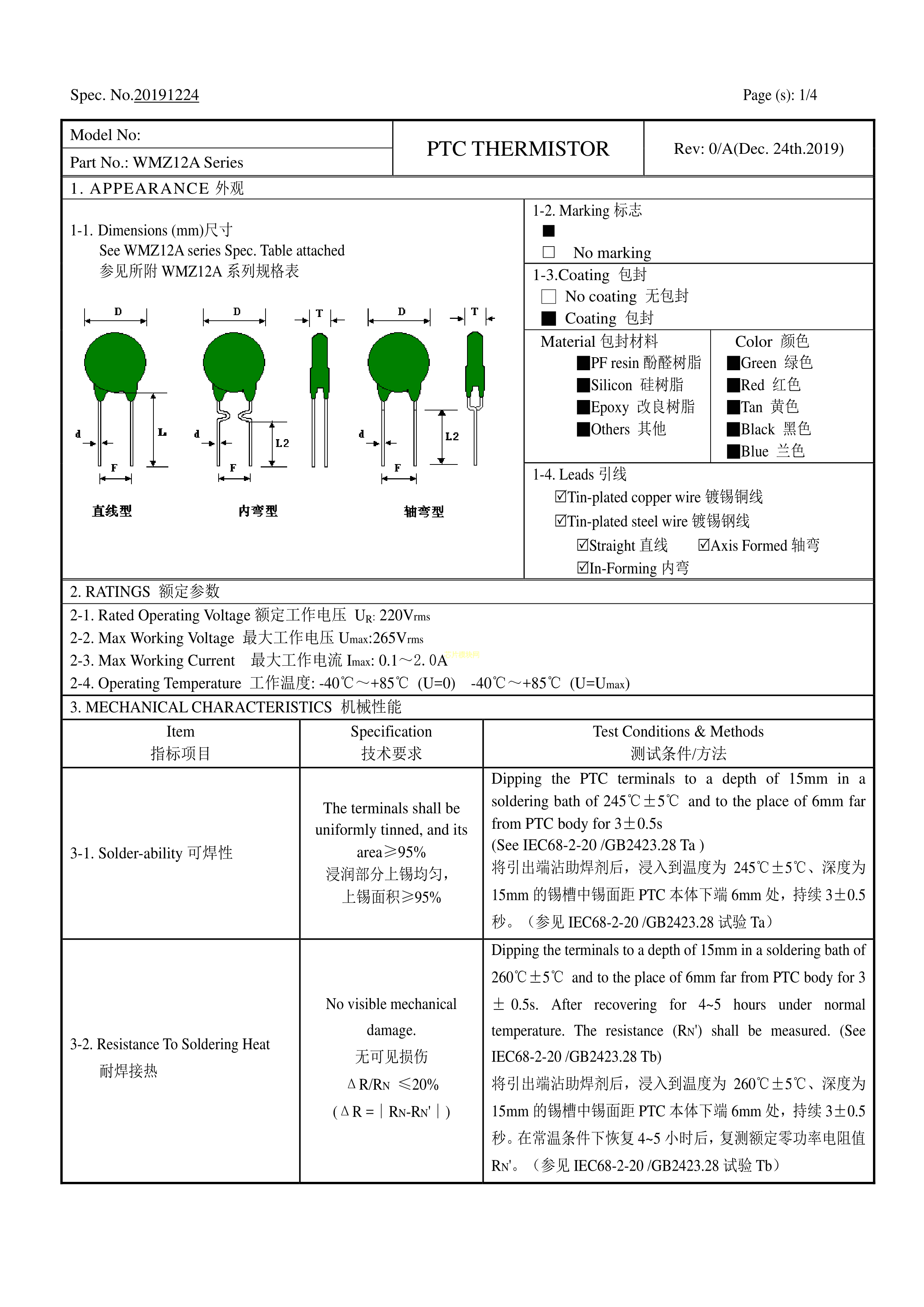 WMZ12A-75HB152MSP003B10-G6B数据手册径向引线P5mm封装Tyohm(幸亚电阻)PDF规格书,中英文下载