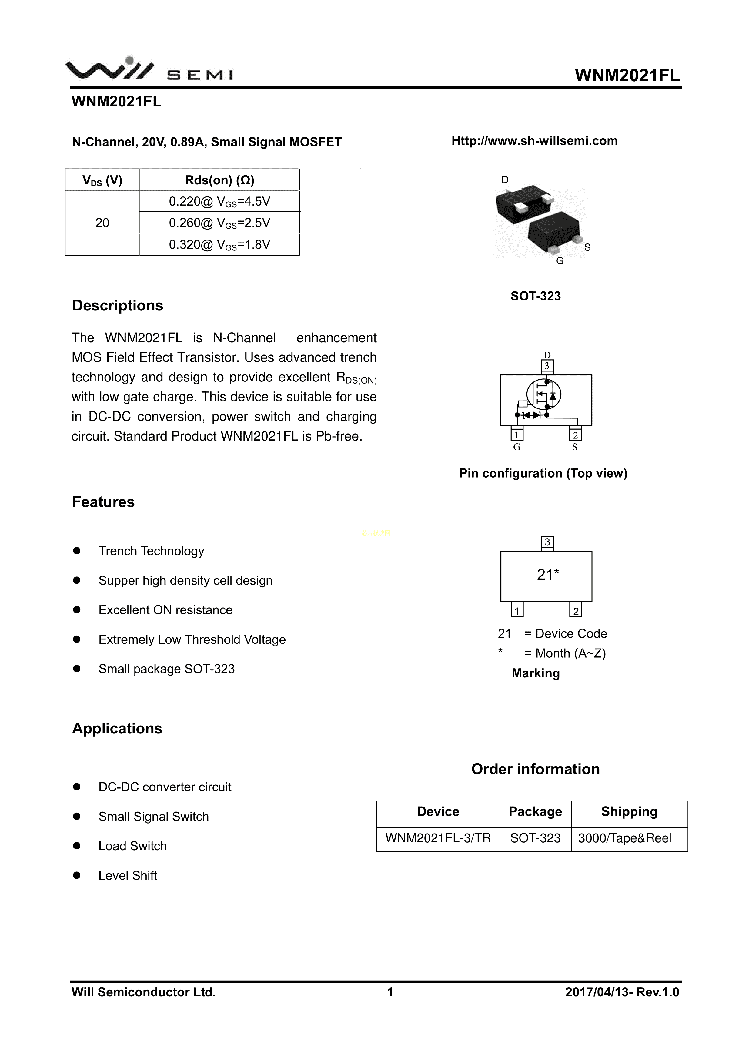 WNM2021FL-3-TR数据手册SOT-323封装WILLSEMI(韦尔)PDF规格书,中英文下载