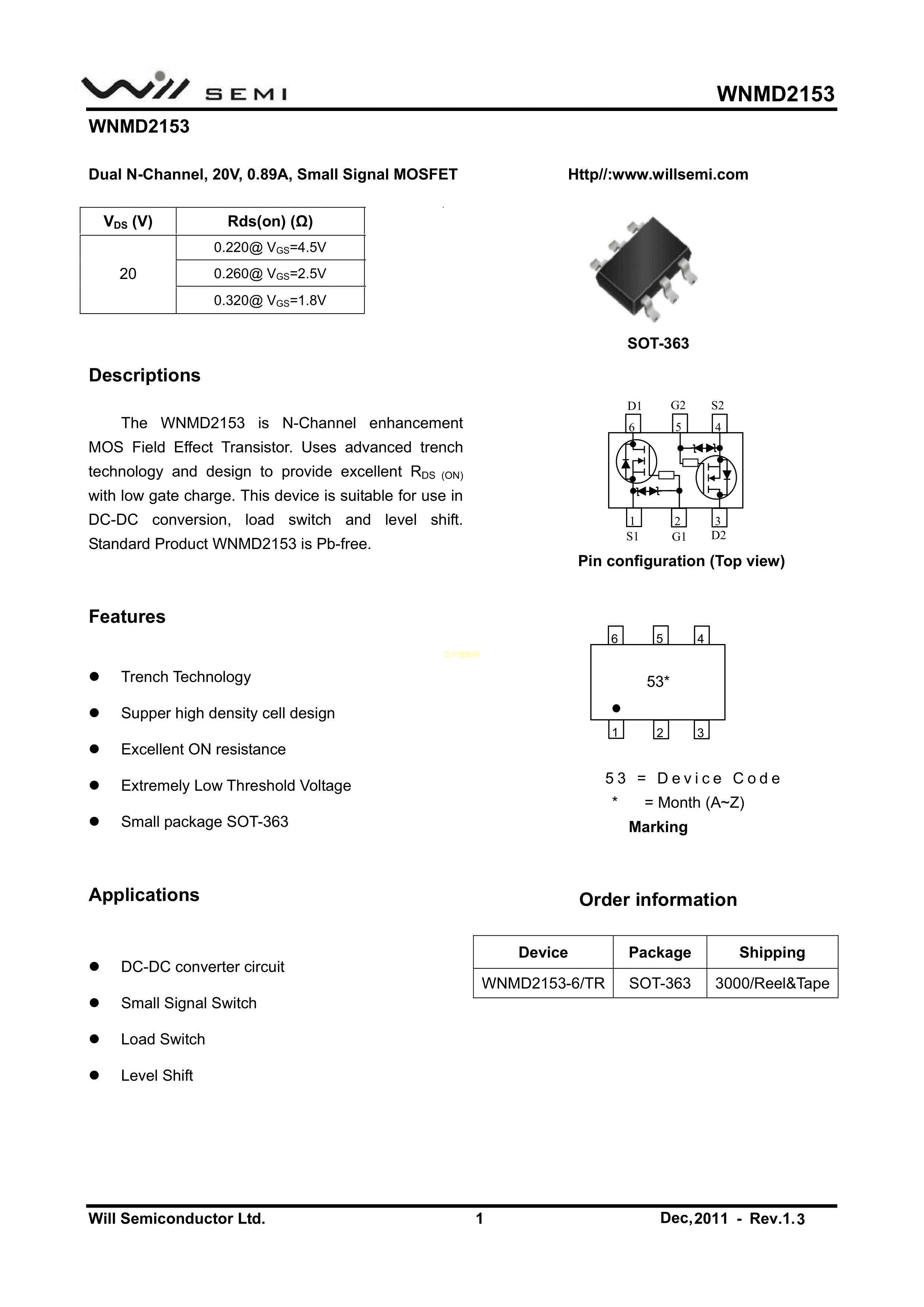 WNMD2153-6-TR数据手册SC-70-6(SOT-363)封装WILLSEMI(韦尔)PDF