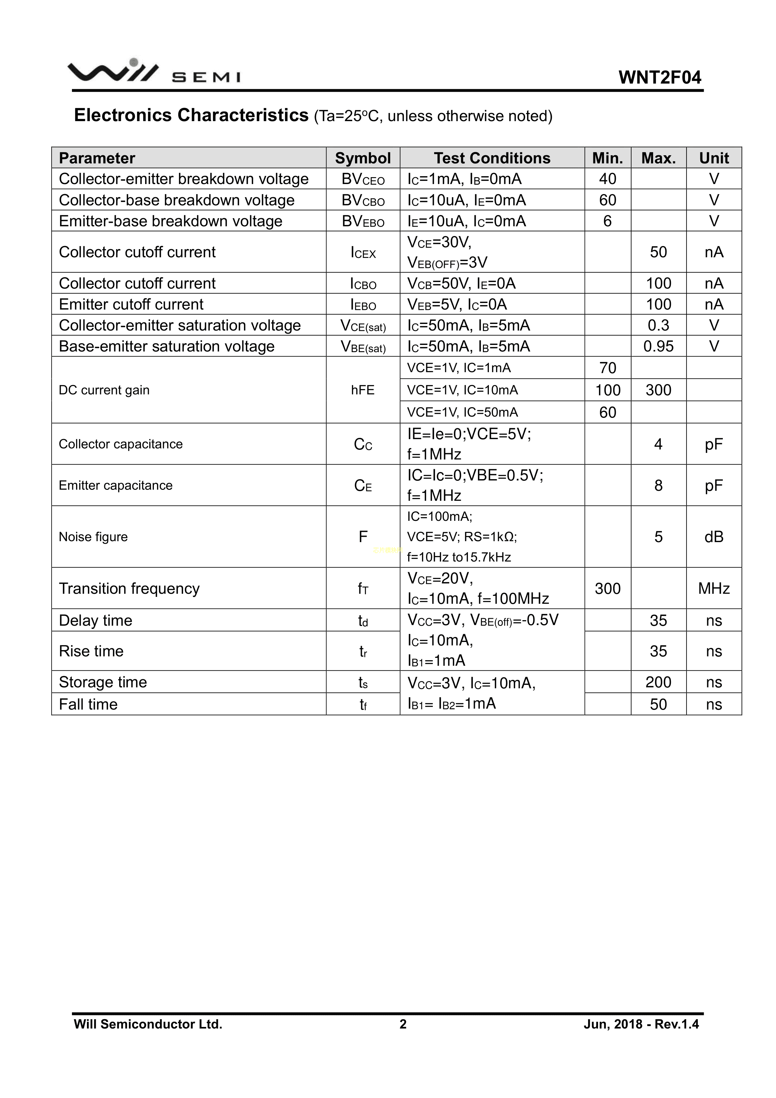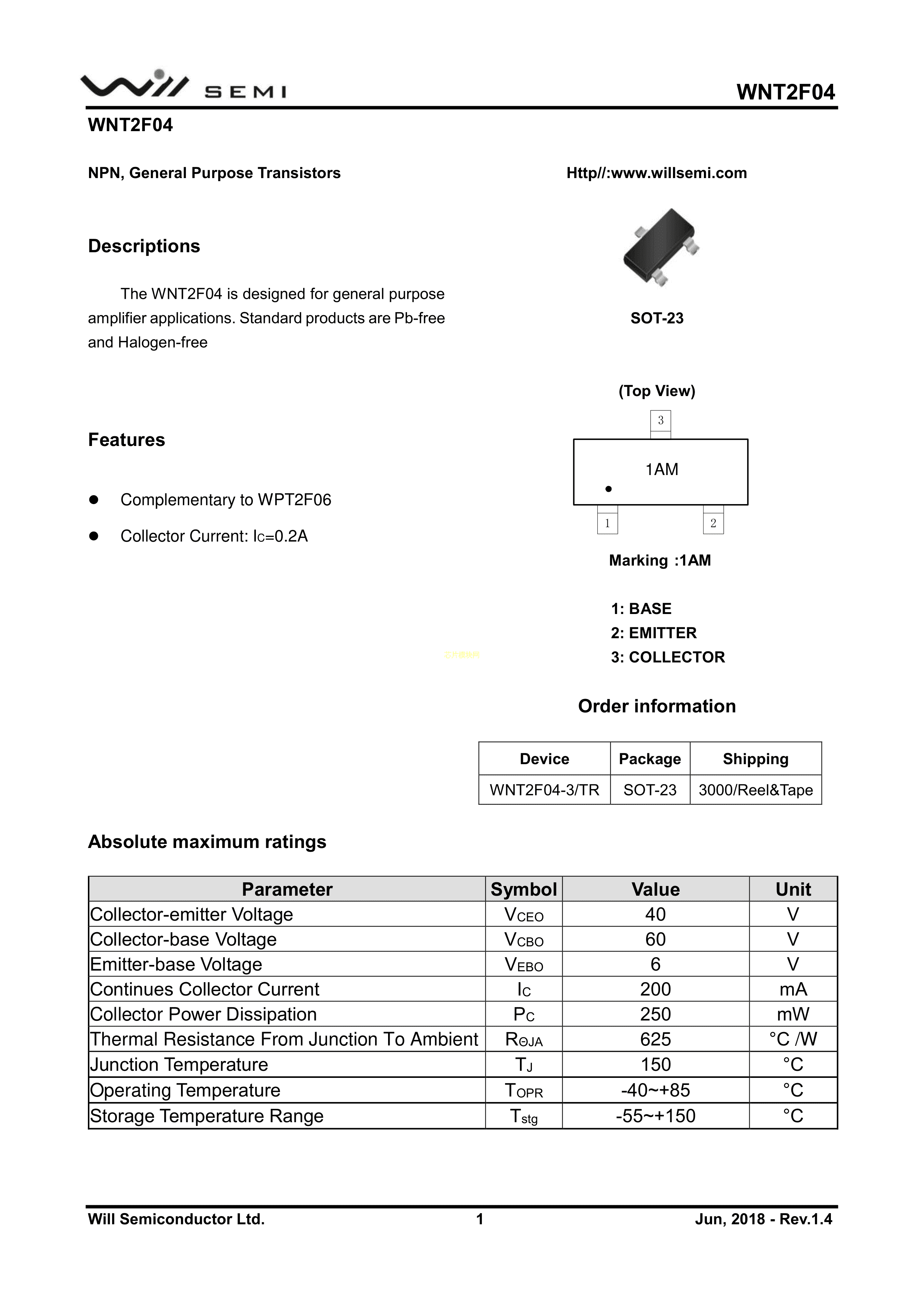 WNT2F04-3-TR数据手册SOT-23封装WILLSEMI(韦尔)PDF规格书,中英文下载