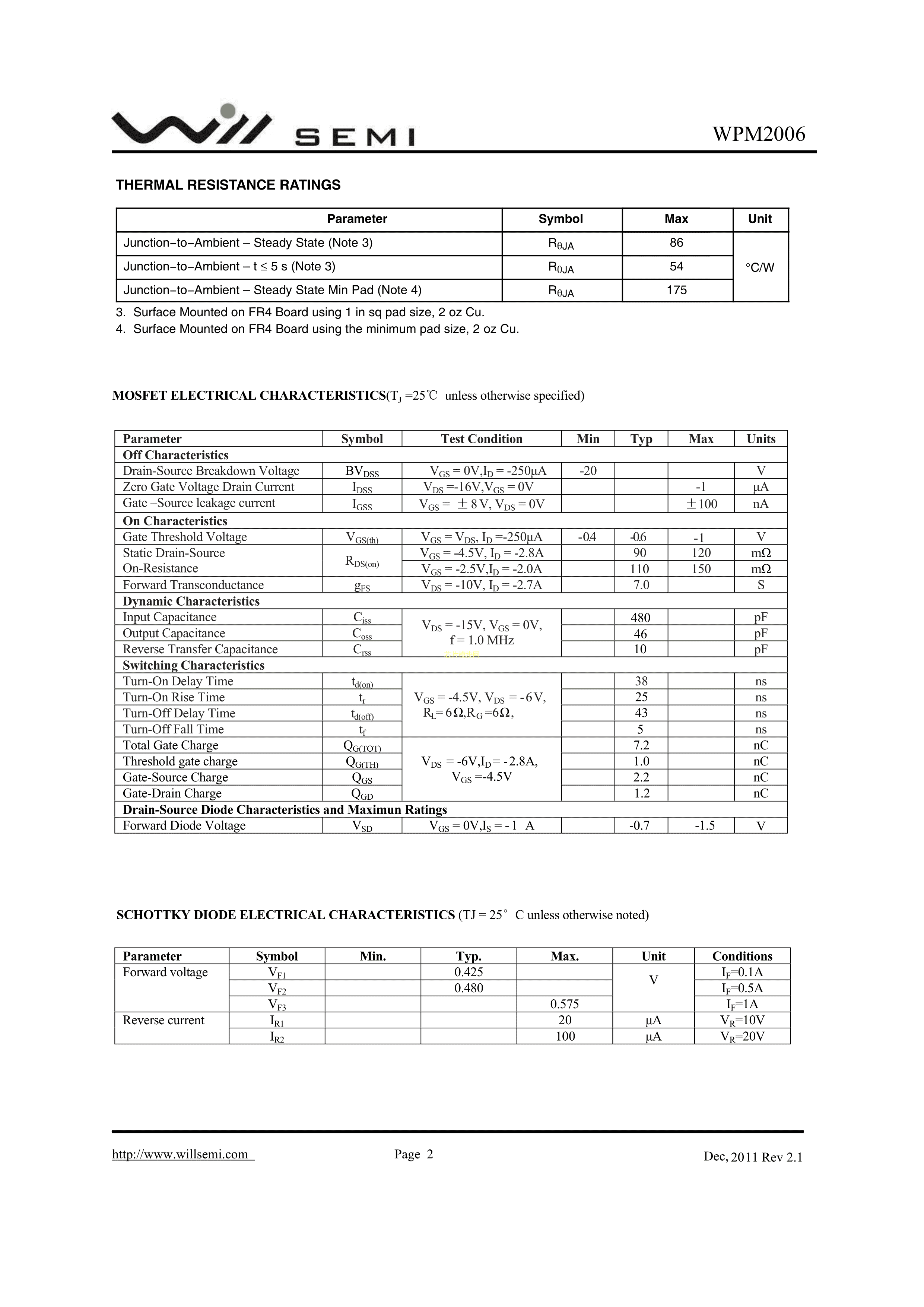 WPM2006-6-TR数据手册DFN 2x2-6L封装WILLSEMI(韦尔)PDF规格书,中英文