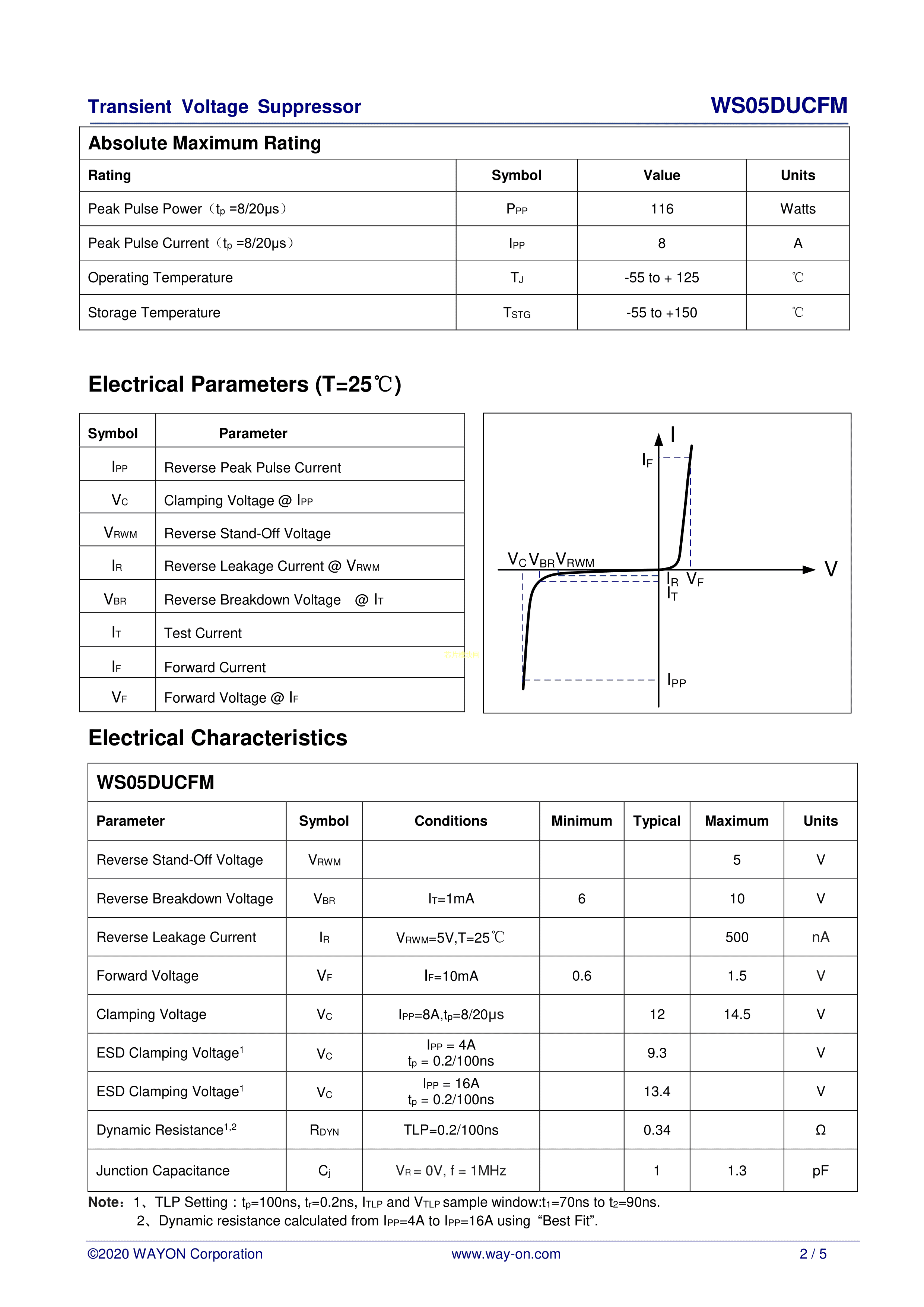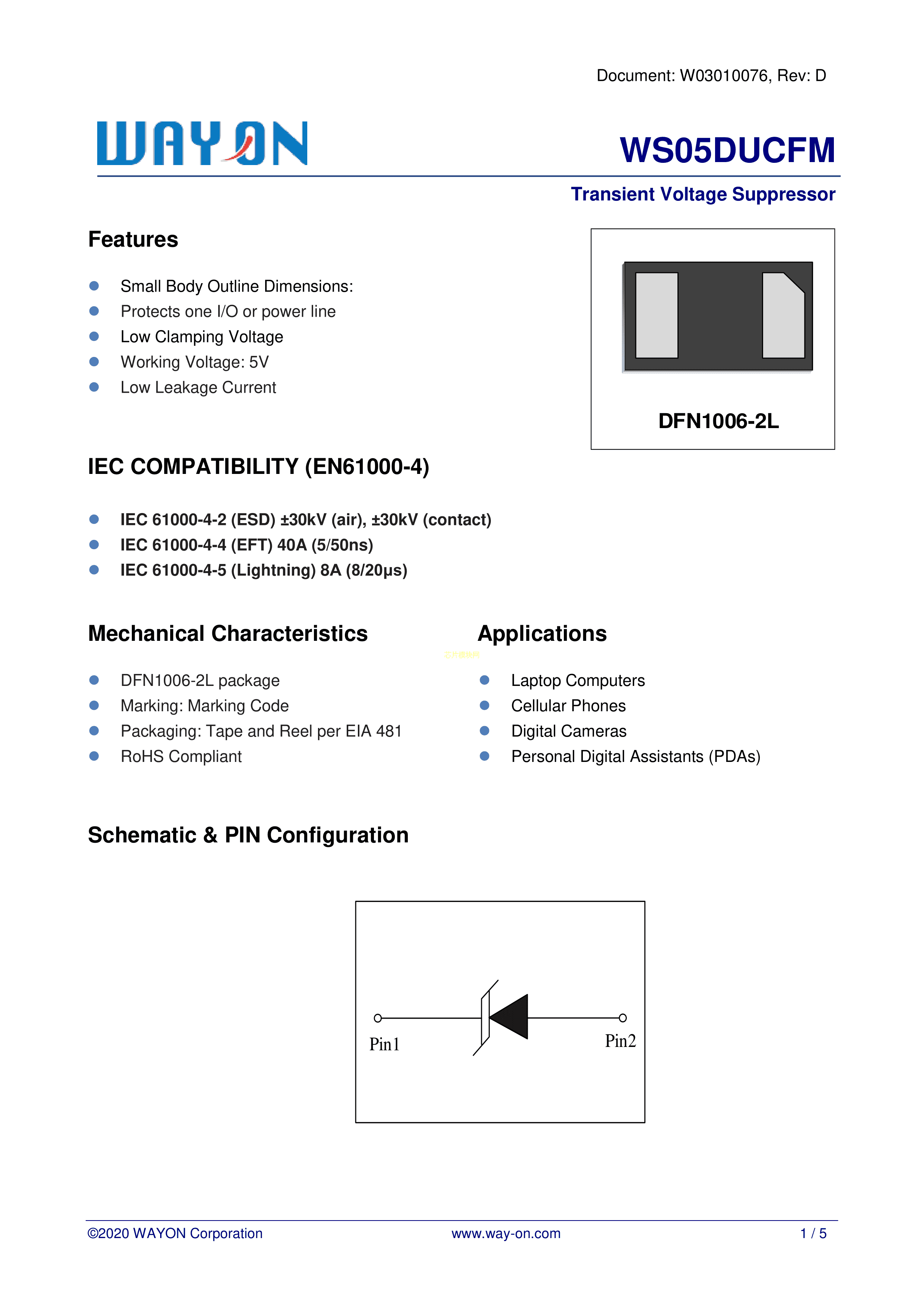 WS05DUCFM数据手册DFN1006-2L封装Wayon(上海维安)PDF规格书,中英文下载
