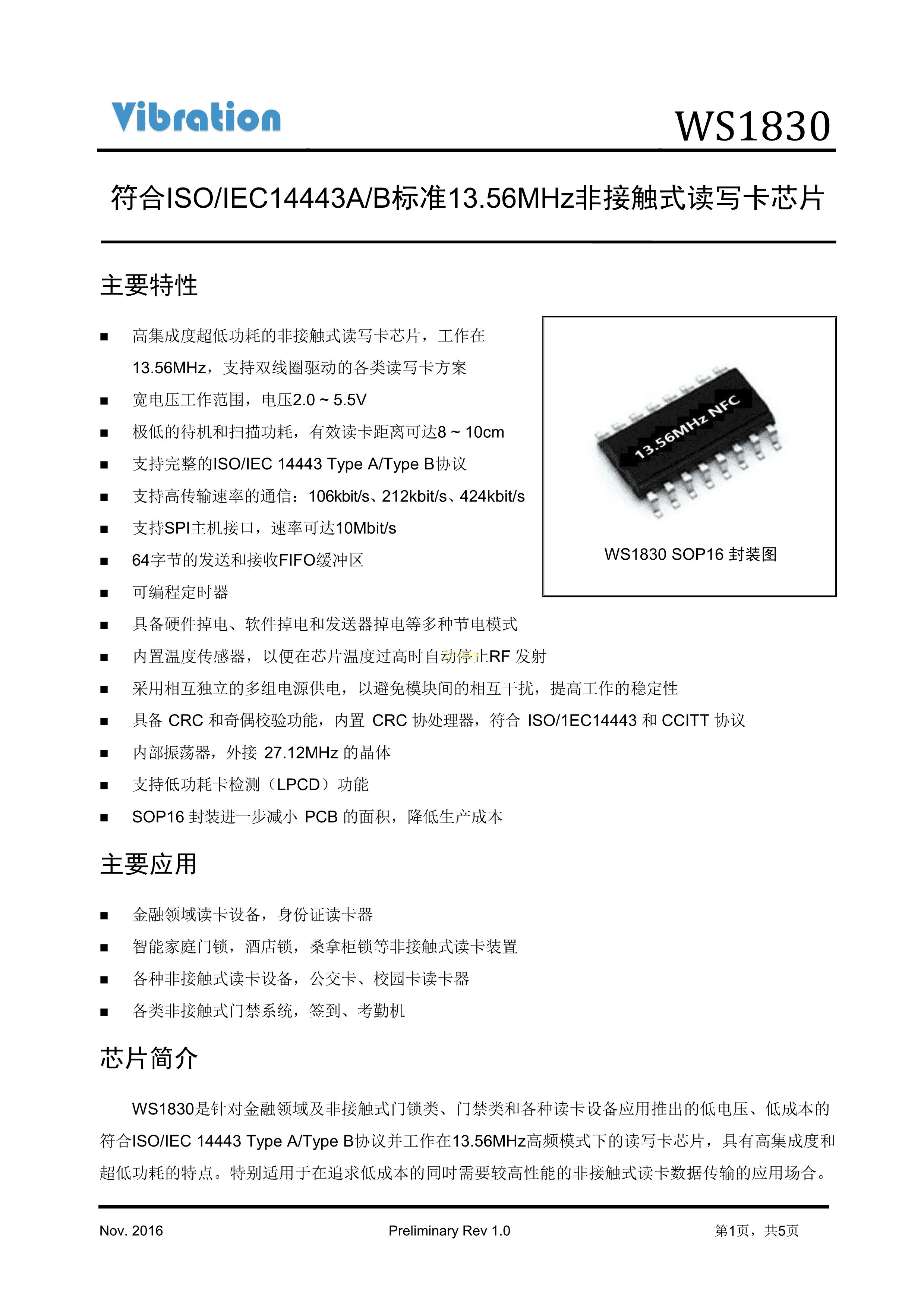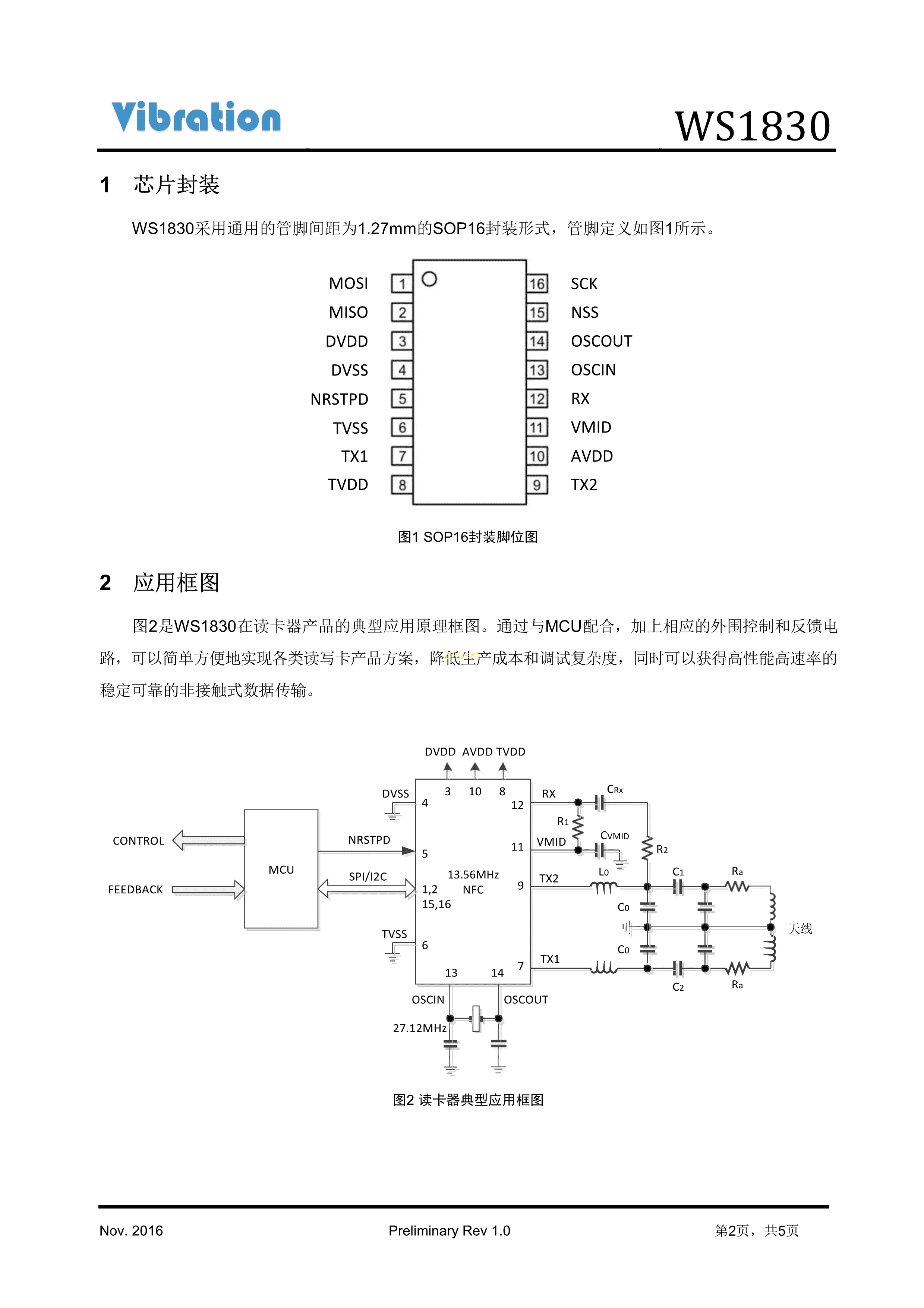 WS1830数据手册SOP-16封装VIBRATION(振浩微)PDF规格书,中英文下载