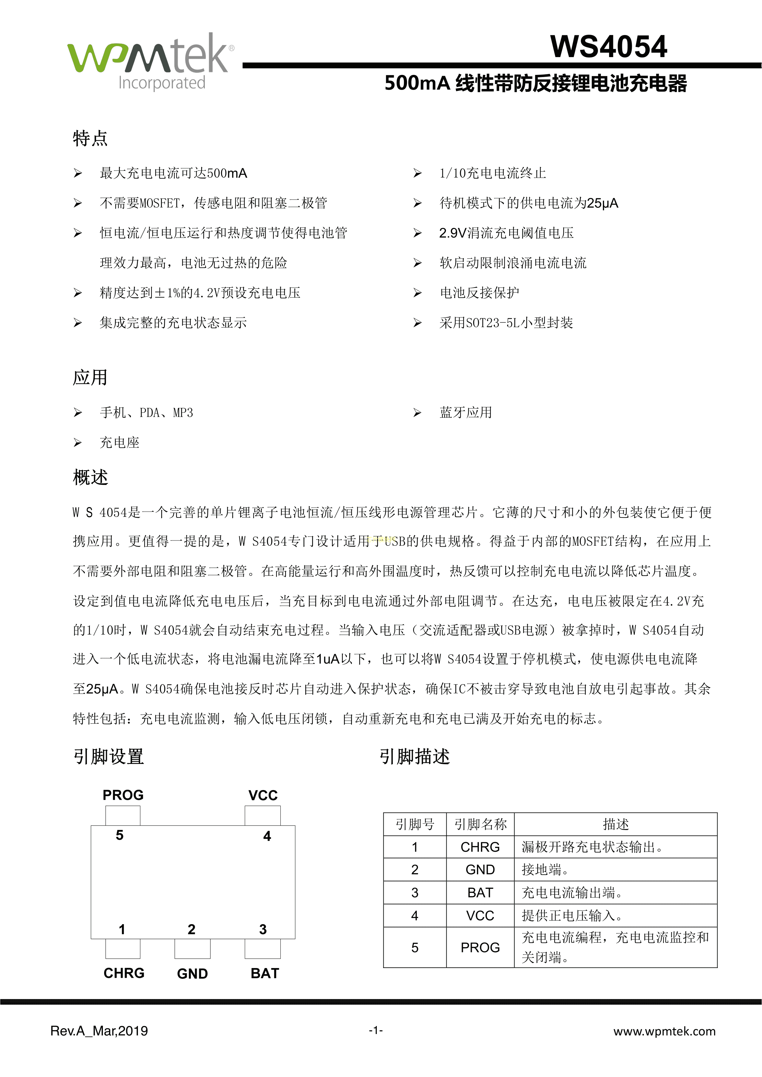 WS4054数据手册SOT-23-5L封装WPMtek(维攀微)PDF规格书,中英文下载