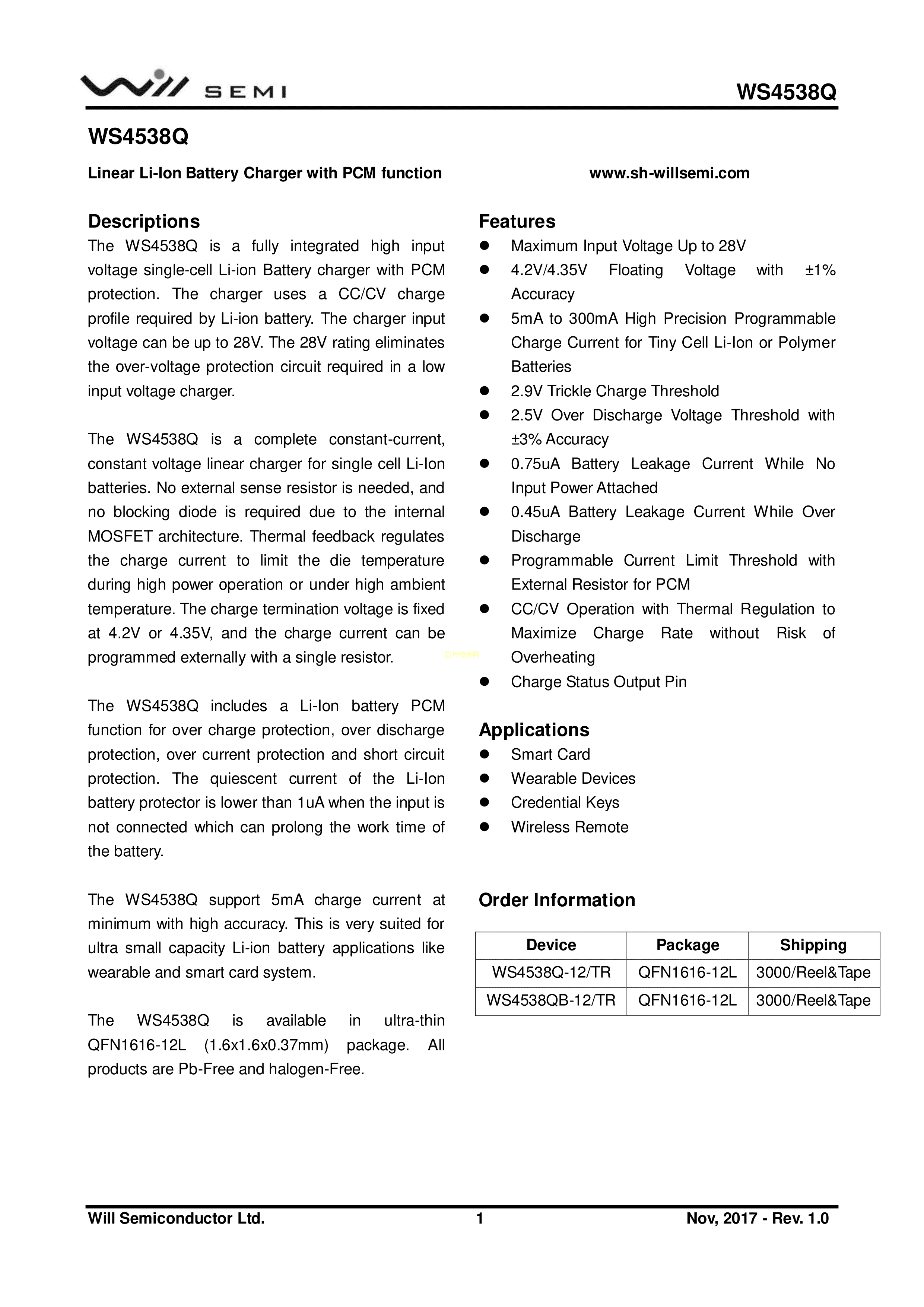 WS4538QB-12-TR数据手册QFN1616-12L封装WILLSEMI(韦尔)PDF规格书,