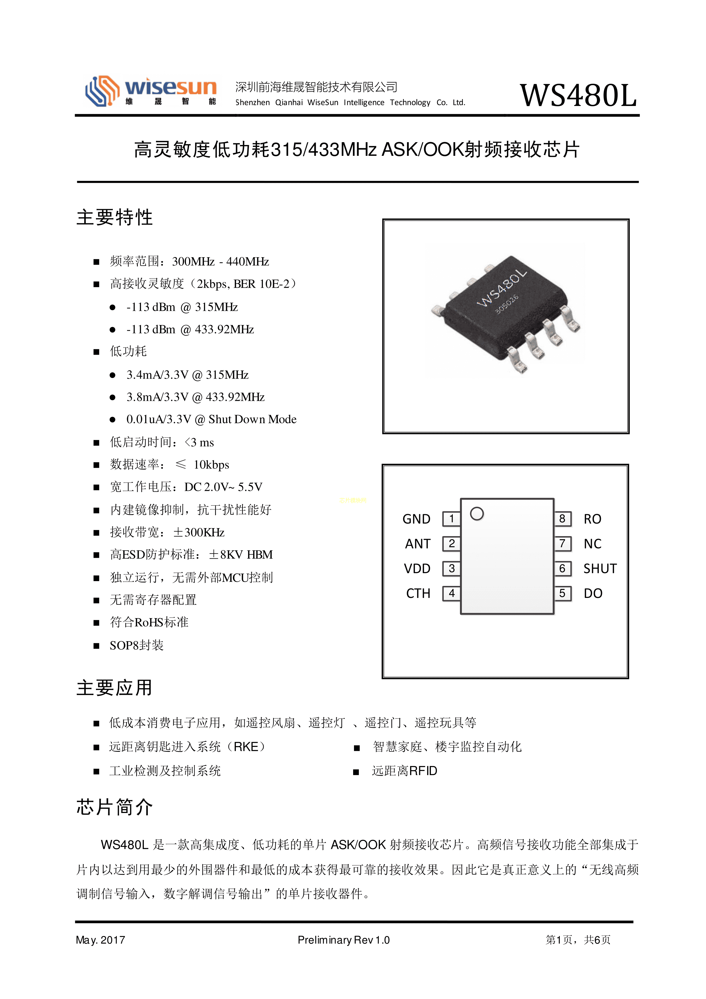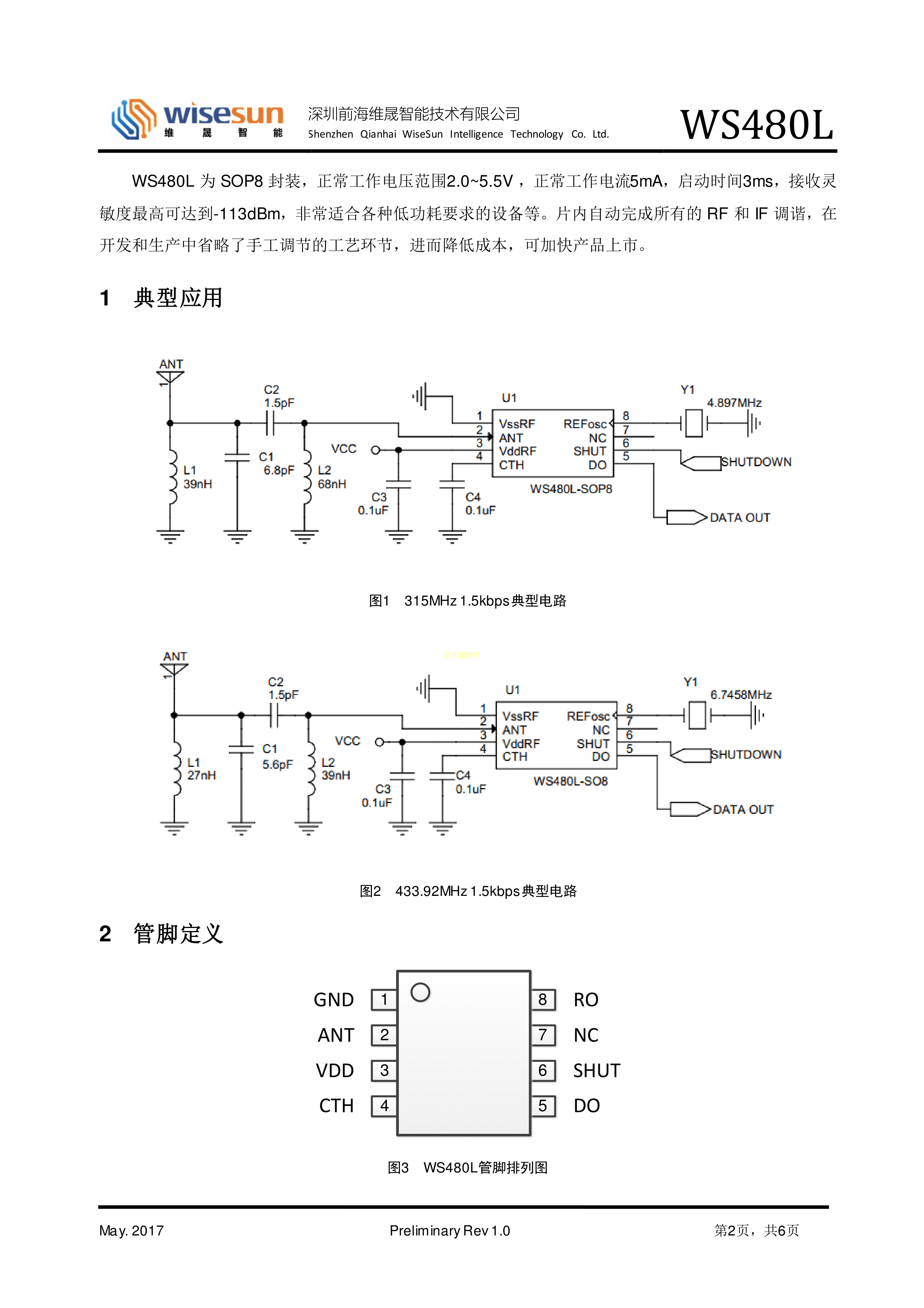 WS480L数据手册SOP-8封装wisesun(维晟)PDF规格书,中英文下载