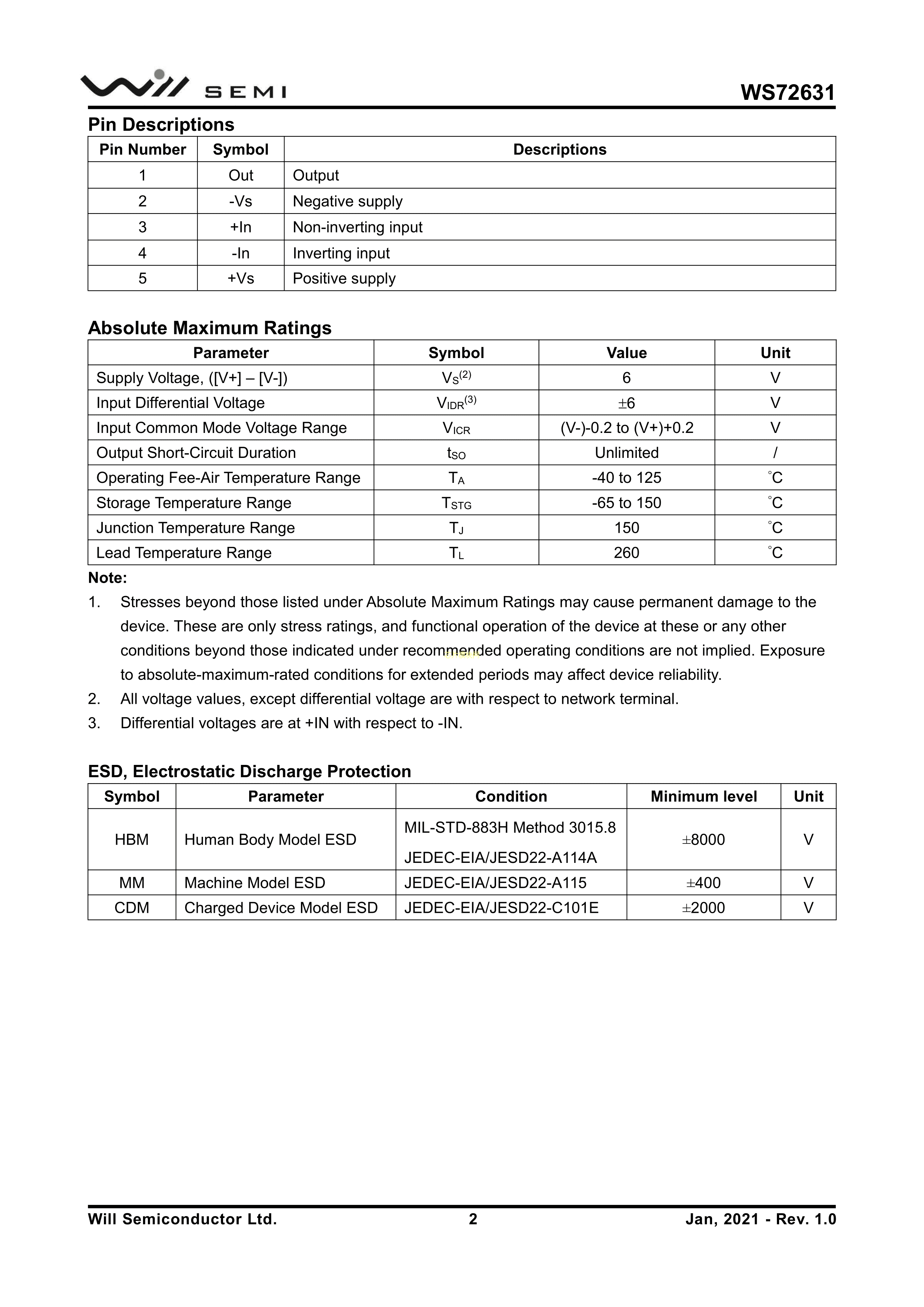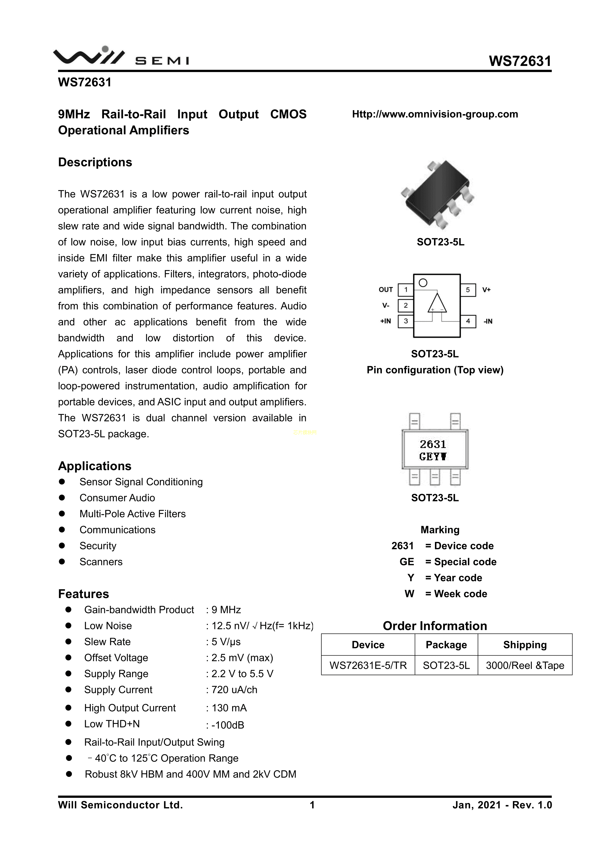 WS72631E-5-TR数据手册SOT-23-5L封装WILLSEMI(韦尔)PDF规格书,中英文