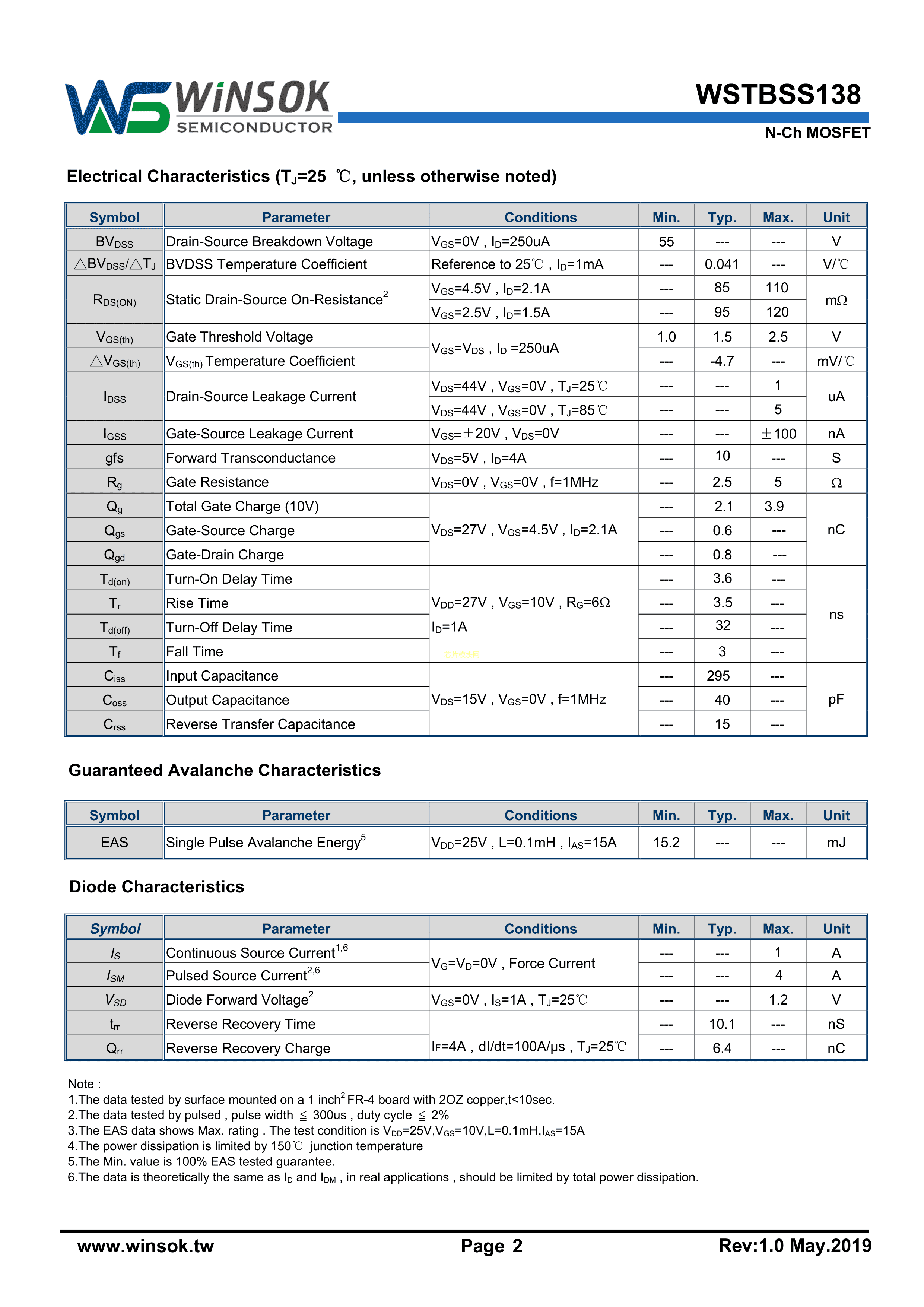 WSTBSS138数据手册SOT-23N封装WINSOK(微硕)PDF规格书,中英文下载