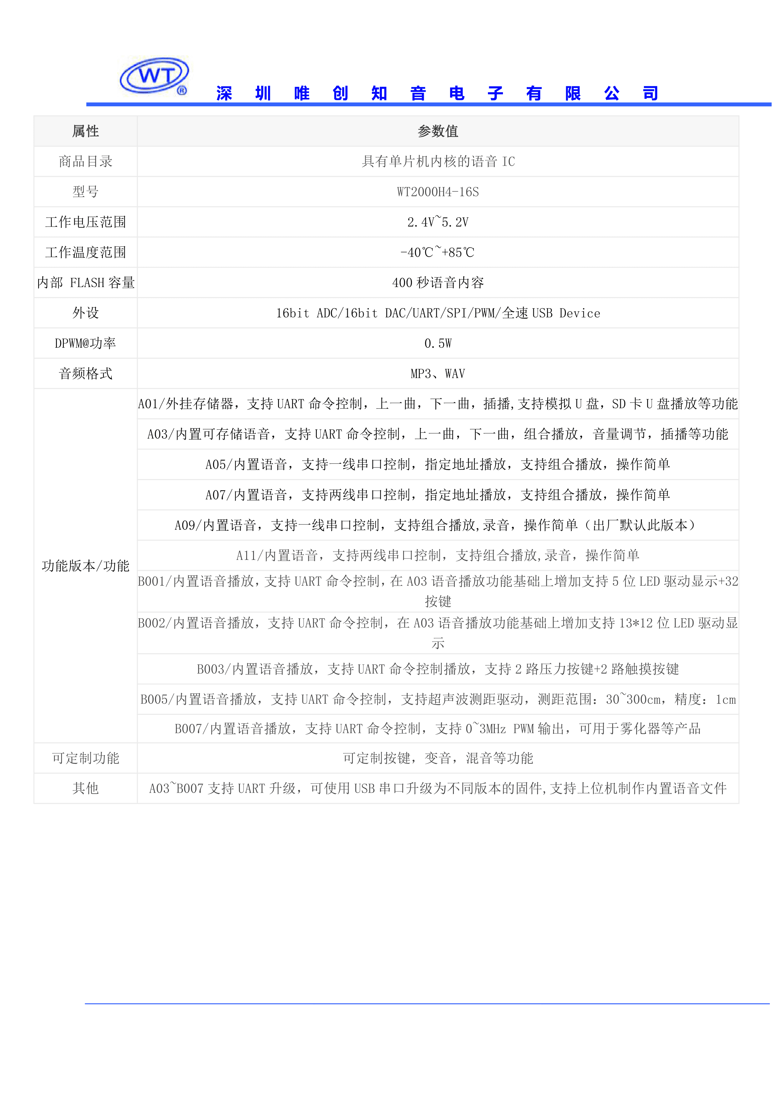 WT2000H4-16S数据手册SOP-16封装WT(唯创知音)PDF规格书,中英文下载