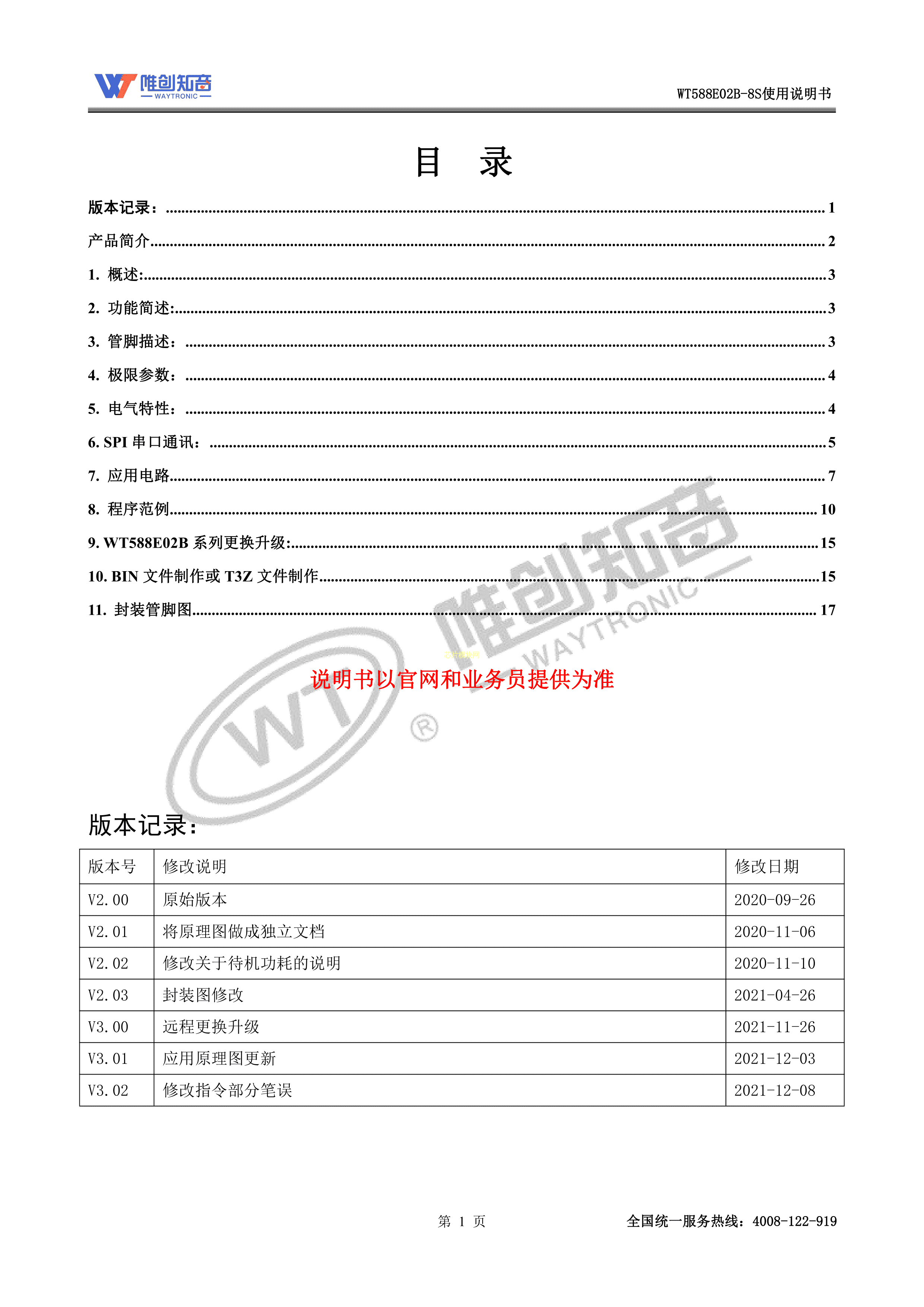 WT588E02B-8S数据手册SOP-8封装WT(唯创知音)PDF规格书,中英文下载