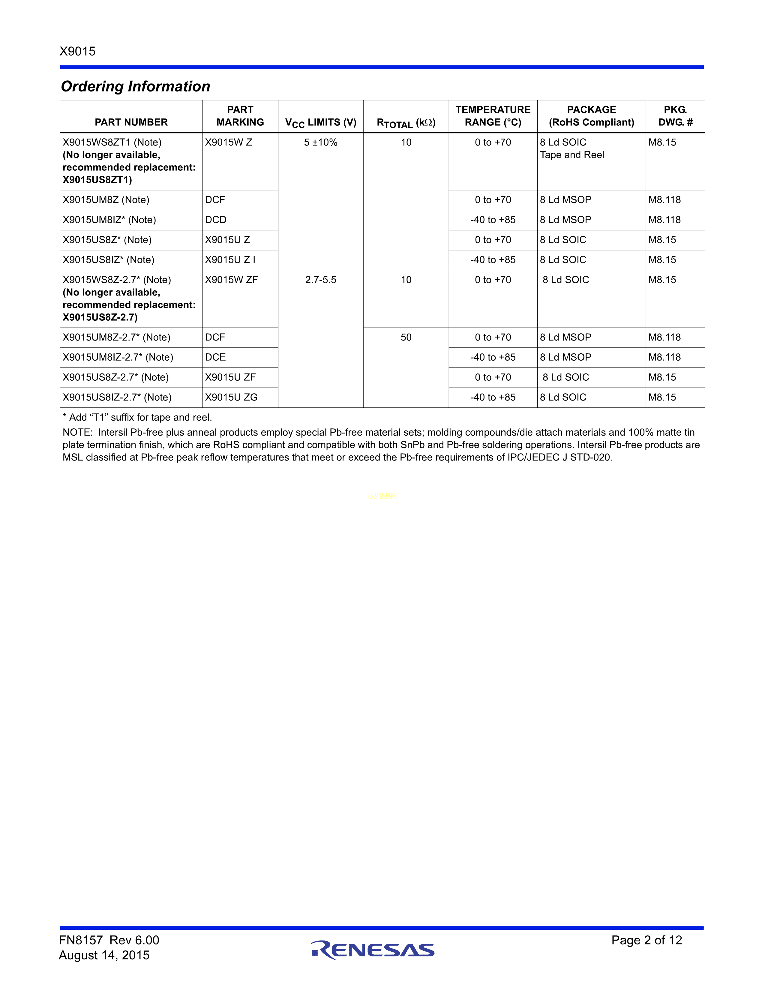 X9015UM8IZ数据手册MSOP-8封装RENESAS(瑞萨)-IDTPDF规格书,中英文下载