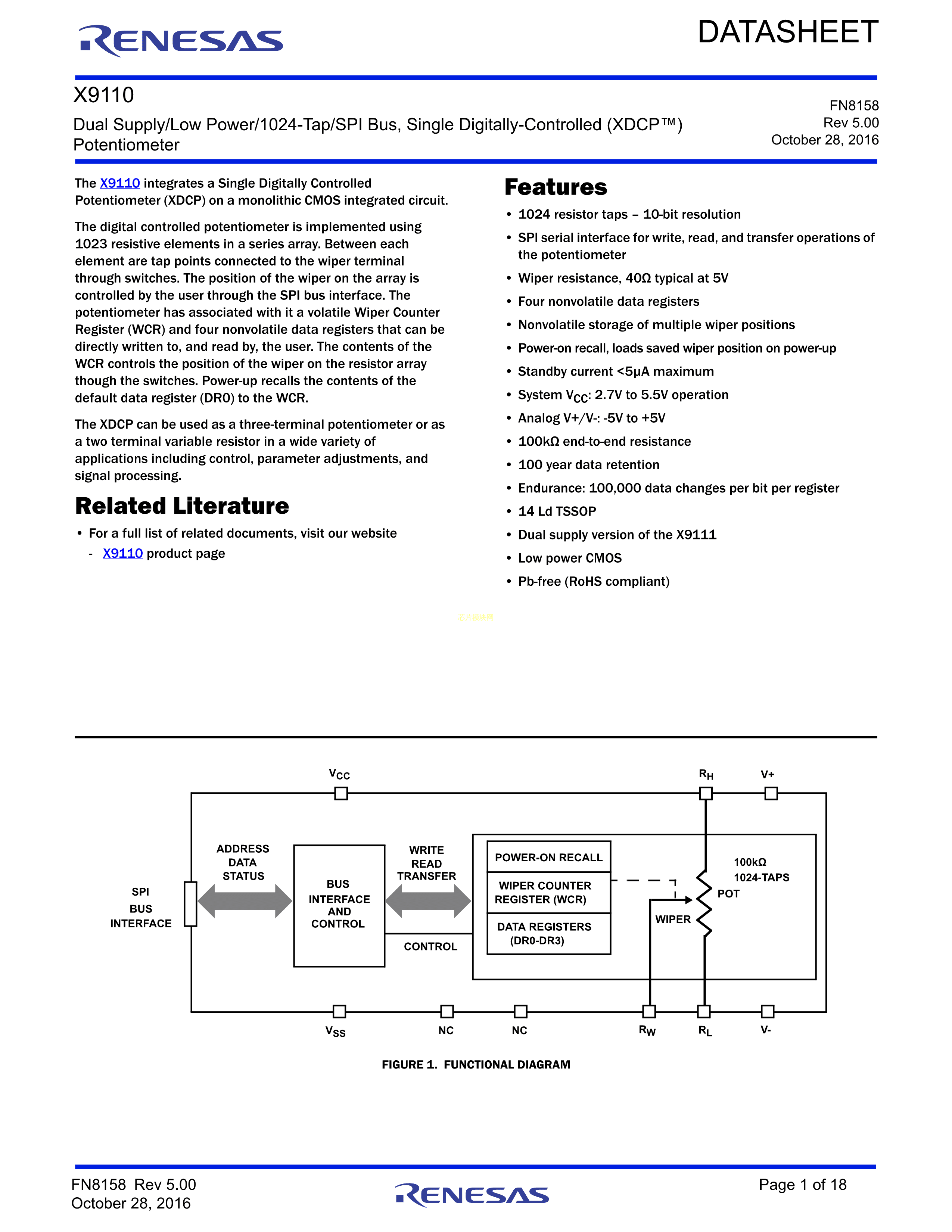 X9110TV14IZ-2.7数据手册TSSOP-14封装RENESAS(瑞萨)-IDTPDF规格书