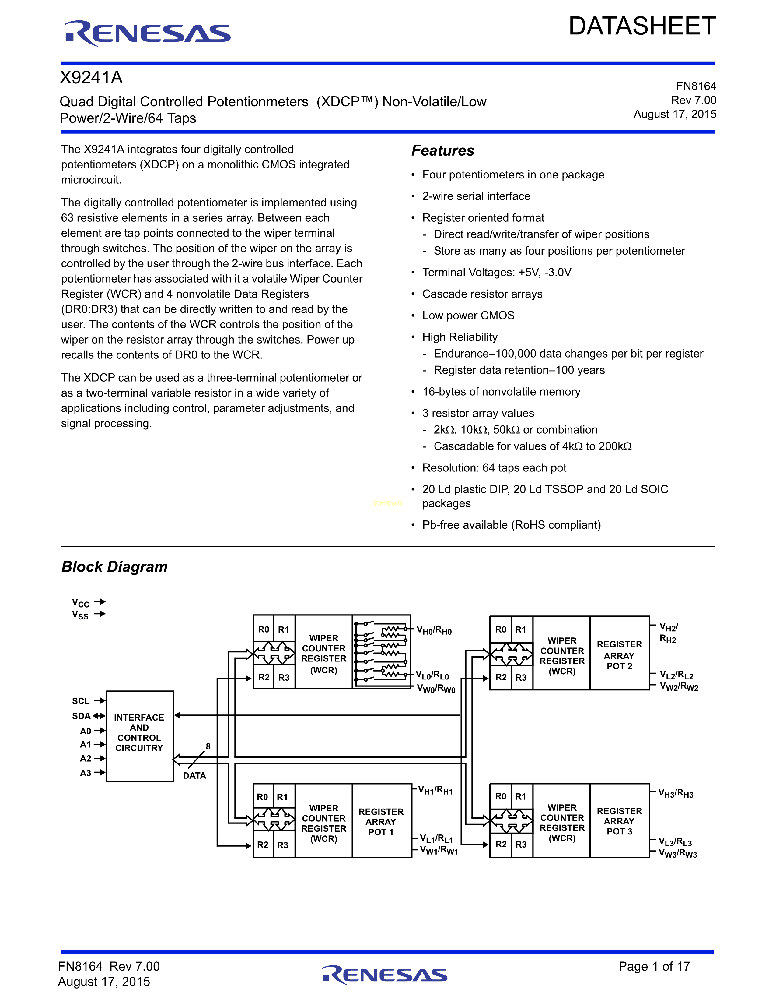X9241AMSIZ数据手册SOIC-20封装RENESAS(瑞萨)-IDTPDF规格书,中英文下载